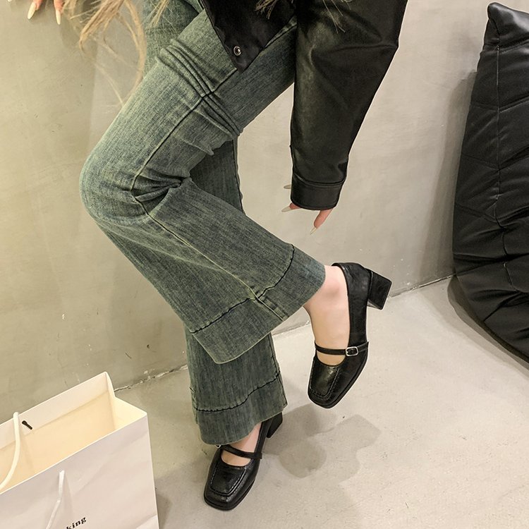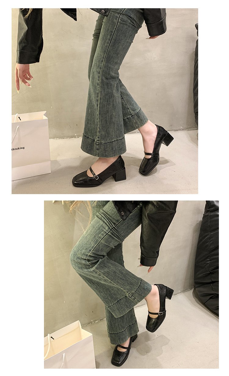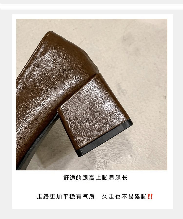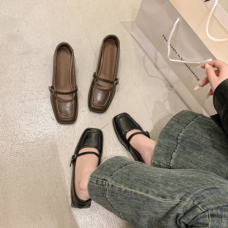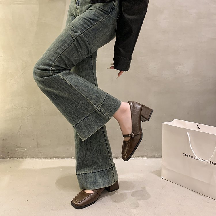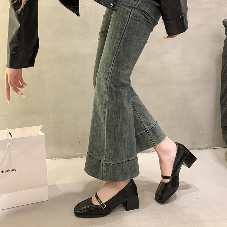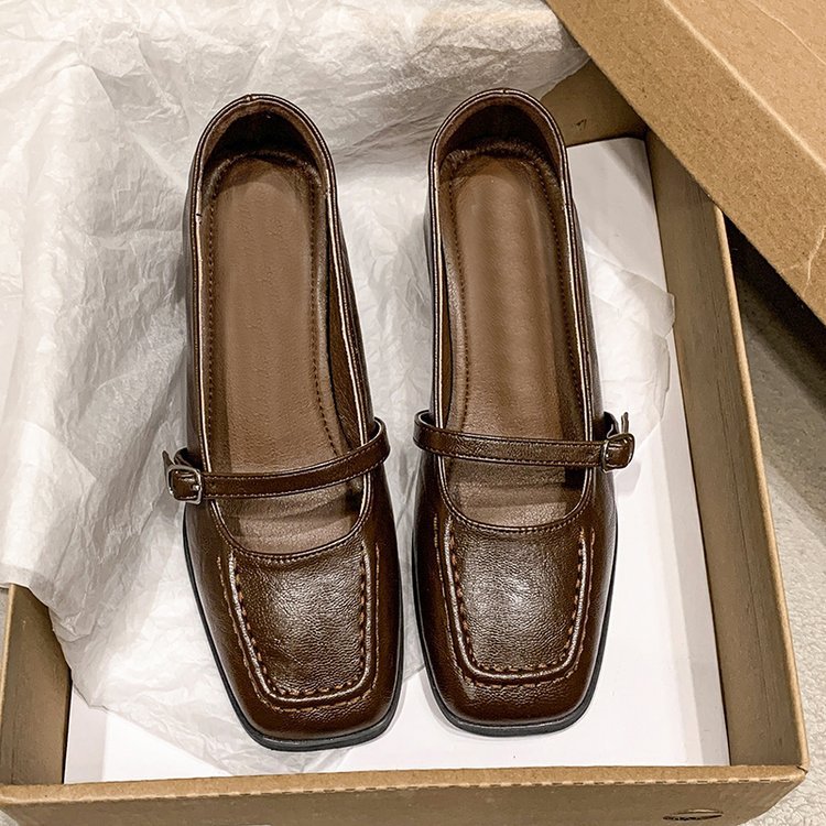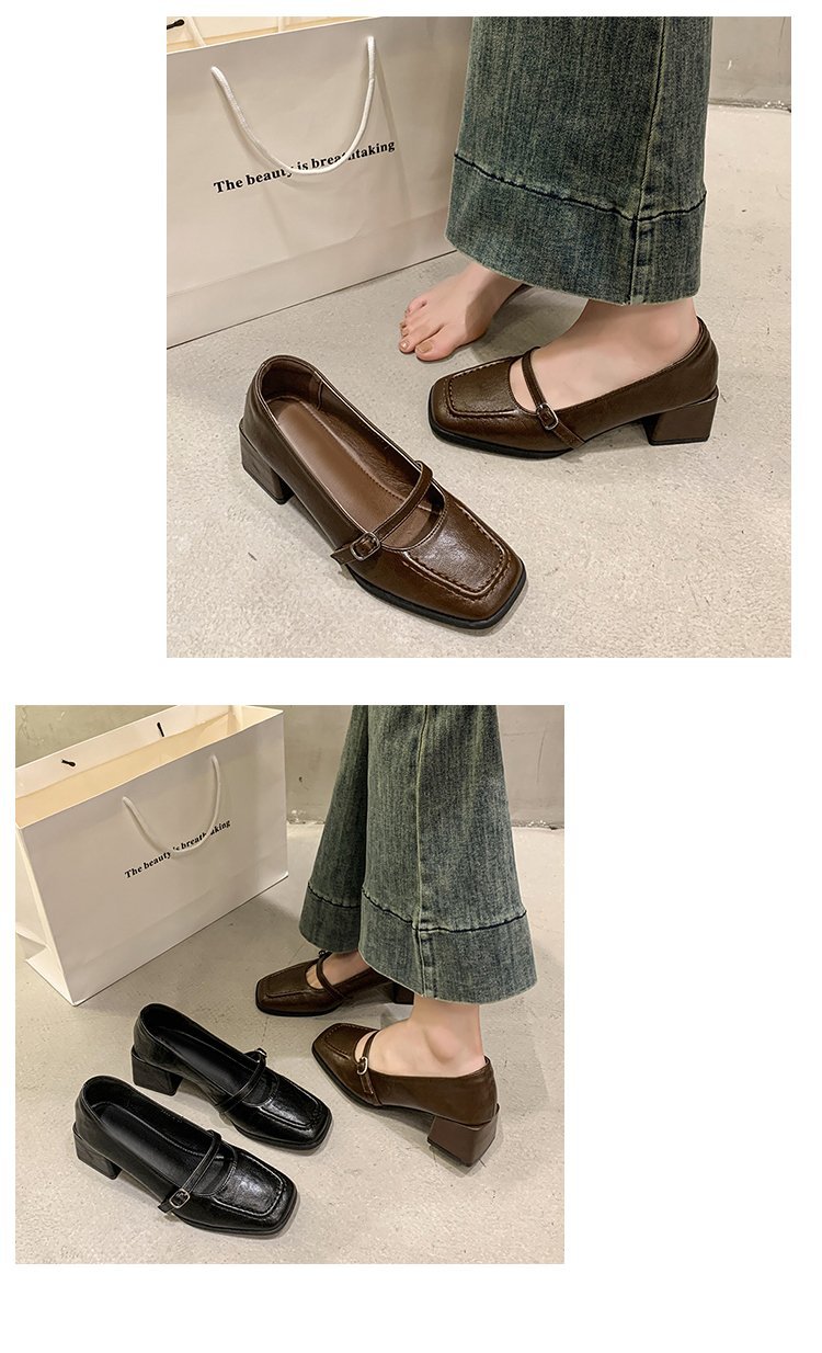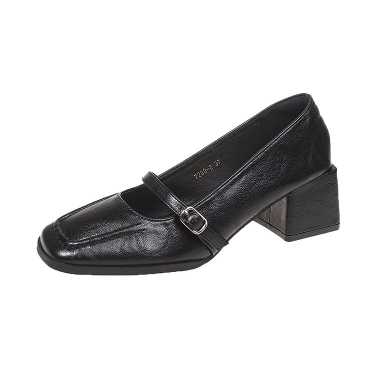 레트로 스퀘어 토 하이힐, 여성용 펌프스 슈즈, 봄 가을 신상 프렌치 스타일 이브닝 스타일 두꺼운 굽 메리제인 작은 가죽 신발스토어 가기
