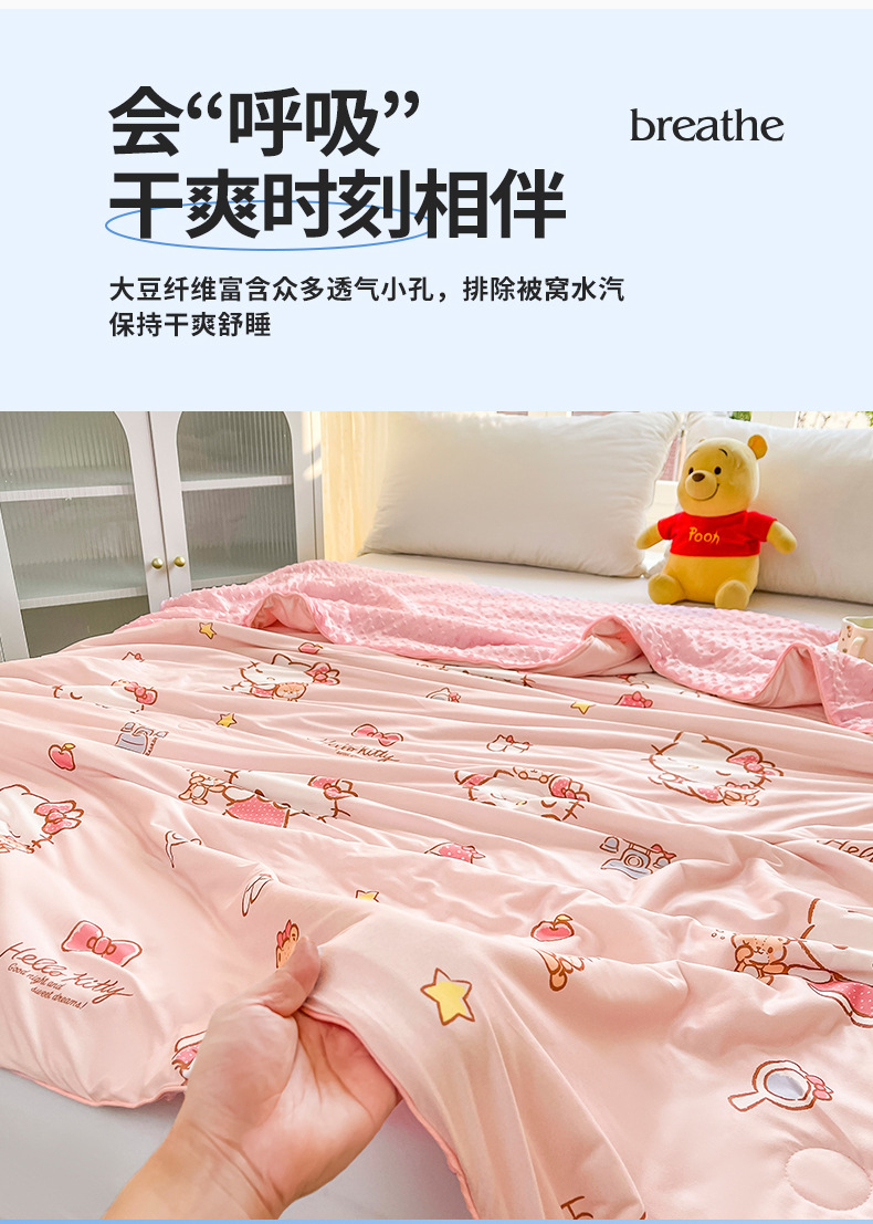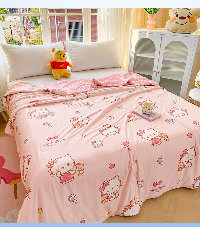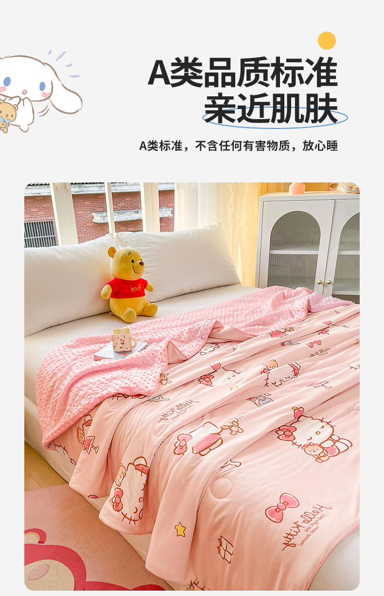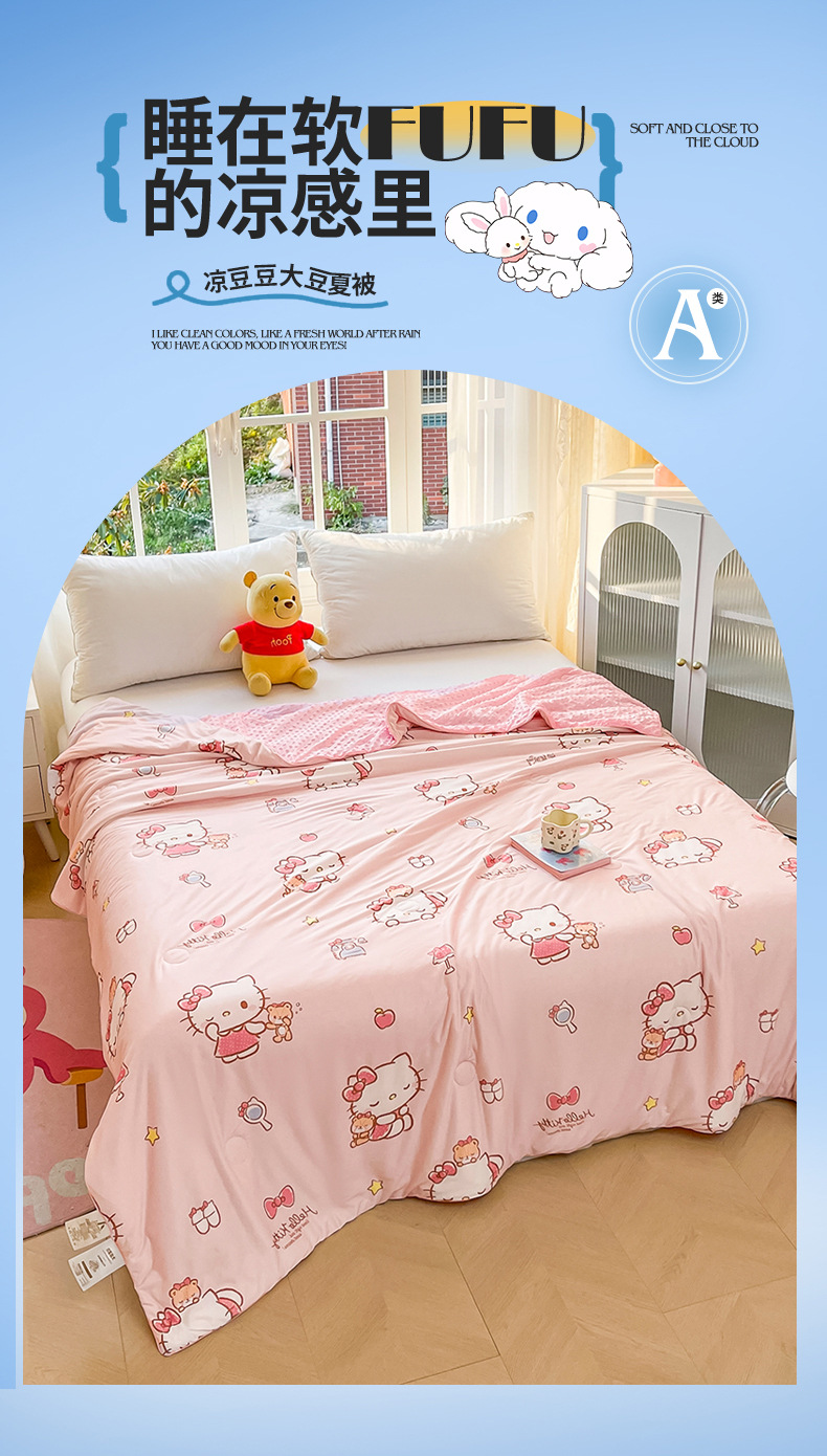 산리오 귀여운 인쇄 버전 니트 코튼 B 버전 시원한 콩 여름 이불 어린이 기계 세탁 가능한 에어컨 얇은 이불 도매스토어 가기