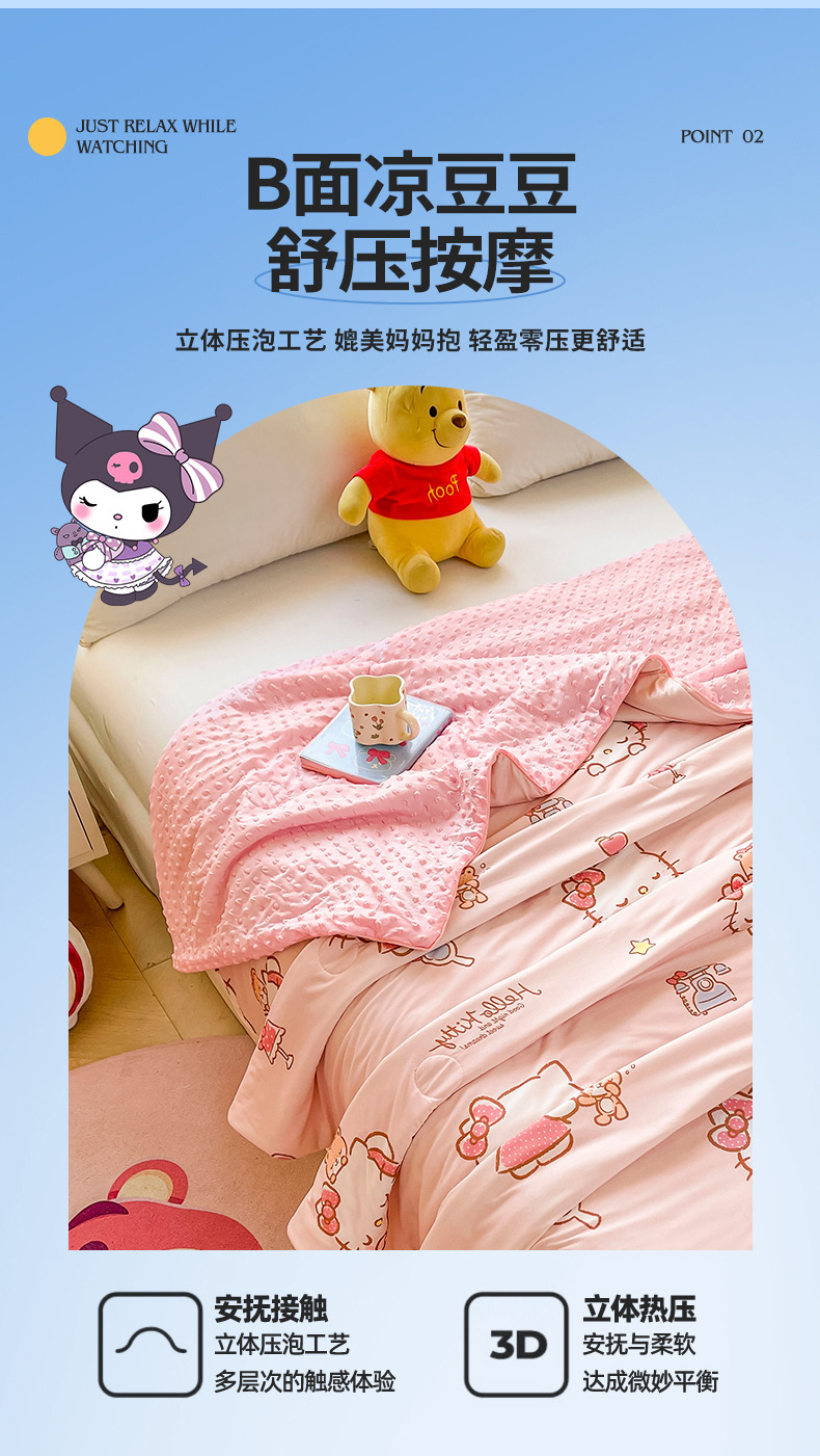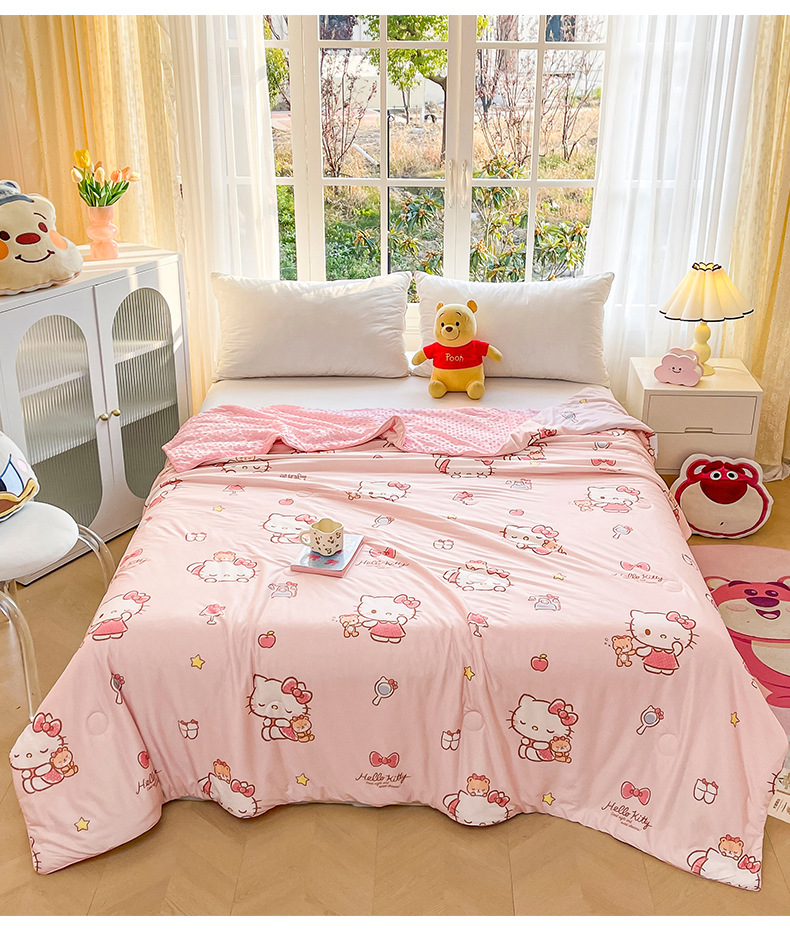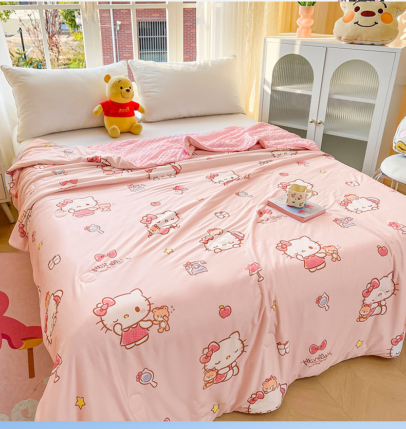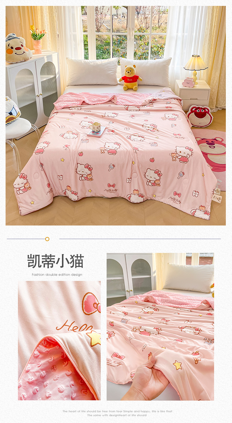 산리오 귀여운 인쇄 버전 니트 코튼 B 버전 시원한 콩 여름 이불 어린이 기계 세탁 가능한 에어컨 얇은 이불 도매