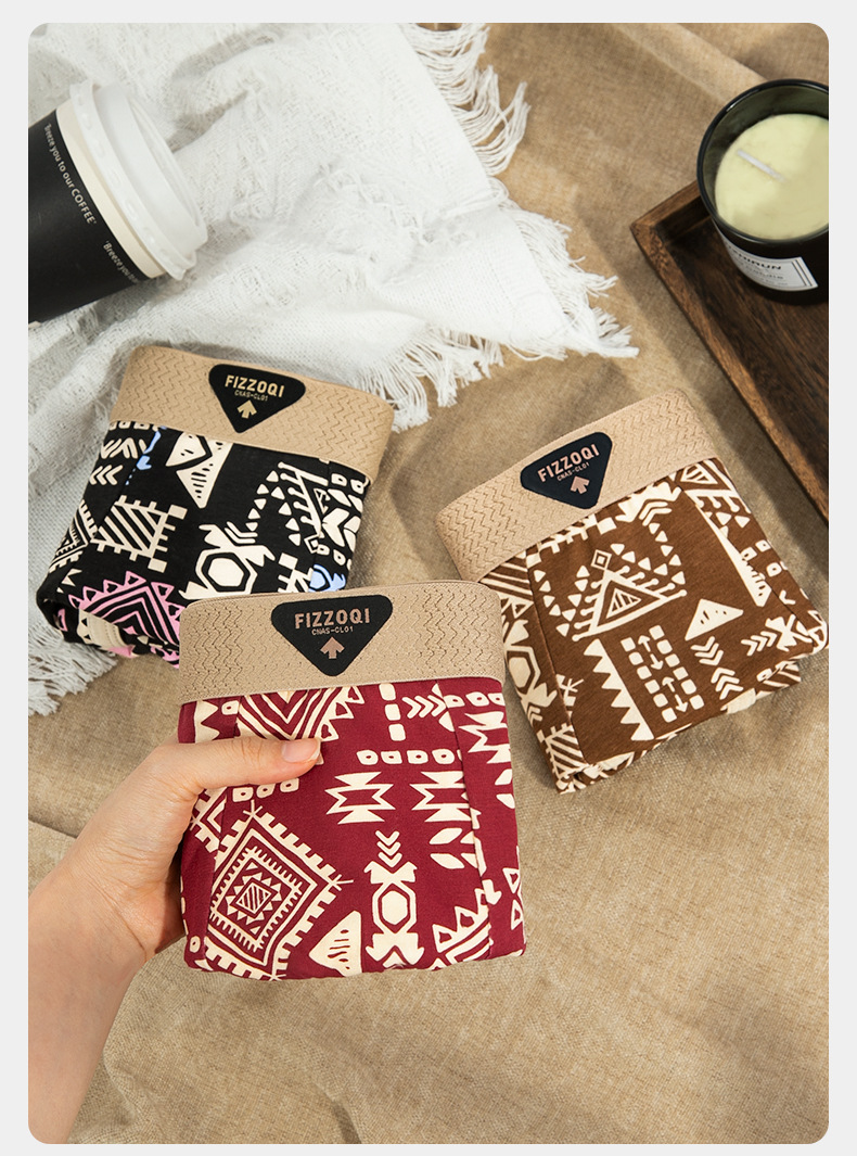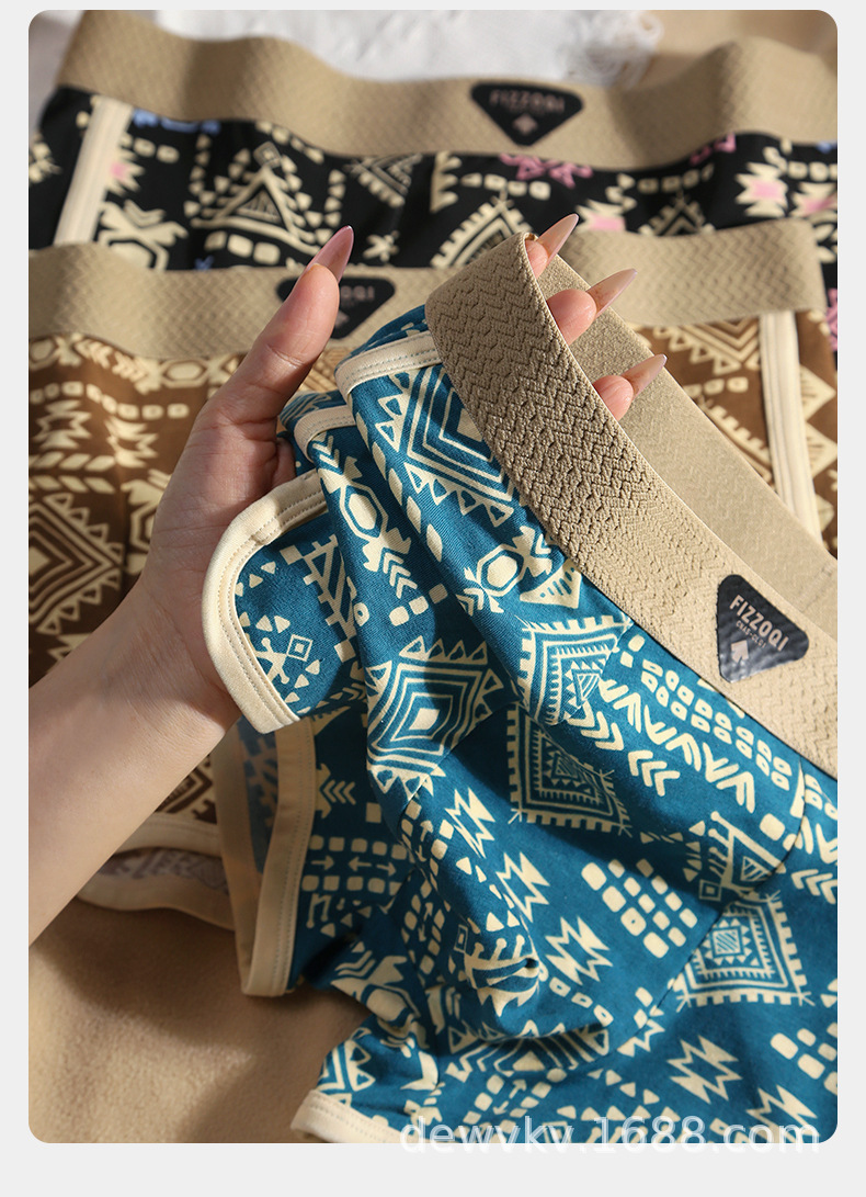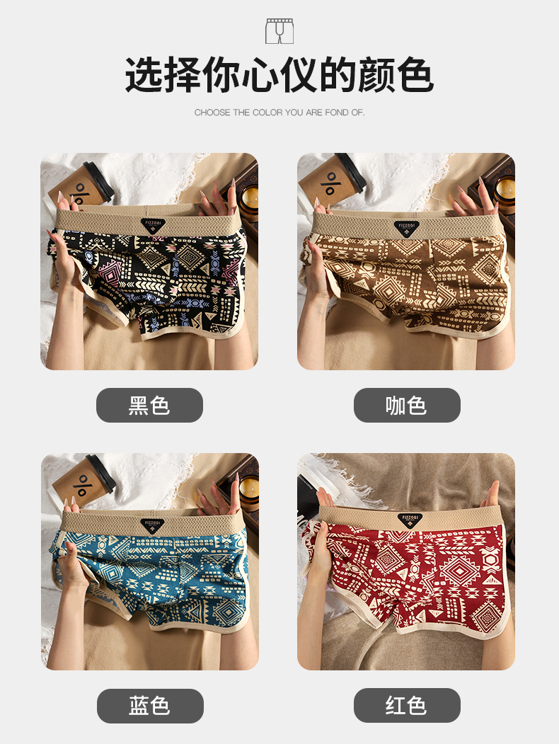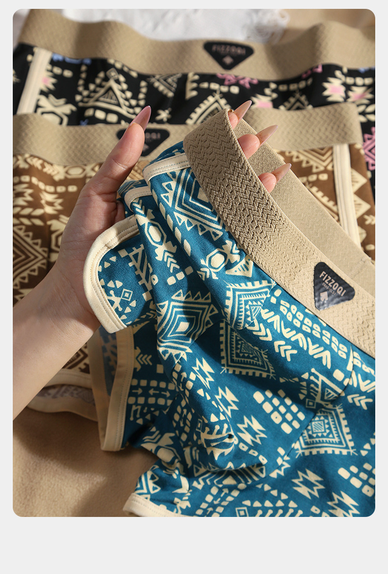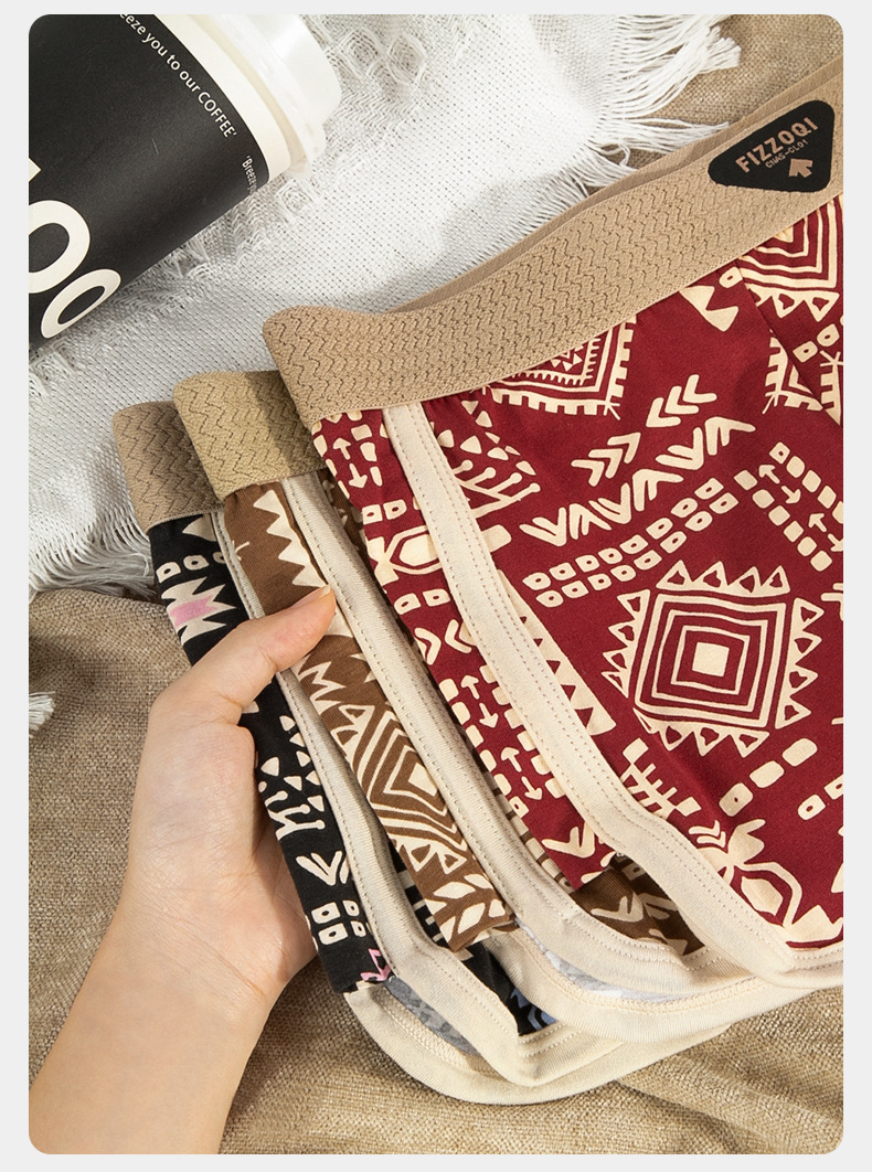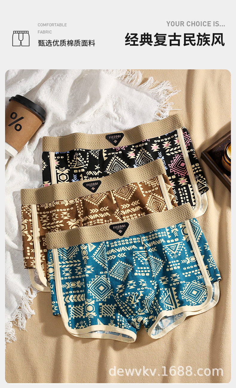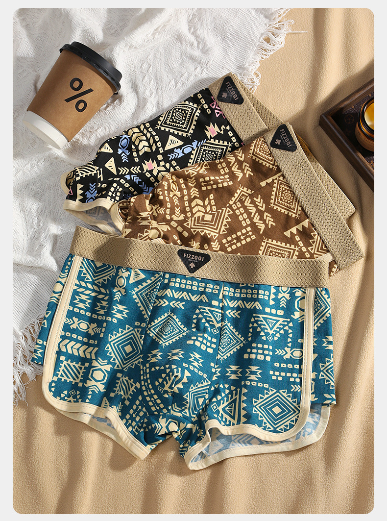 새로운 아메리칸 스타일 레트로 민족 스타일 남성 속옷 남성용 코튼 복서 반바지 통기성 4 코너 트렌드 반바지스토어 가기