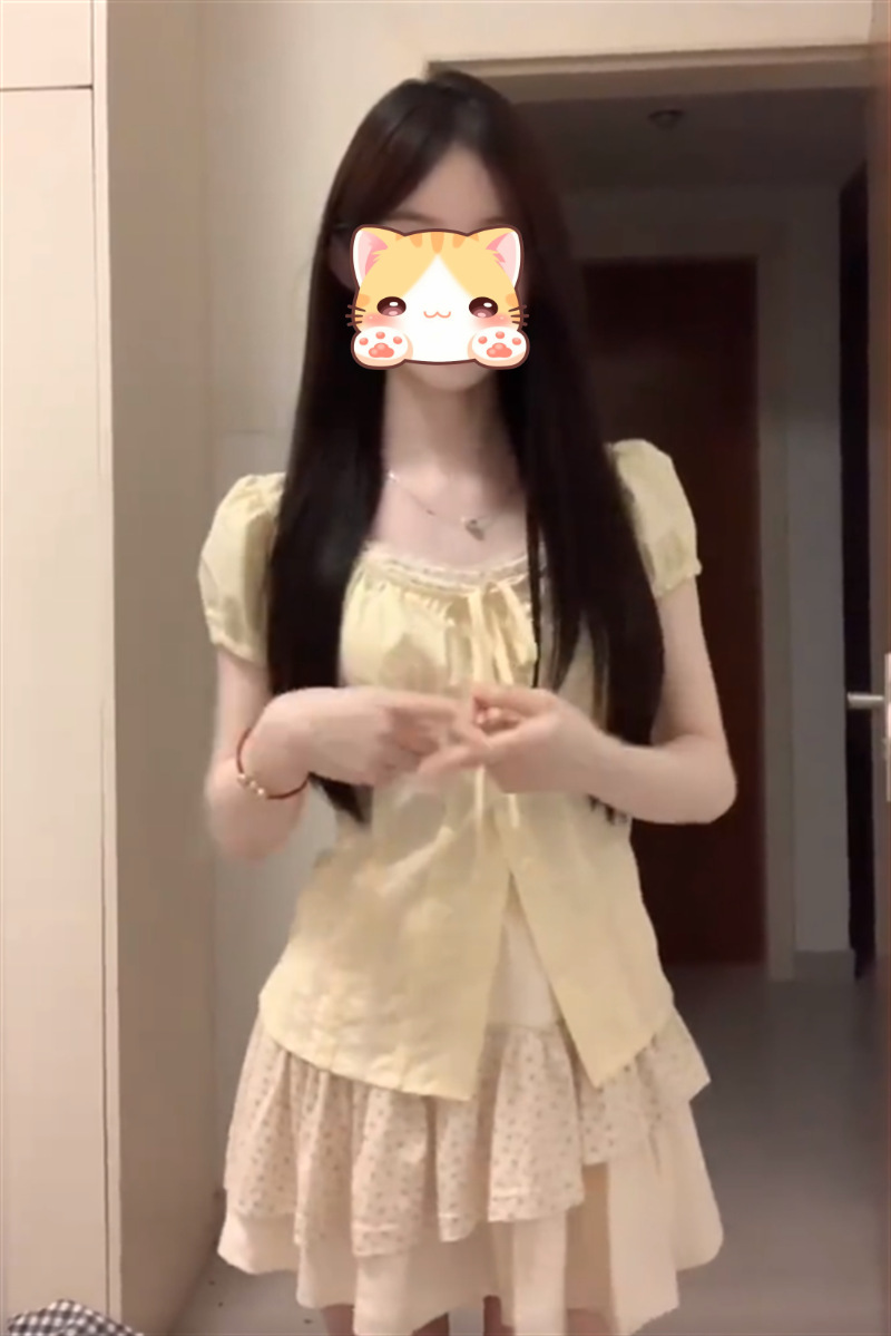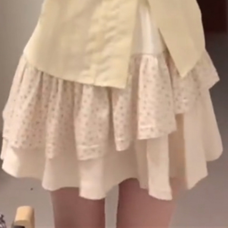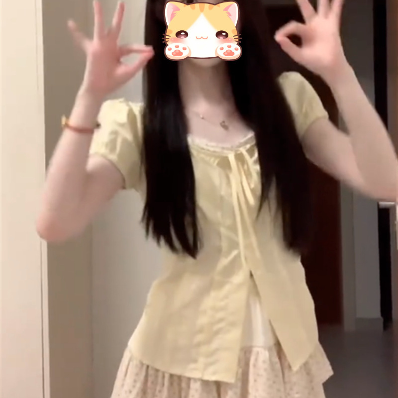 여름 새로운 한국 스타일 달콤하고 부드러운 스타일 퍼프 슬리브 탑 여성의 높은 허리 슬림 A 라인 스커트 투피스 유행 세트스토어 가기