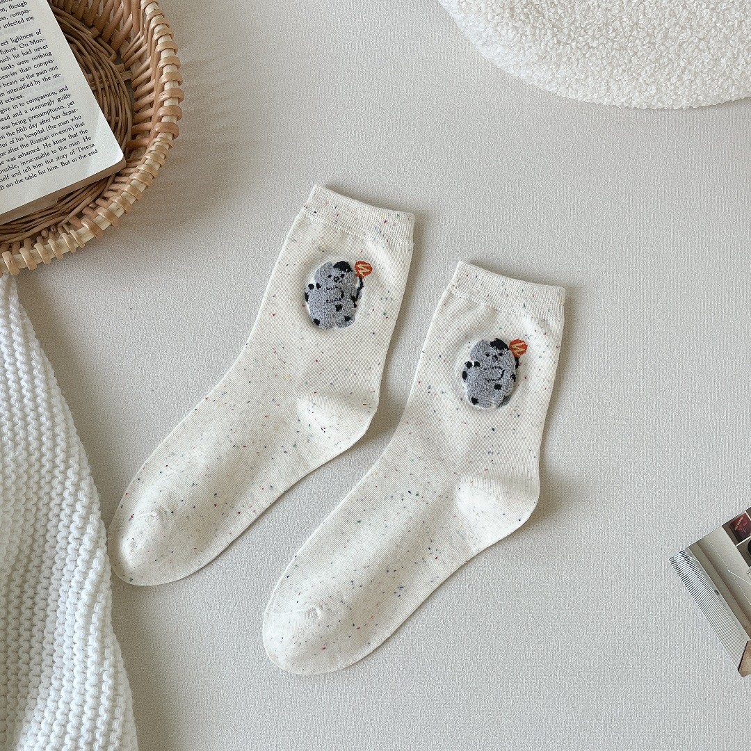 가을 소녀 귀여운 만화 양말 중간 튜브 봄과 가을 일본 밀키 화이트 아이디어 원사 부드러운 캐주얼 양말 긴 양말스토어 가기