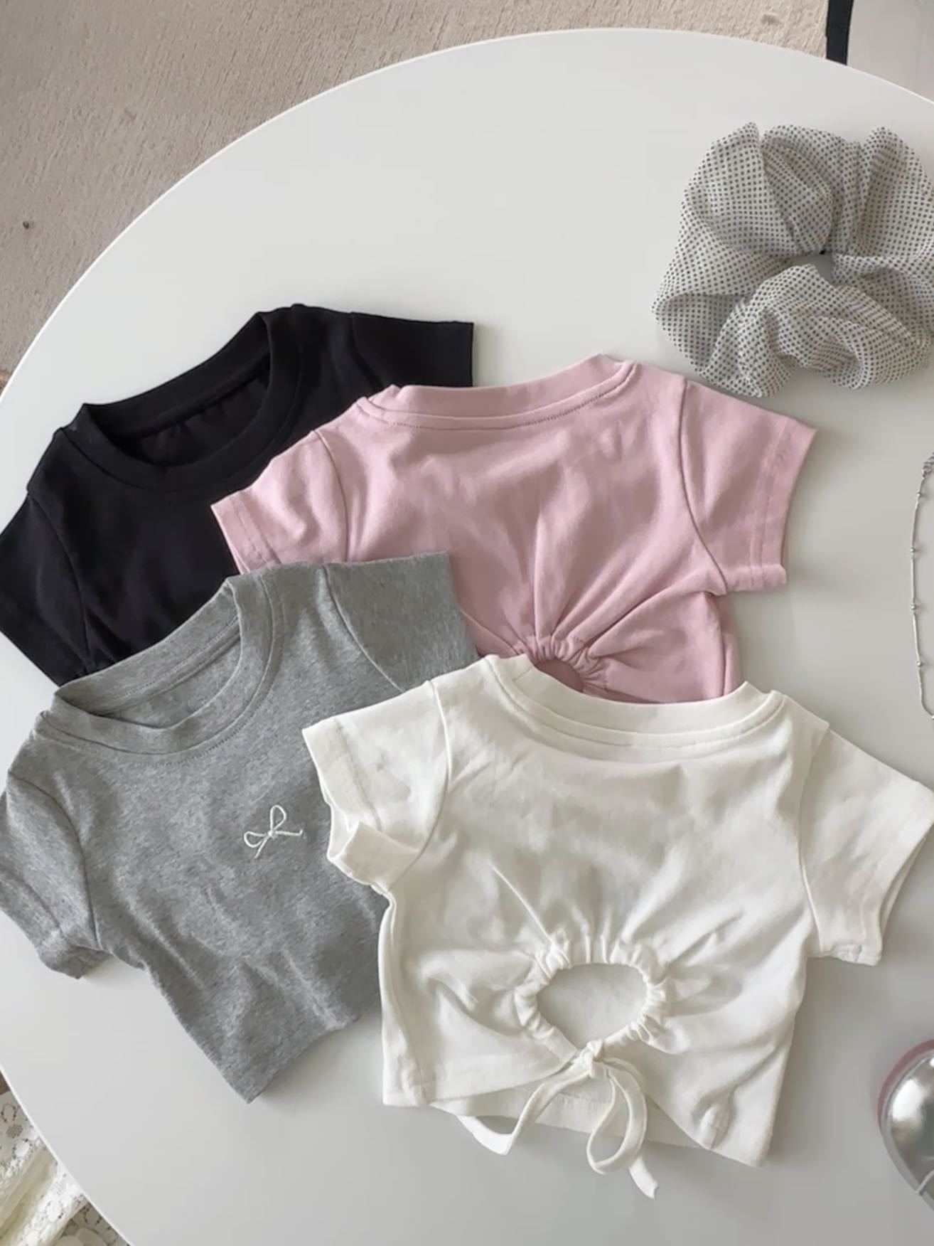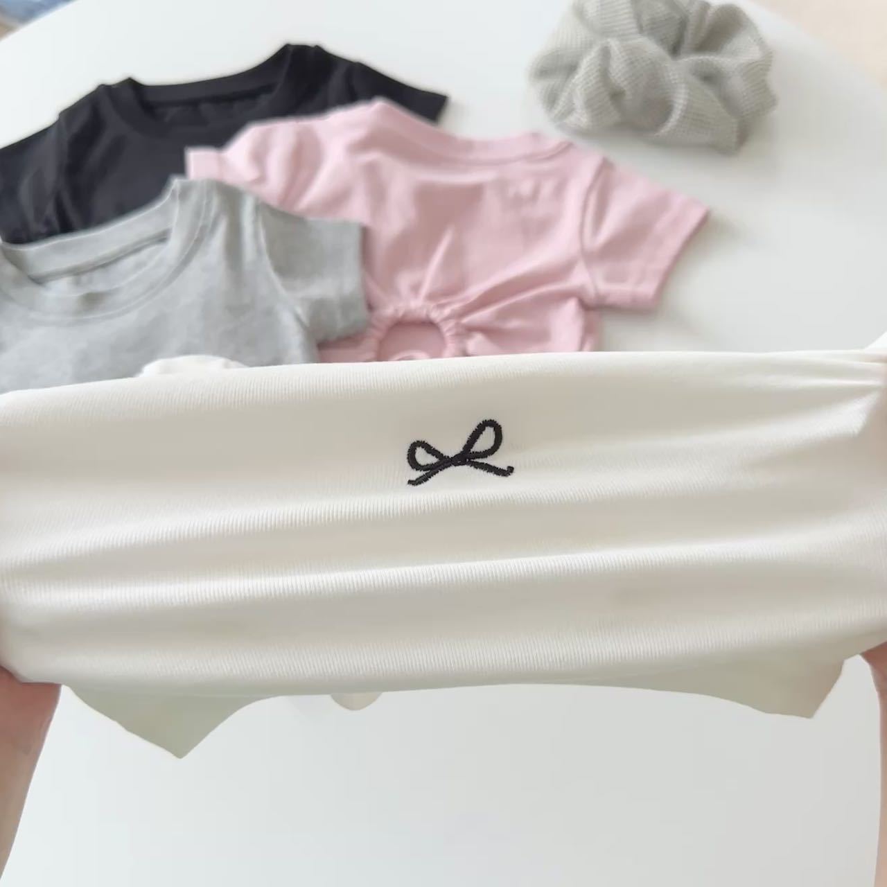 소녀 티셔츠 2025 여름 새로운 한국식 활 백리스 자수 짧은 소매 귀여운 올 매치 캐주얼 웨스턴 스타일스토어 가기