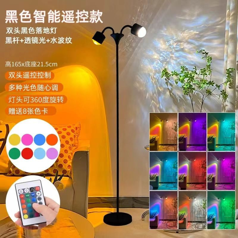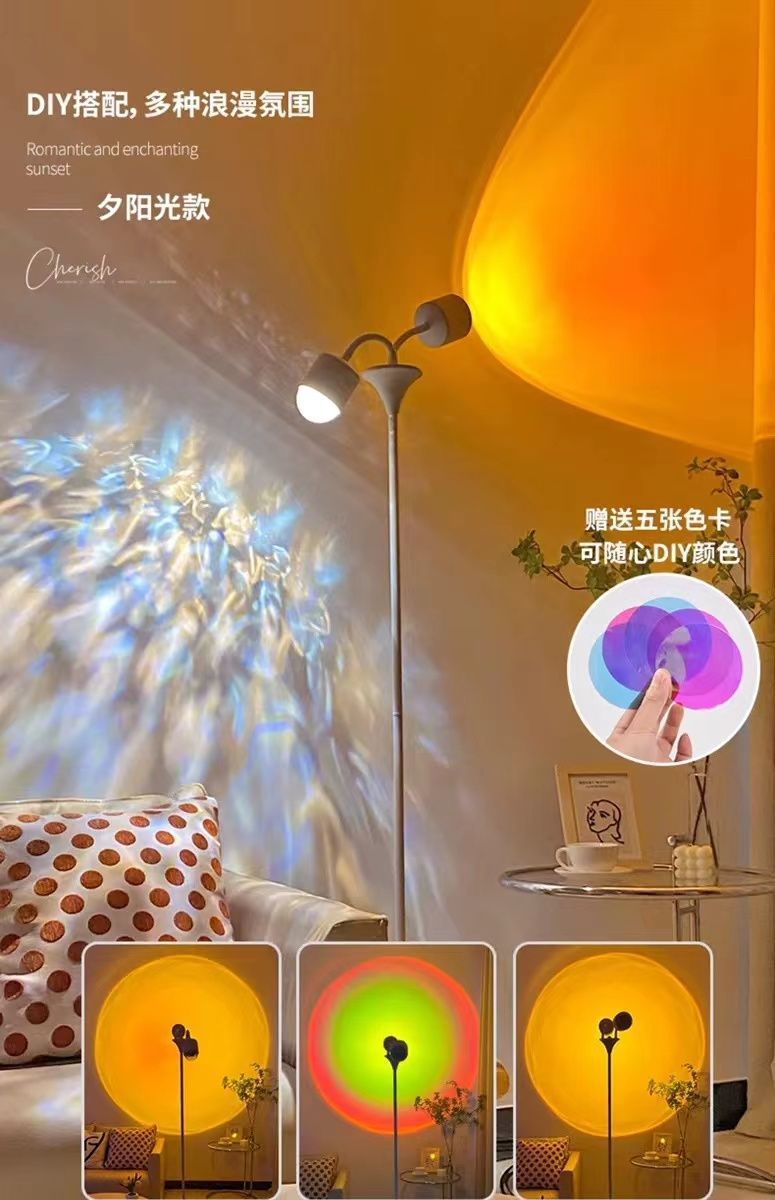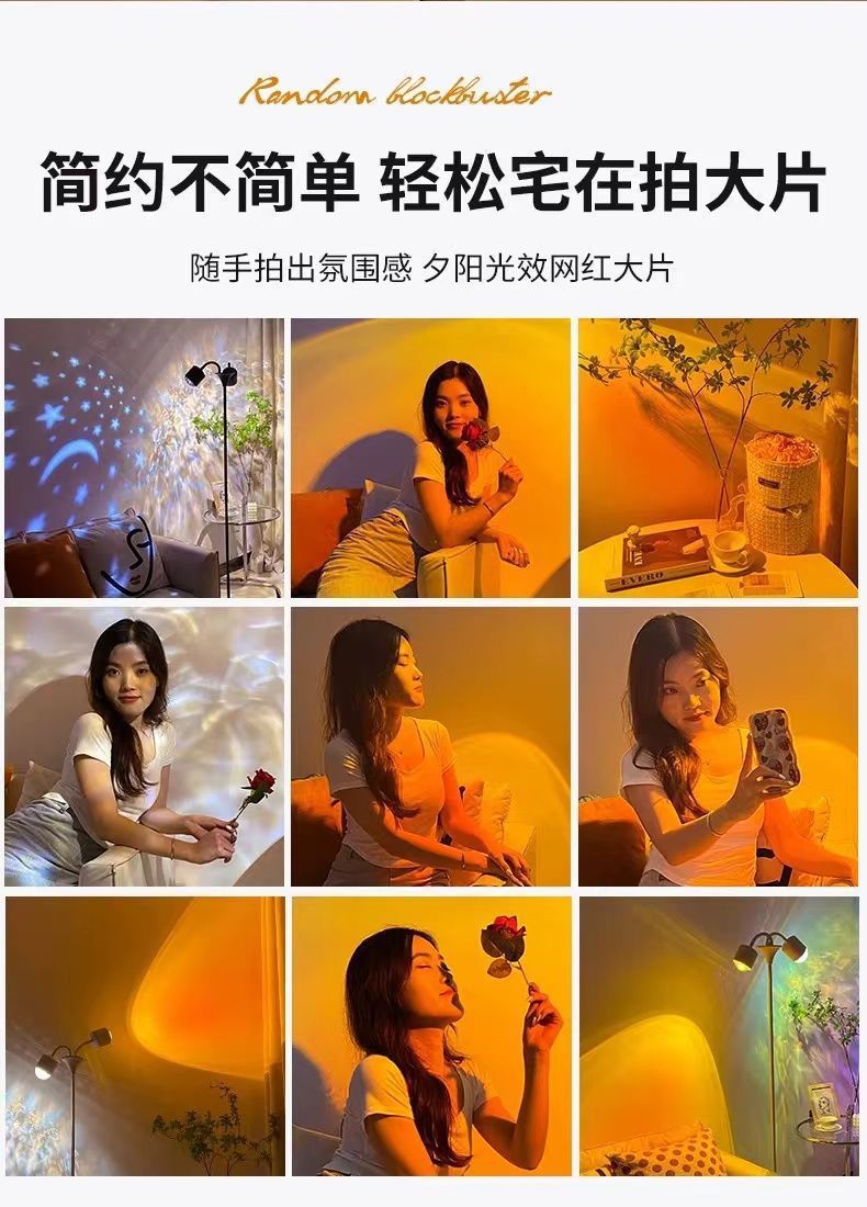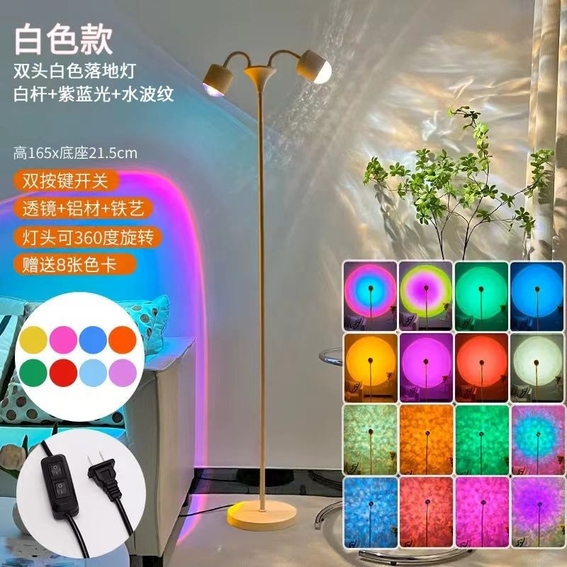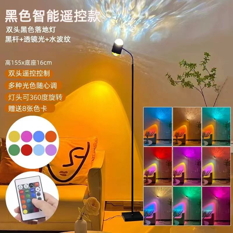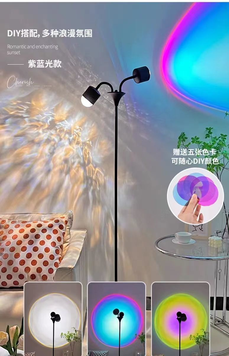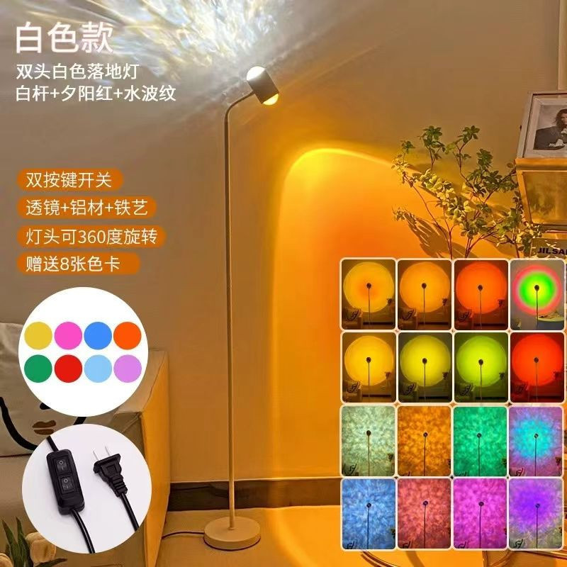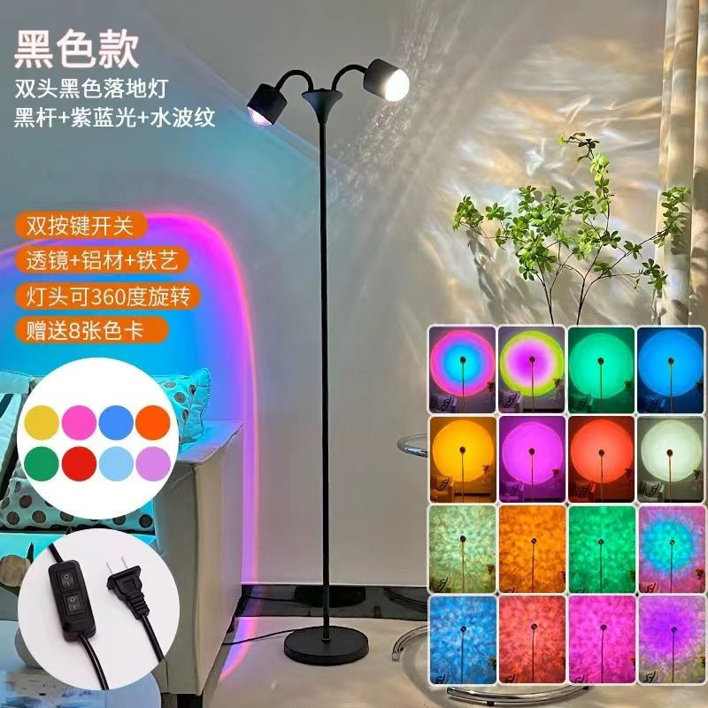 • 블랙 유니버설 더블 헤드 선셋 라이트 + 물 리플 + 8가지 컬러 카드의 향상된 버전