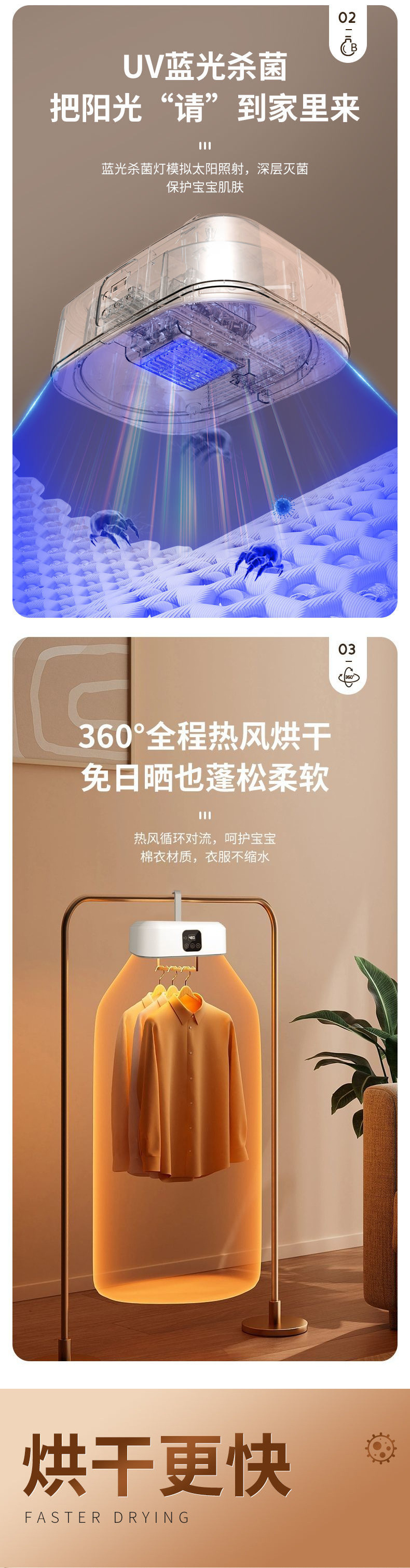 • [3중 살균 및 진드기 제거 업그레이드] 듀얼 속도 건조 + 버클