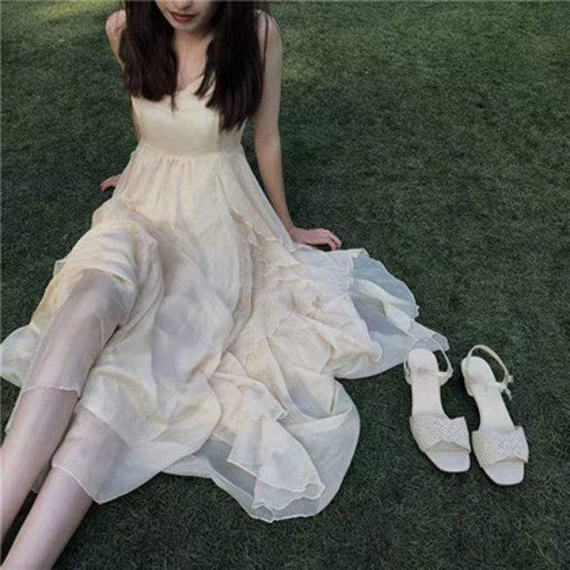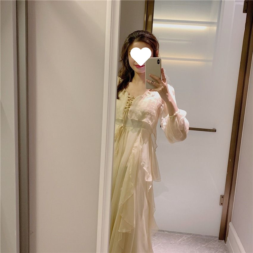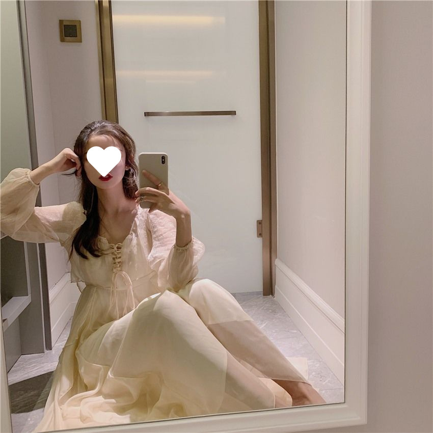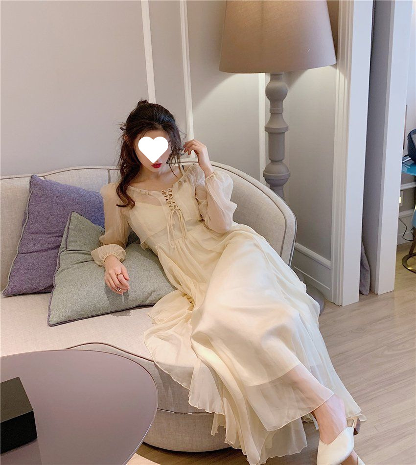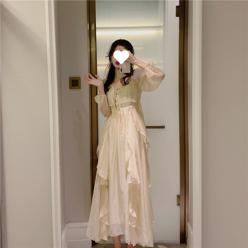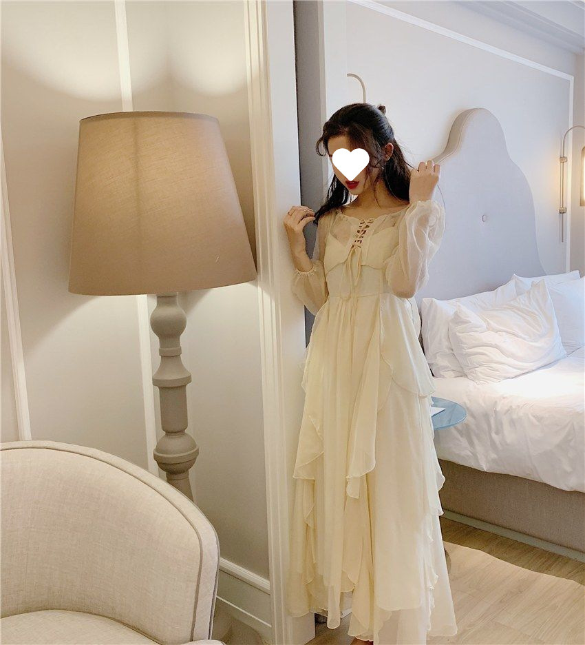 새로운 도착 프랑스 스타일 첫사랑 Platycodon Grandiflorum 요정 스커트 인 슈퍼 페어리 슬림 슬링 긴 소매 원피스 투피스 세트