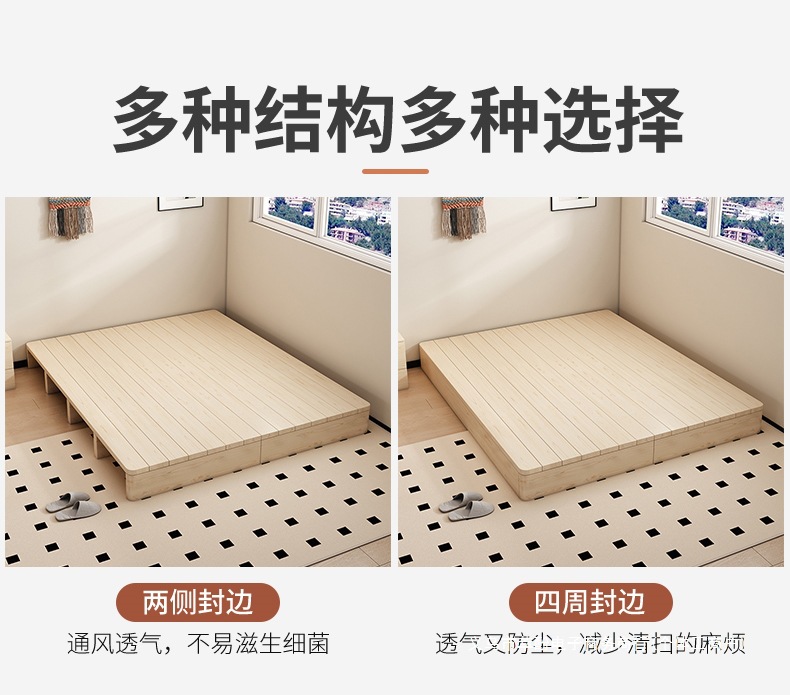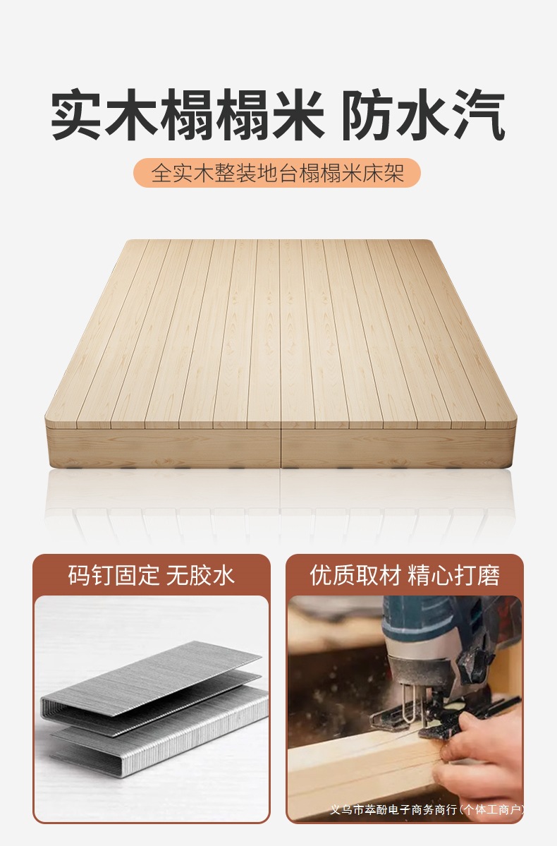 풀 플로어 일본식 다다미 솔리드 우드 방습 갈비 침대 프레임 층간 렌탈 하우스 홈스테이 침실 침대 일본식 침대 프레임