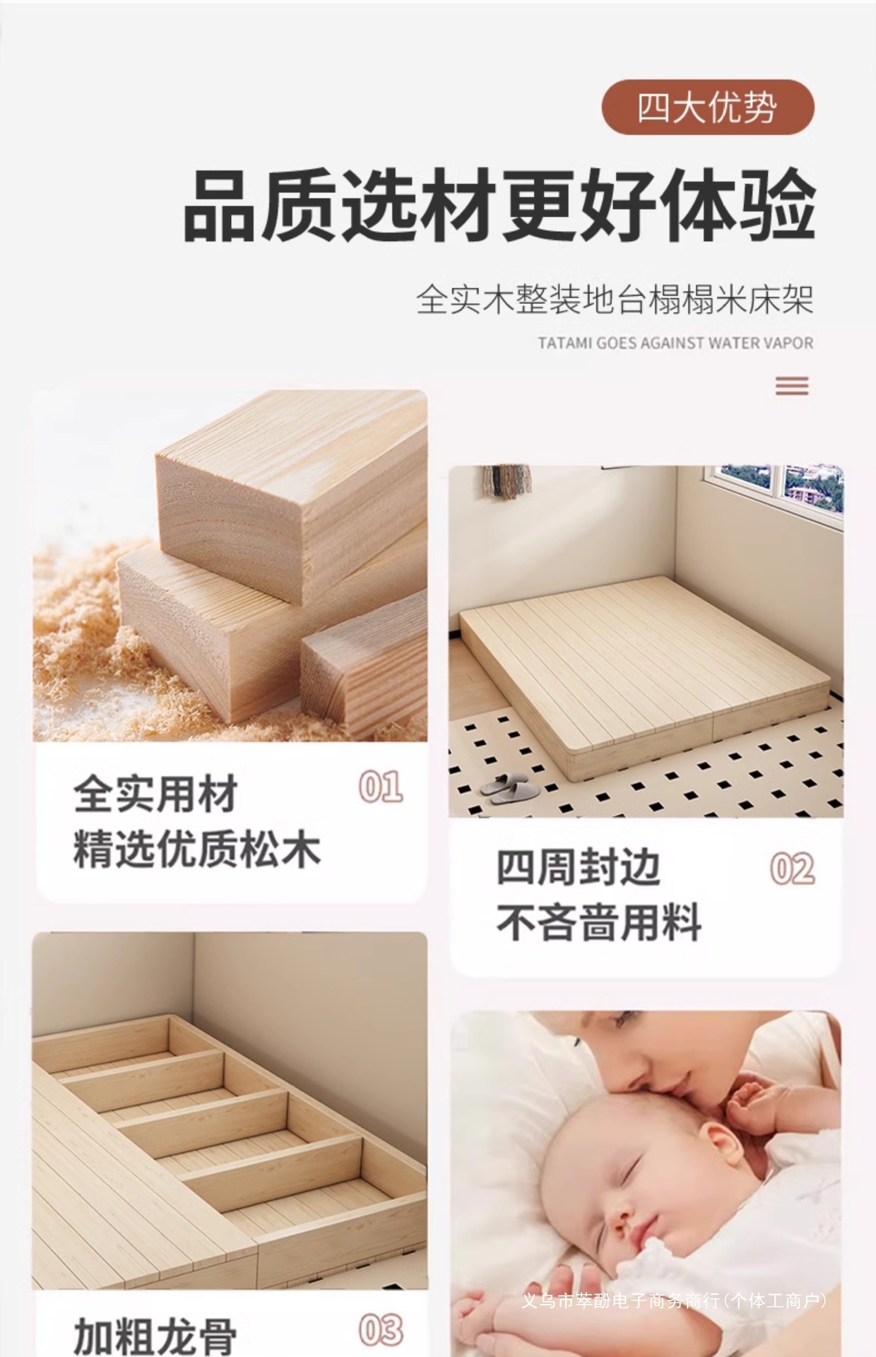풀 플로어 일본식 다다미 솔리드 우드 방습 갈비 침대 프레임 층간 렌탈 하우스 홈스테이 침실 침대 일본식 침대 프레임스토어 가기