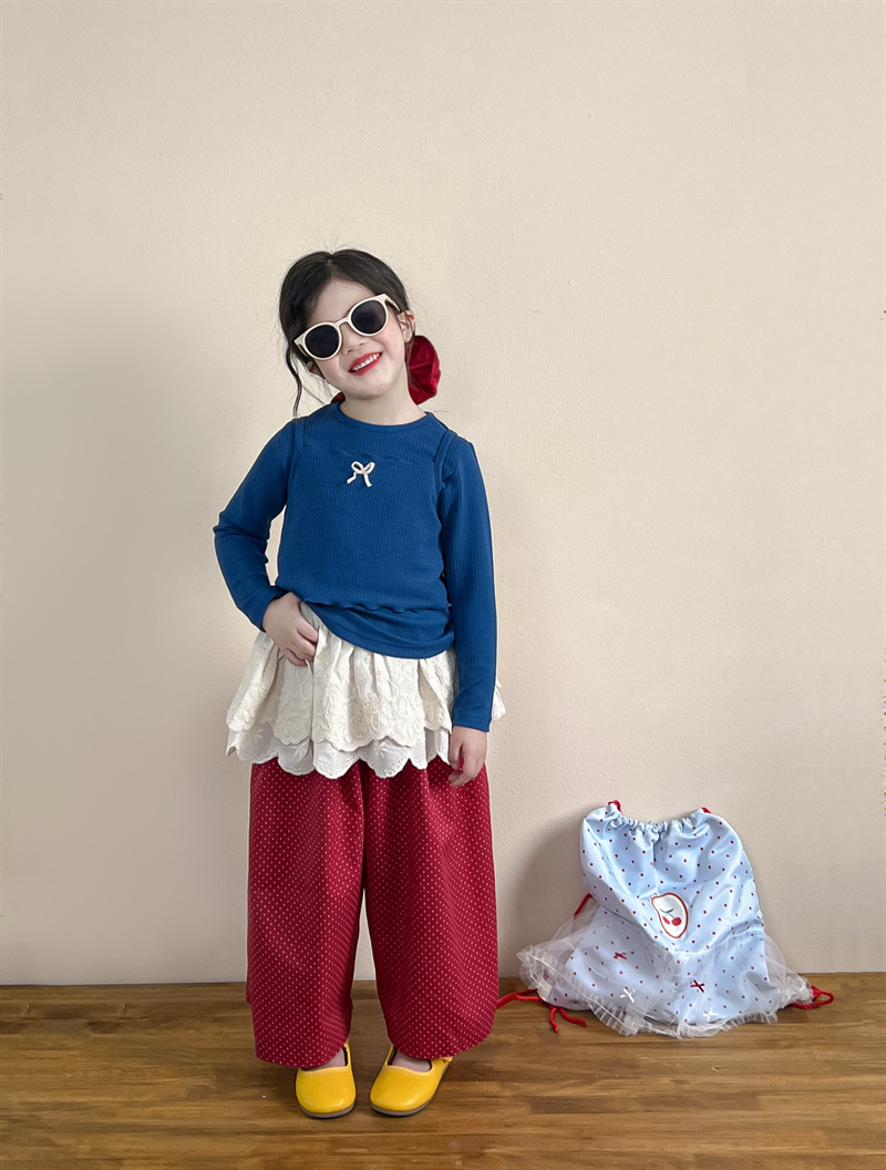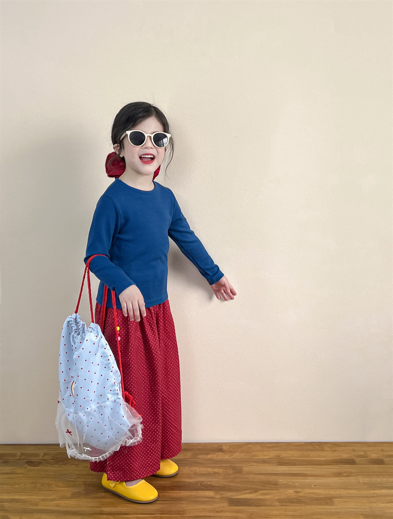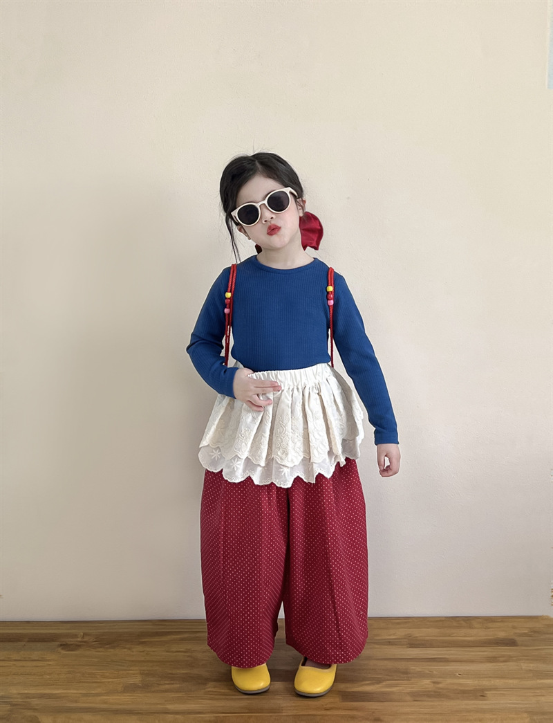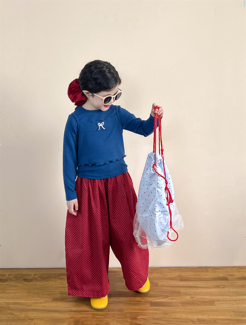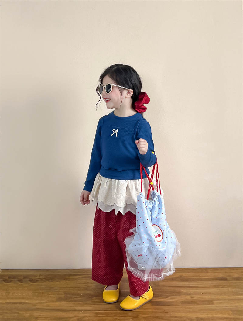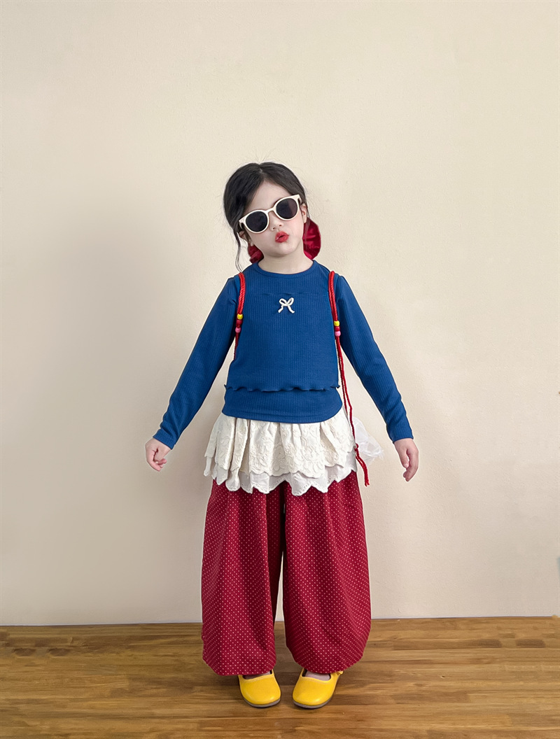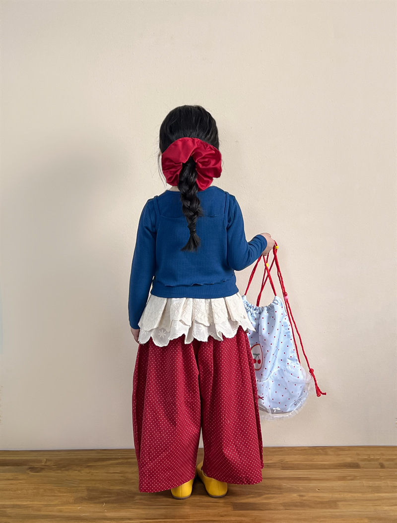 한국 소녀의 봄과 가을 블루 자수 활 스트랩 커버 아트 커튼 레드 웨이브 닷 넓은 다리 바지 세트 별도의 팻