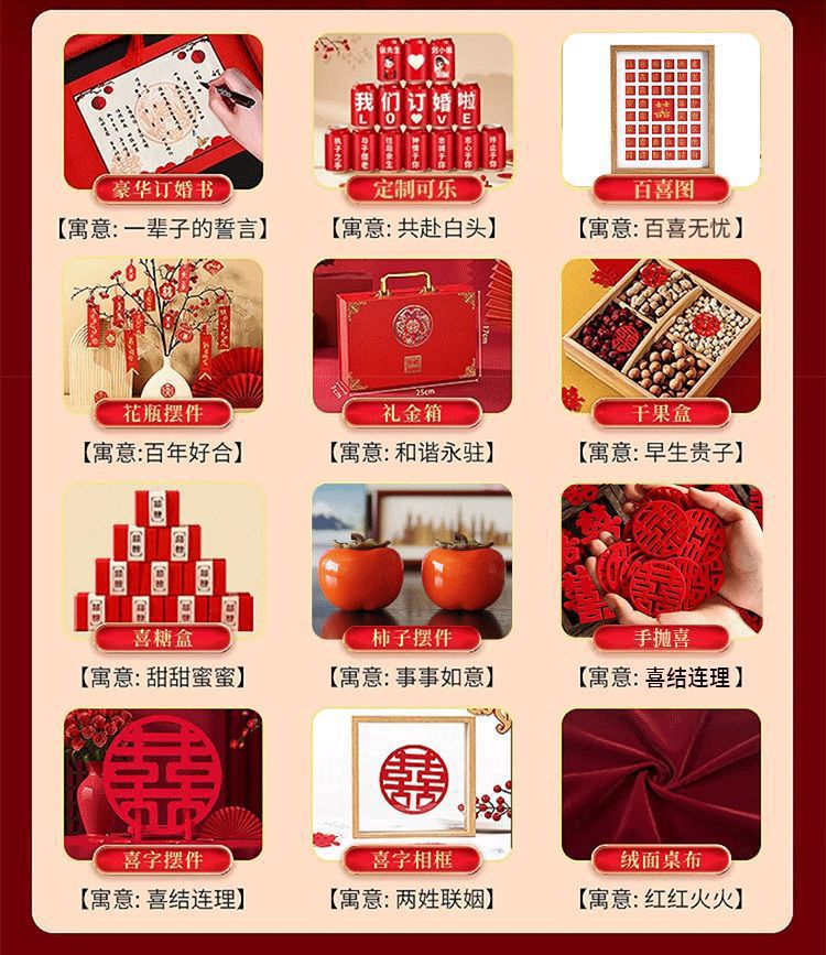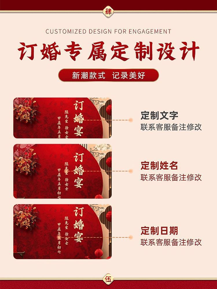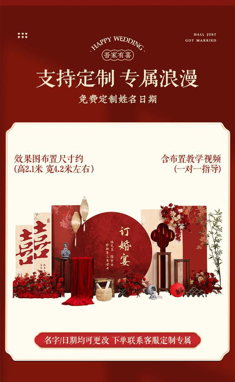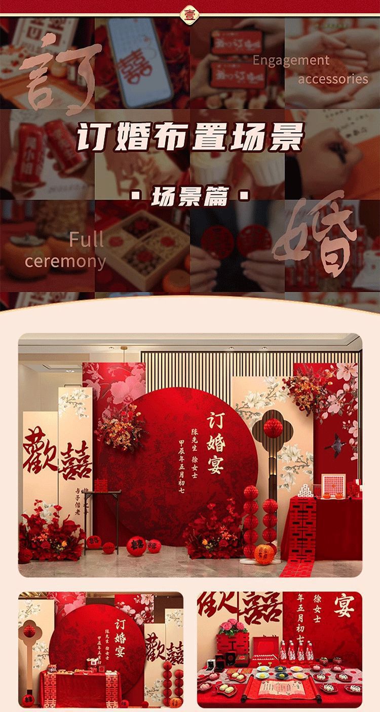 새로운 중국 스타일 약혼 배경 보드, 약혼 연회 장식, 웨딩 보드 레이아웃, 장식품 및 테이블 용품 전체 세트, 무료 배송