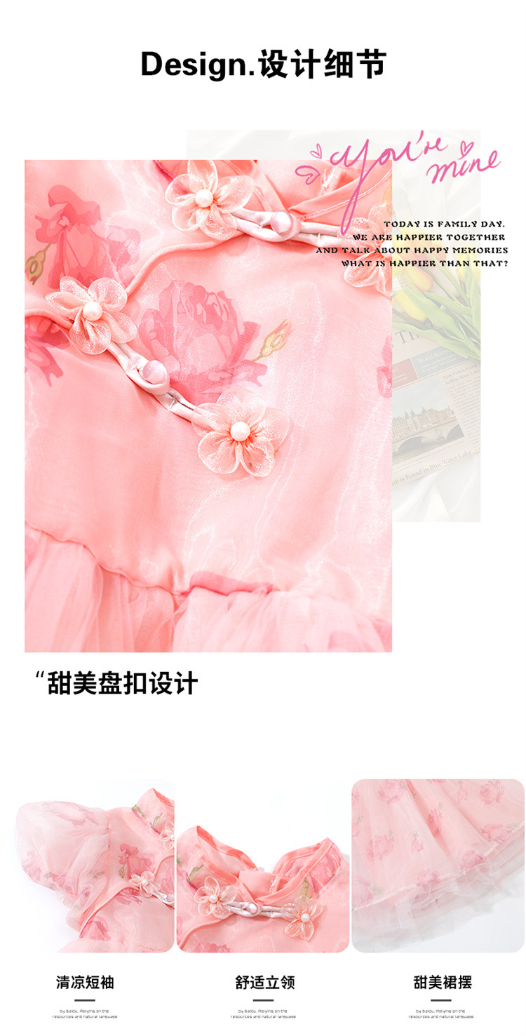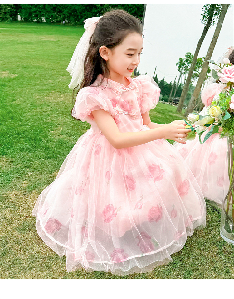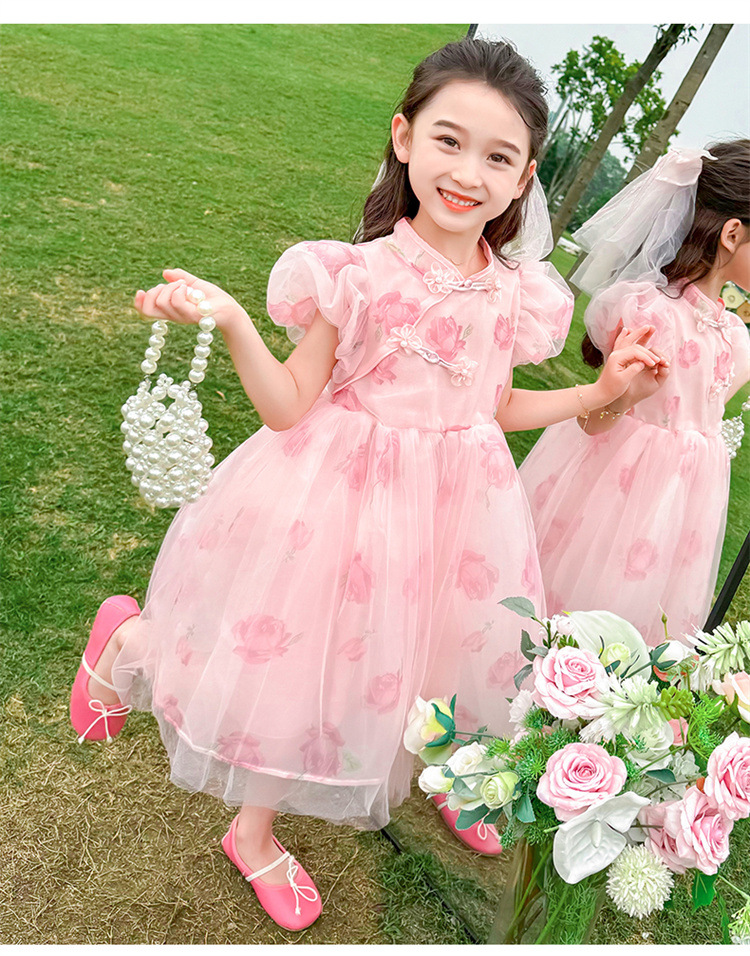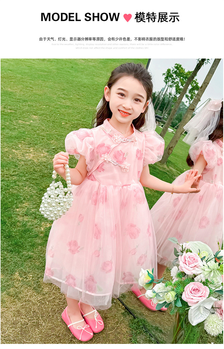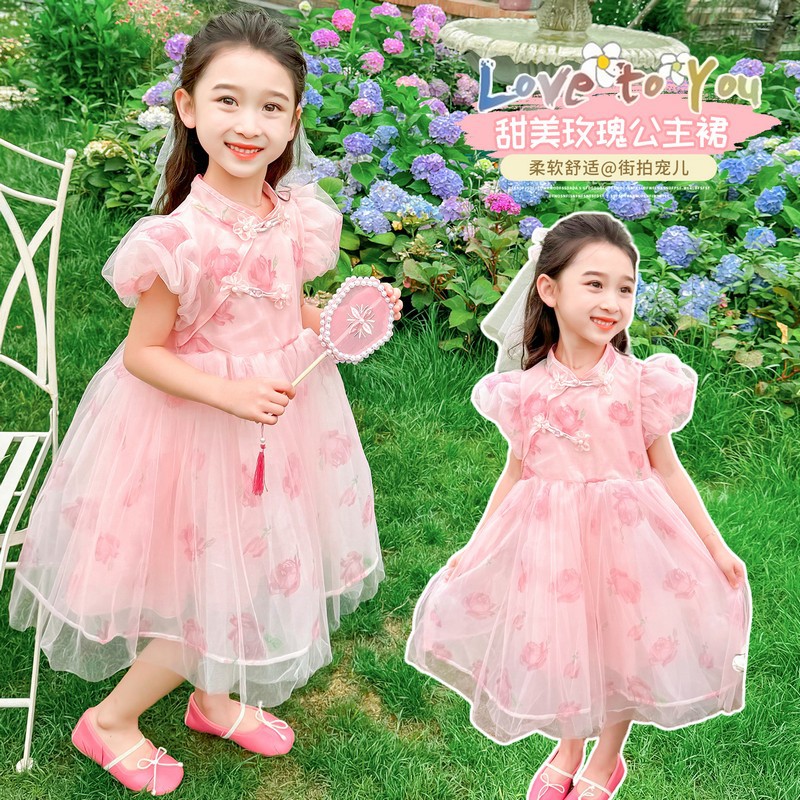 여자 중국 스타일 드레스 여름 2025 새로운 어린이 중국 스타일 버클 메쉬 여름 드레스 패션 아기 소녀 스커트