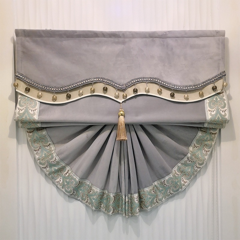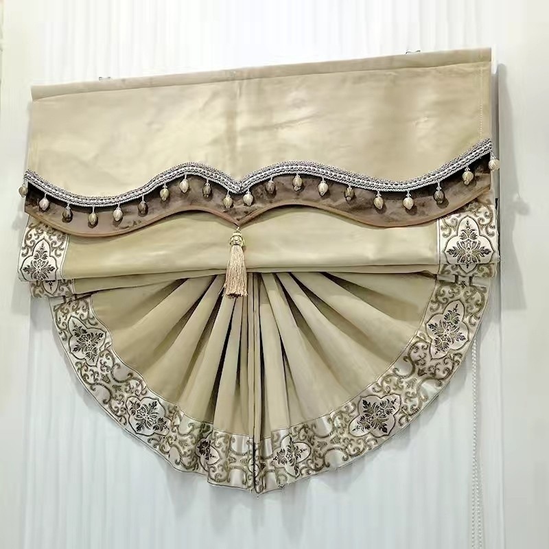 유럽식 로만 커튼, 부채꼴 커튼, 펀치 없는 밀크티 컬러 풀다운 커튼, 통로 차광 도어 커튼 파티션