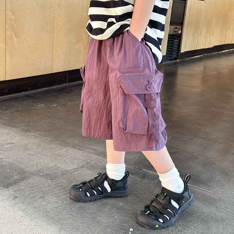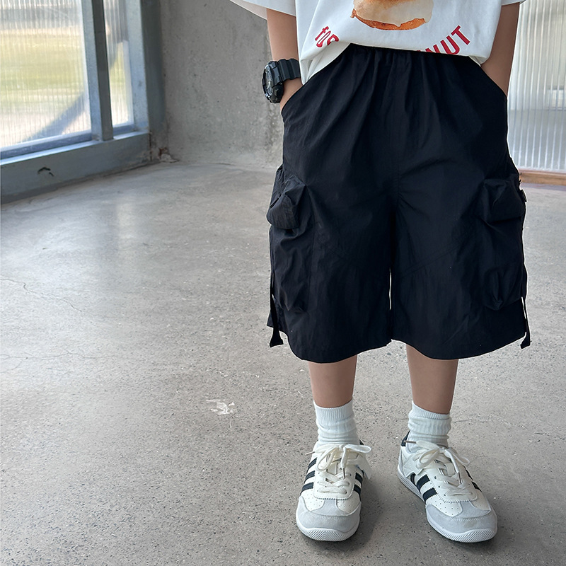 Emo Beibei 어린이 2025 여름 시원한 느슨한 빠른 건조 바지 남성과 여성의 큰 어린이 잘 생긴 포켓 작업복 반바지 트렌디스토어 가기