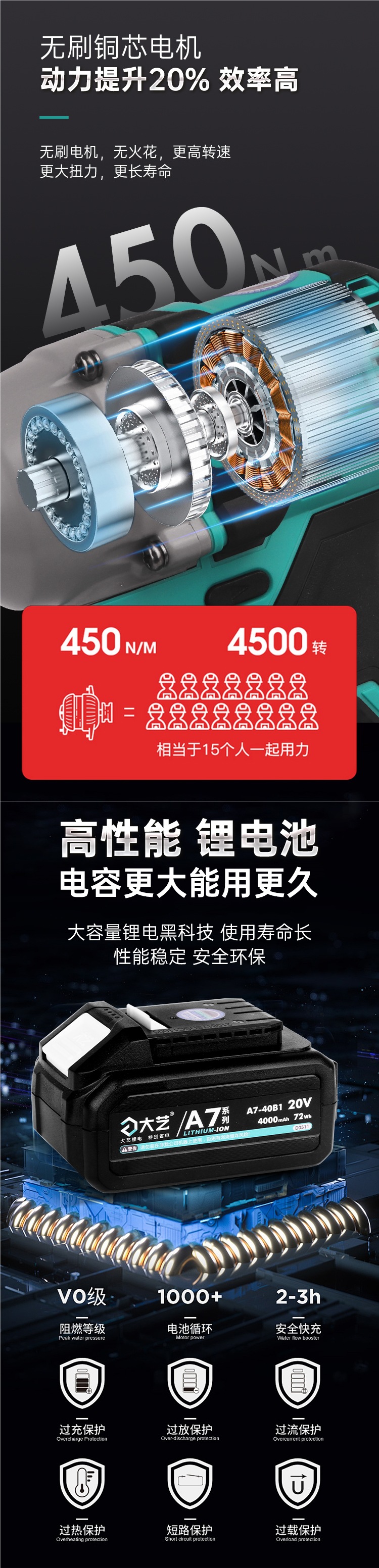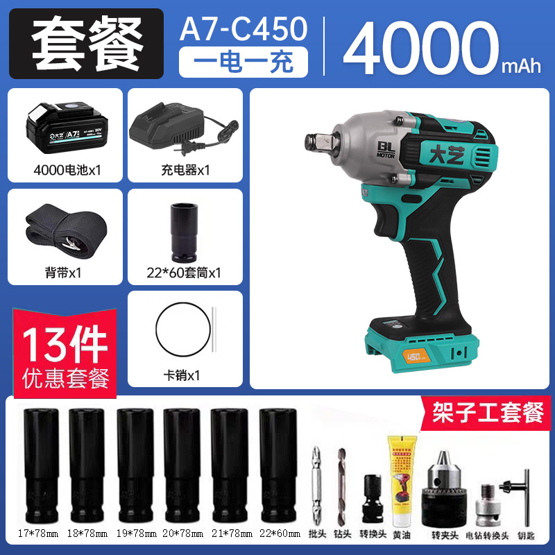 Dayi 전기 렌치 새로운 450N 브러시리스 충전식 리튬 배터리 충격 렌치 A7C450 발판 자동 수리 공기총스토어 가기