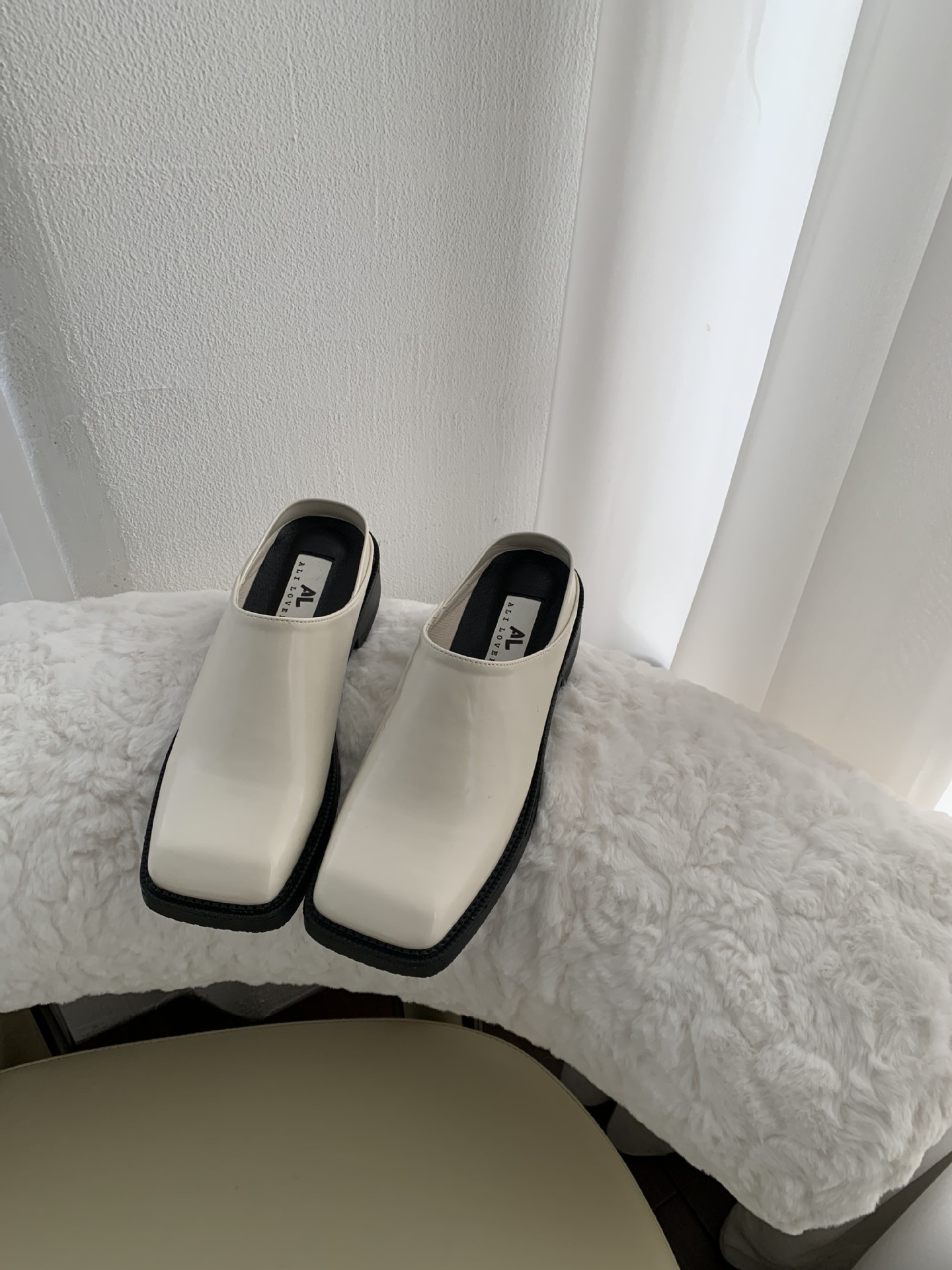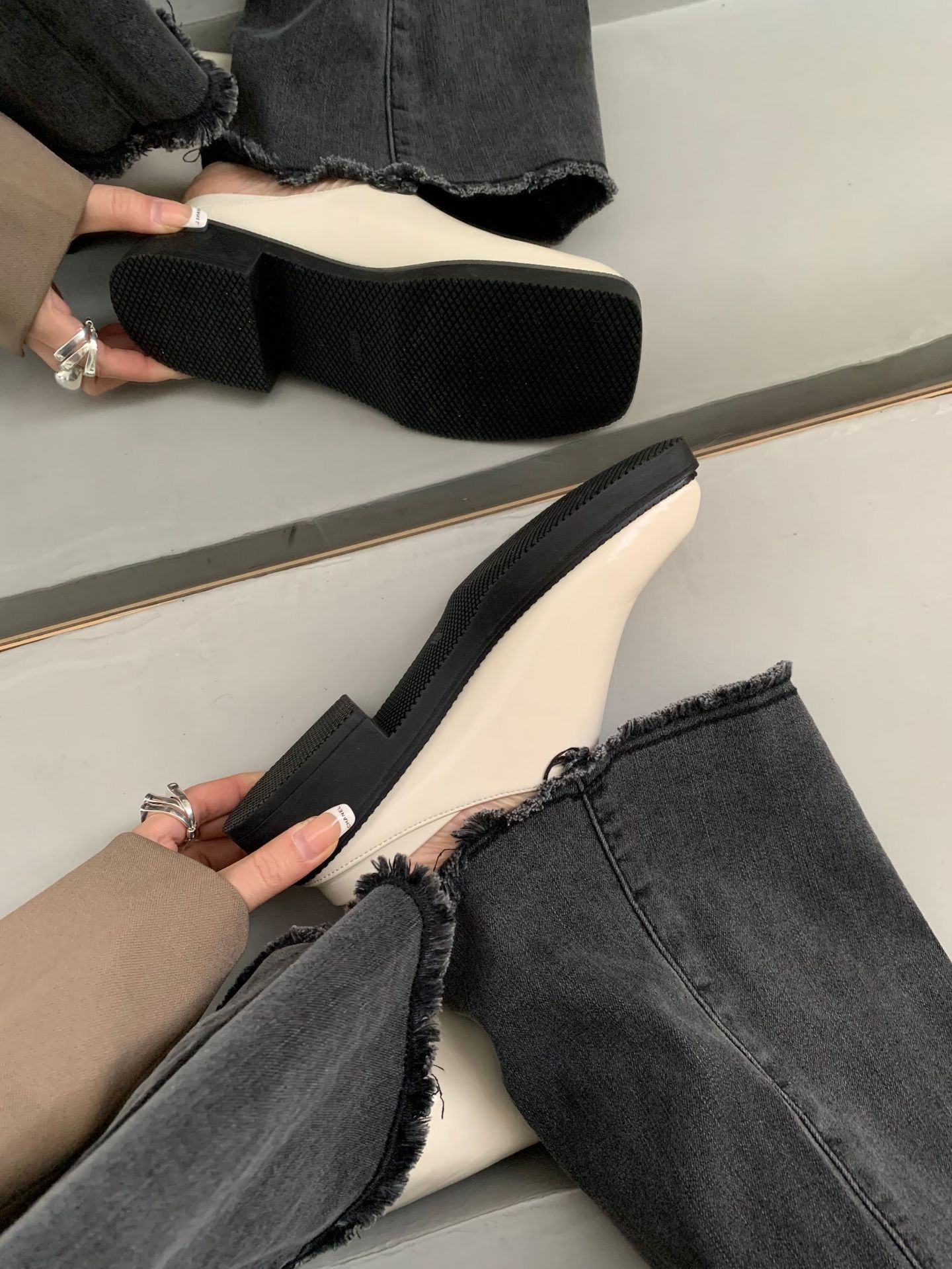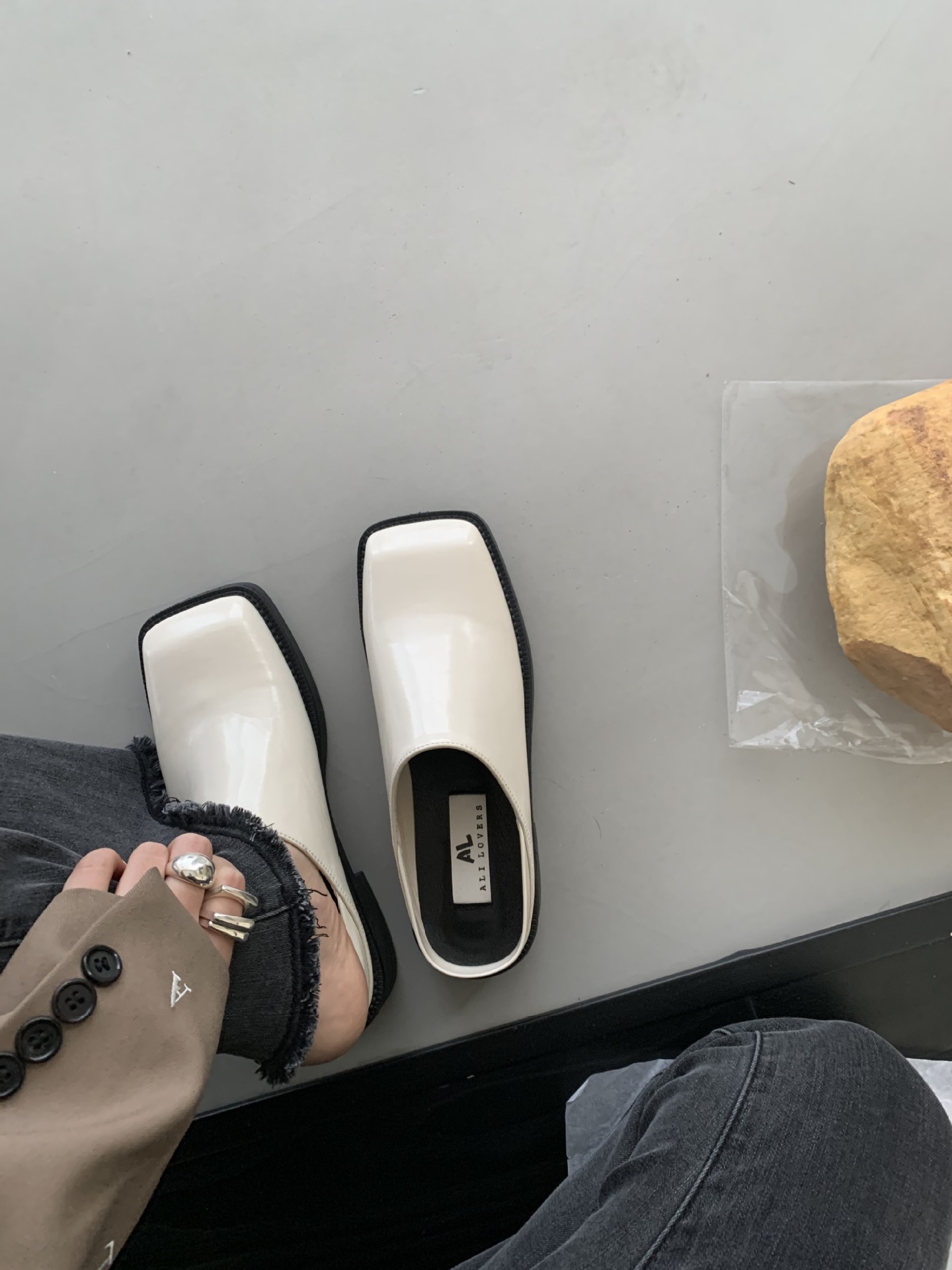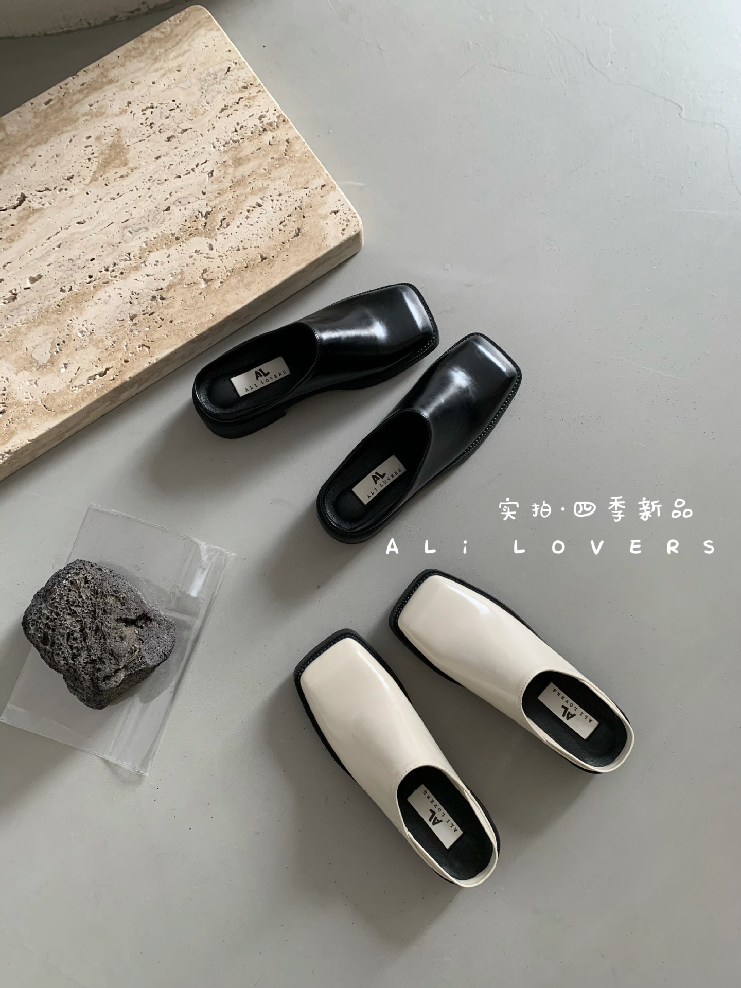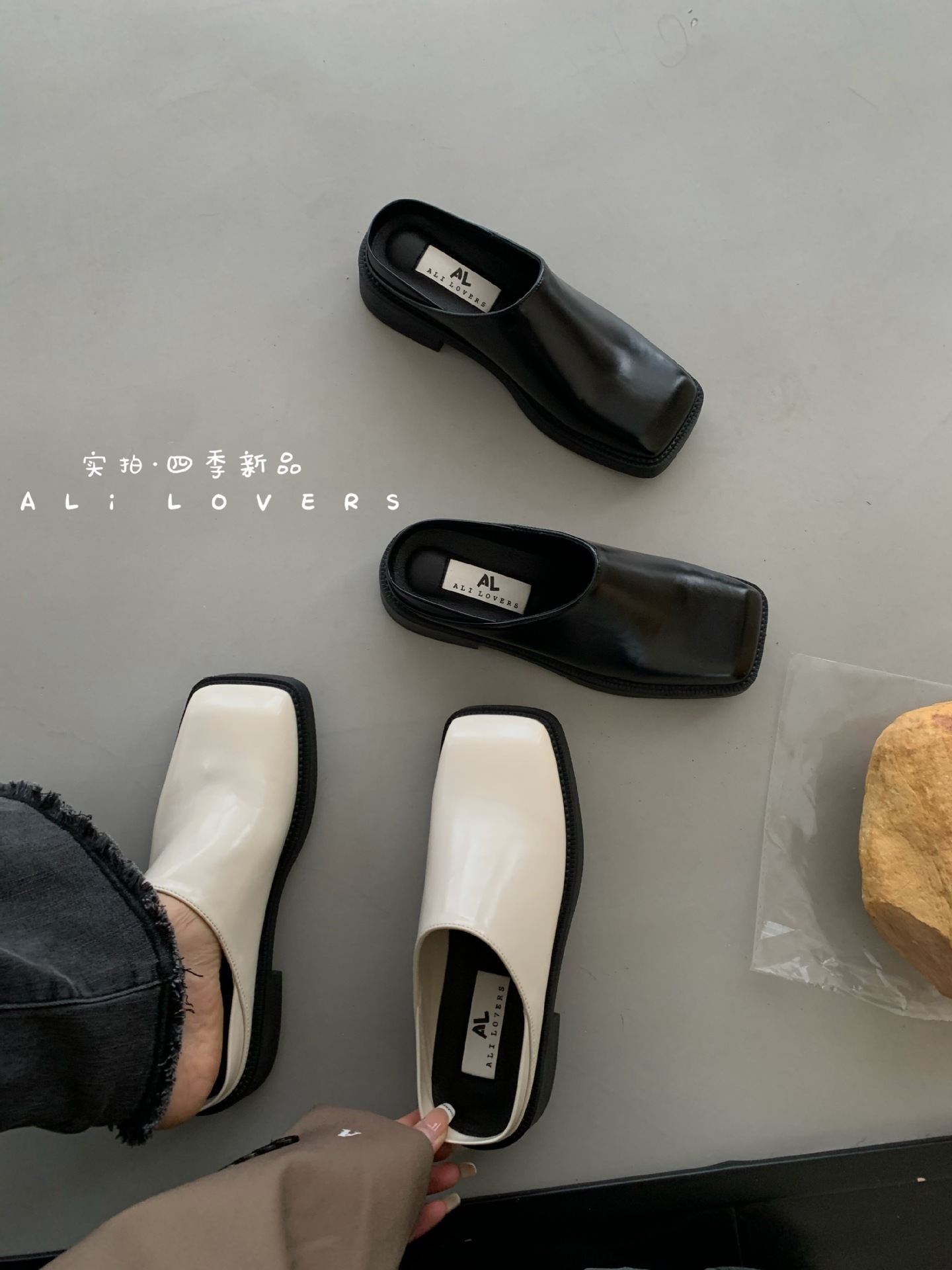 한국 동대문 블랙 토캡 하프 슬리퍼 두꺼운 밑창 두꺼운 굽 영국식 스퀘어 토 힐리스 레이지 뮬 여성용