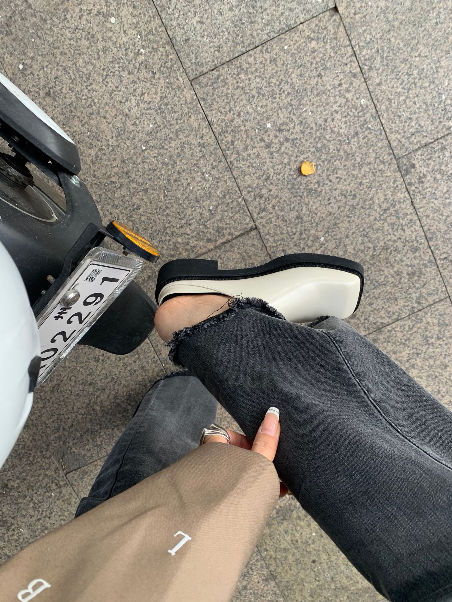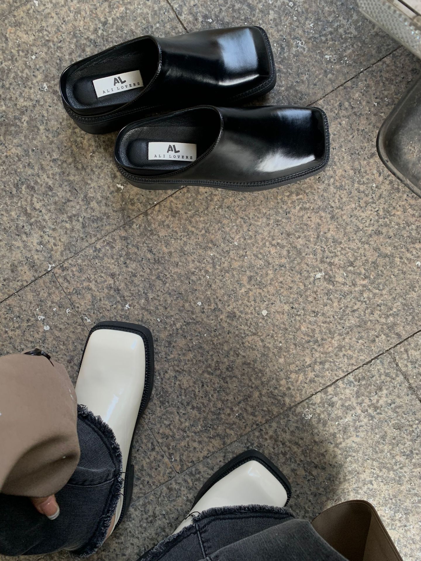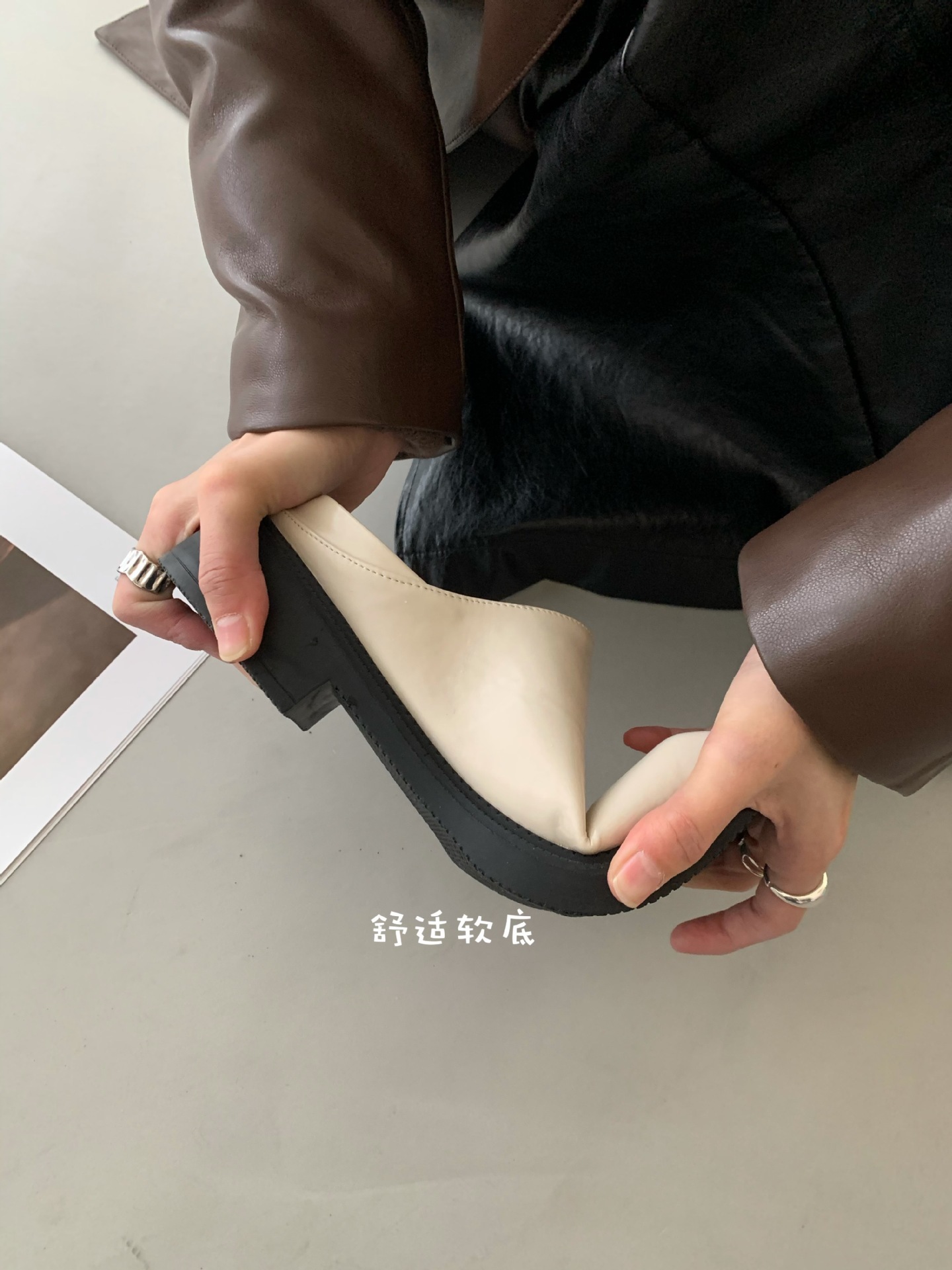 한국 동대문 블랙 토캡 하프 슬리퍼 두꺼운 밑창 두꺼운 굽 영국식 스퀘어 토 힐리스 레이지 뮬 여성용스토어 가기