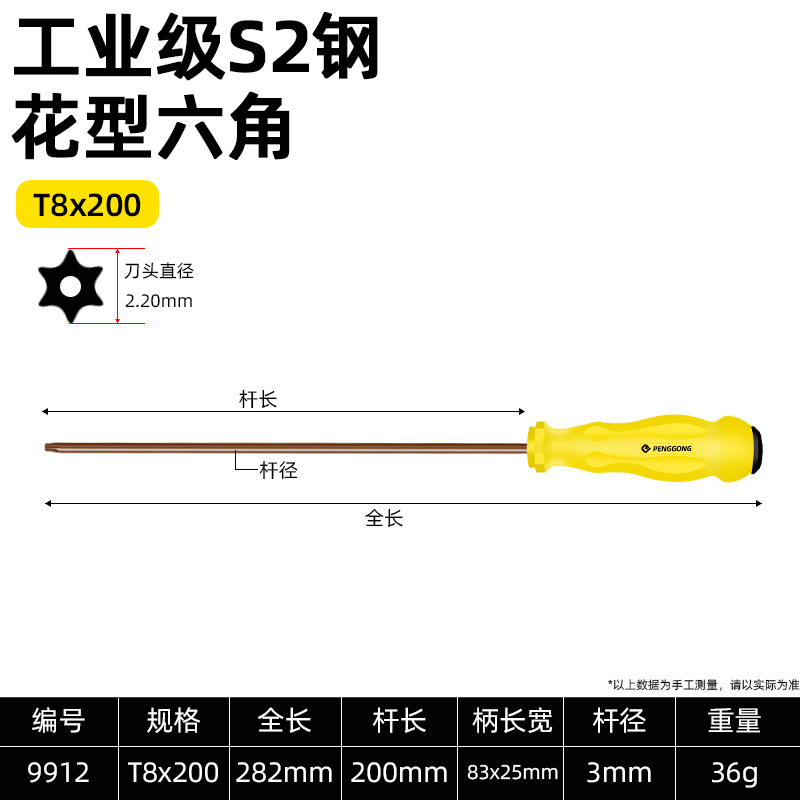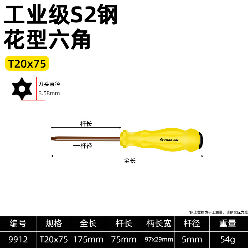 • S2 산업용 등급 [T9*75] 별 드라이버 [중간 구멍 없음]