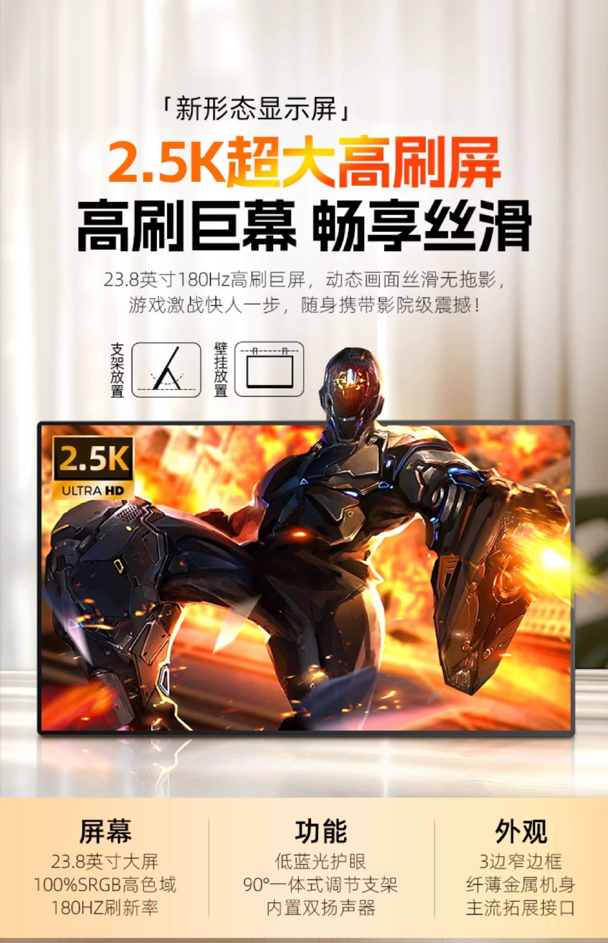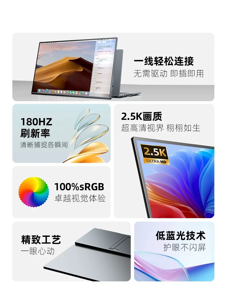 23.8inch 휴대용 모니터 180Hz IPS 컴퓨터 확장 화면 PS4/5 외부 화면 2K 보조 화면 LCD 화면