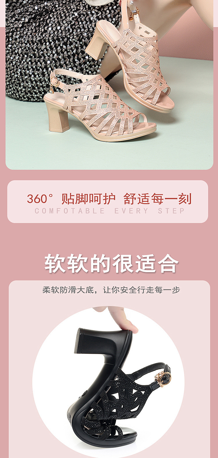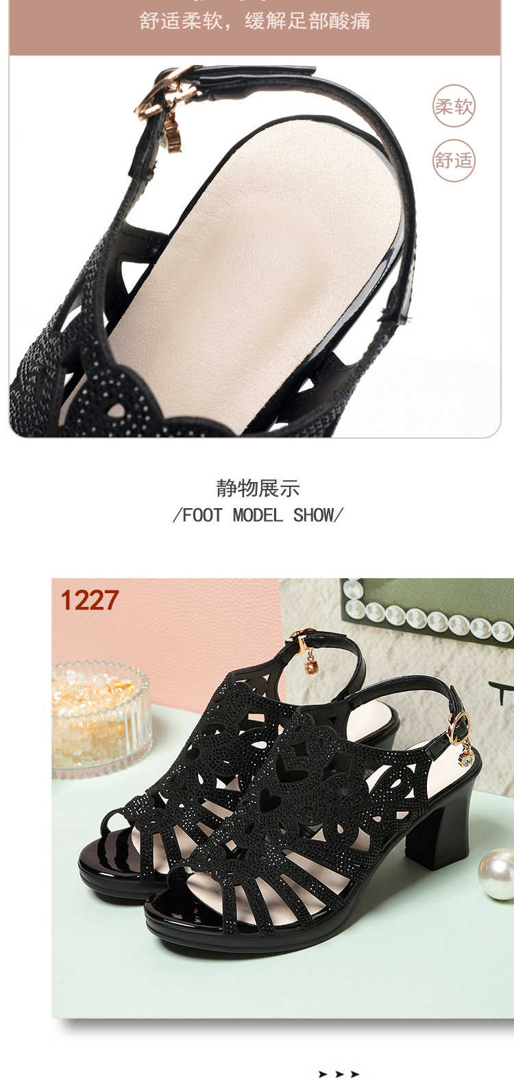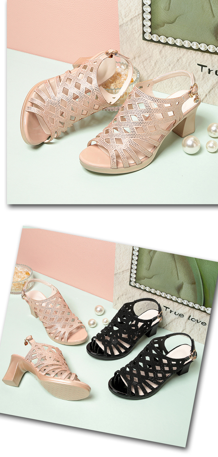 부드러운 가죽 속이 빈 하이힐 편안한 로마 샌들 여름 통기성 패션 조커 생선 입 숙녀 샌들스토어 가기