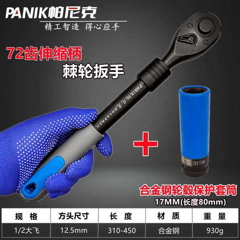 • 72톱니 산업용 텔레스코픽 래칫 렌치 + 17 허브 보호 슬리브 파니크 블랙 스틸 시리즈