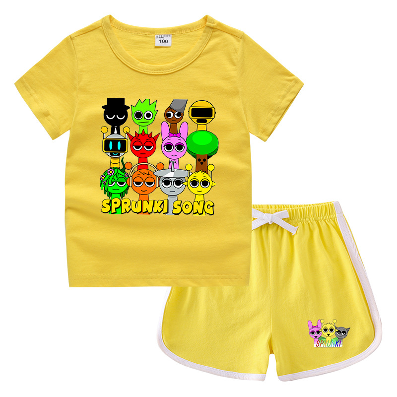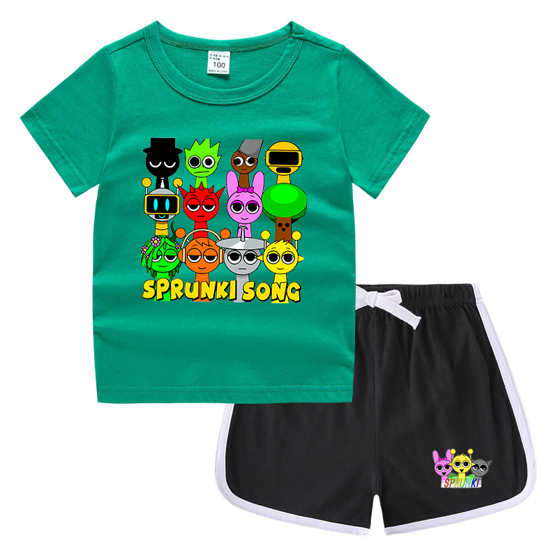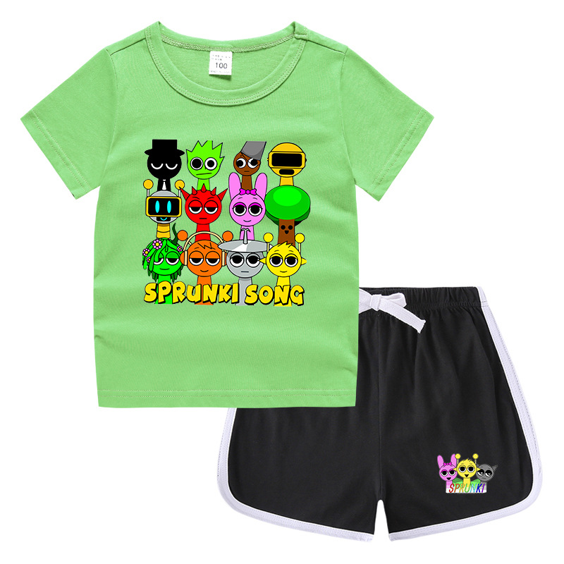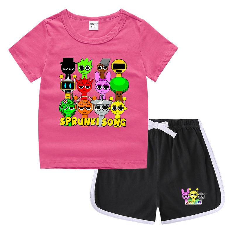 여름 남자 어린이 착용 딸 크루 넥 티셔츠 핫 팬츠 한국 캐주얼 반팔 보텔 셔츠 스포츠 학생 반바지 세트