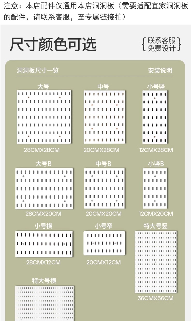 • 흰색 작은 리프팅 후크 7개(저희 매장의 천공 보드에만 사용됨)
