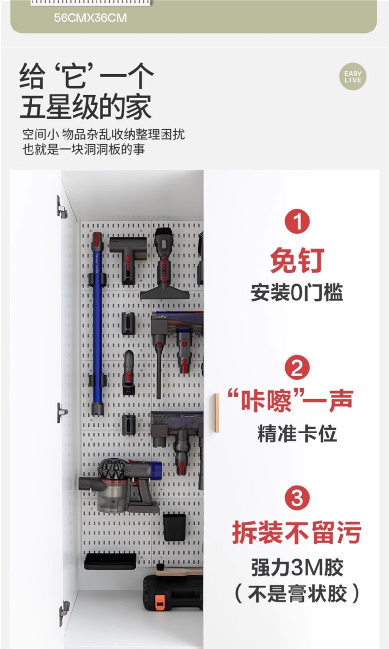 다이슨 진공청소기 보관함에 적합한 벽걸이형 공구 캐비닛, 구멍 없는 보드 액세서리 보관함