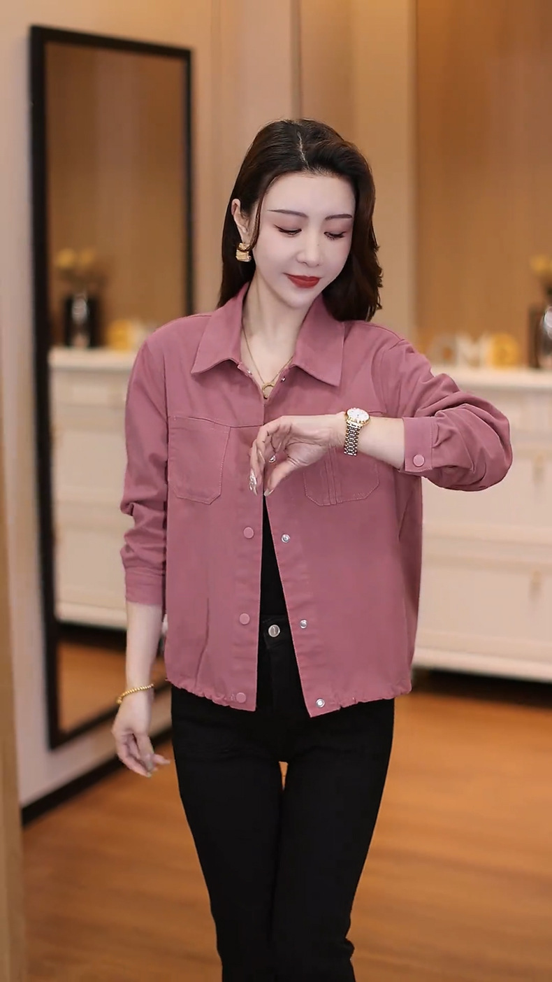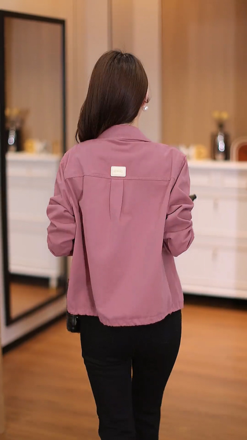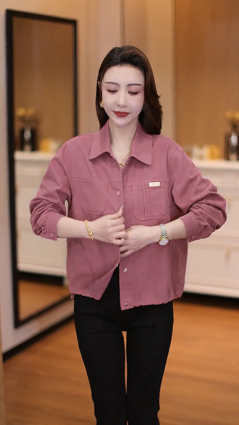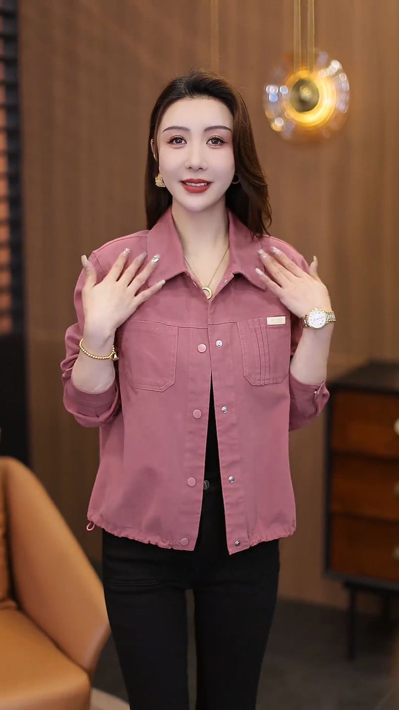패션 캐주얼 쇼트 코트 여성의 봄과 가을 새로운 중년 어머니의 서양 스타일 드로우 스트링 재킷 느슨한 긴 소매 탑