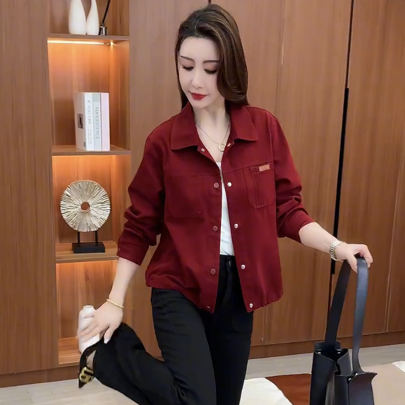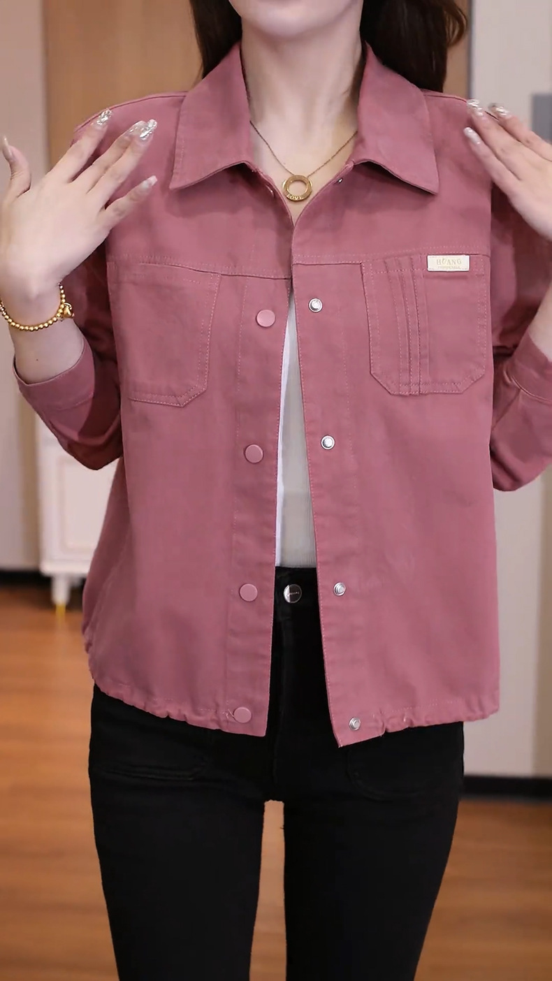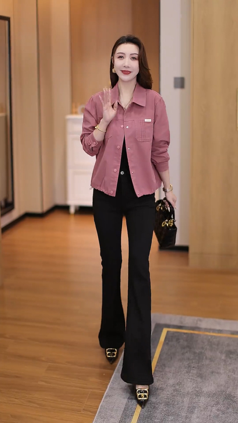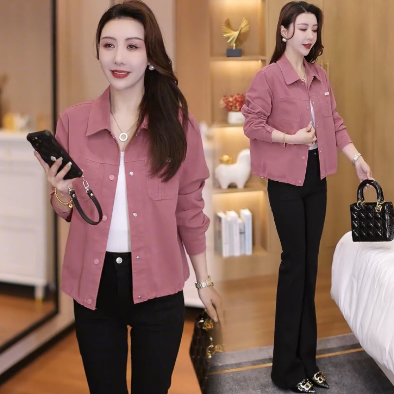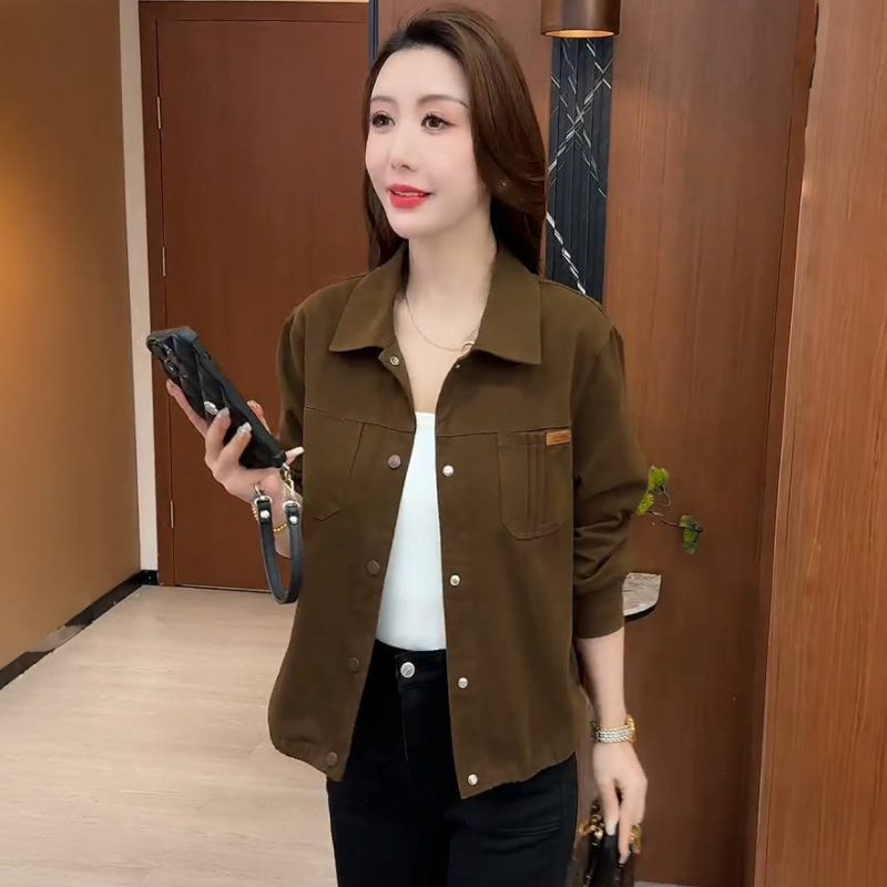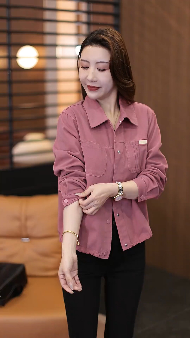 패션 캐주얼 쇼트 코트 여성의 봄과 가을 새로운 중년 어머니의 서양 스타일 드로우 스트링 재킷 느슨한 긴 소매 탑