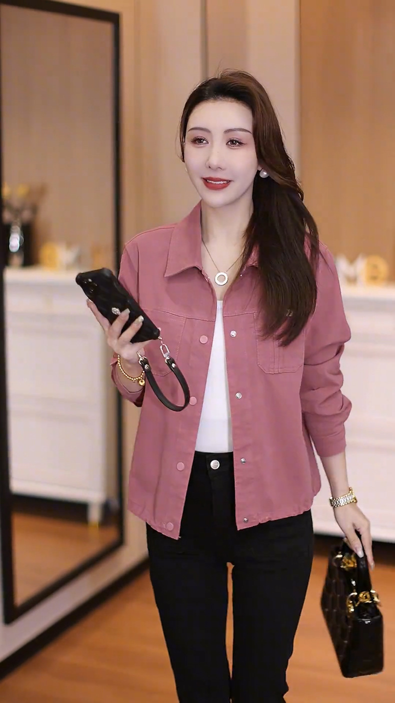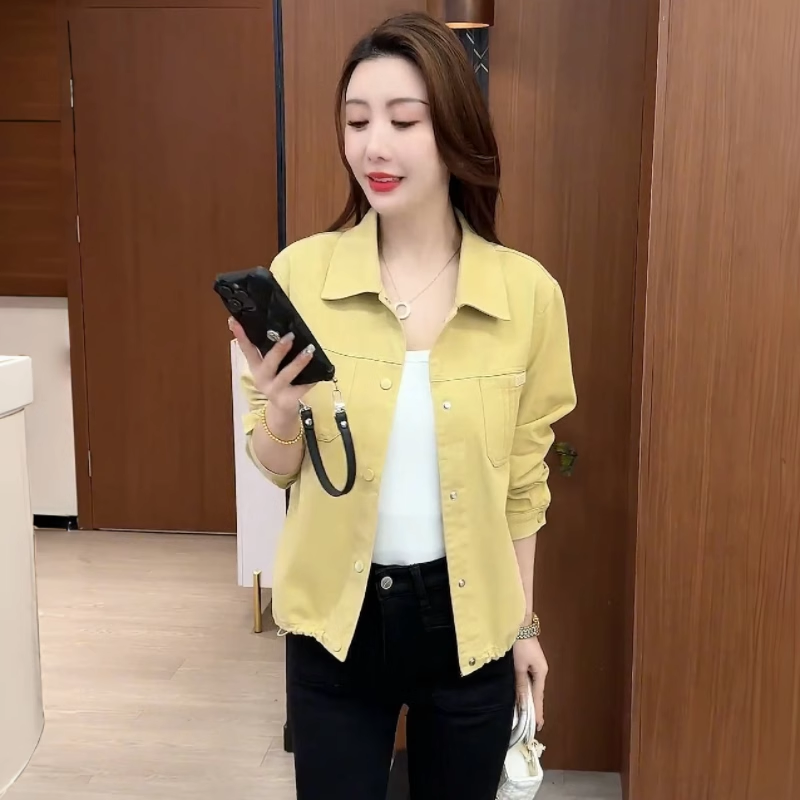 패션 캐주얼 쇼트 코트 여성의 봄과 가을 새로운 중년 어머니의 서양 스타일 드로우 스트링 재킷 느슨한 긴 소매 탑스토어 가기