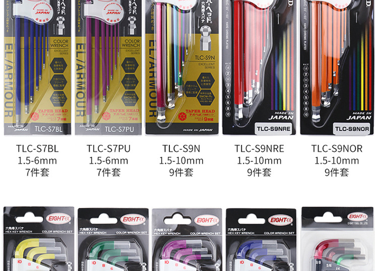 일본 EIGHT Bailey 컬러 육각 렌치 S7 수입 경화 드라이버 볼 헤드 육각 키 TLC-SM&