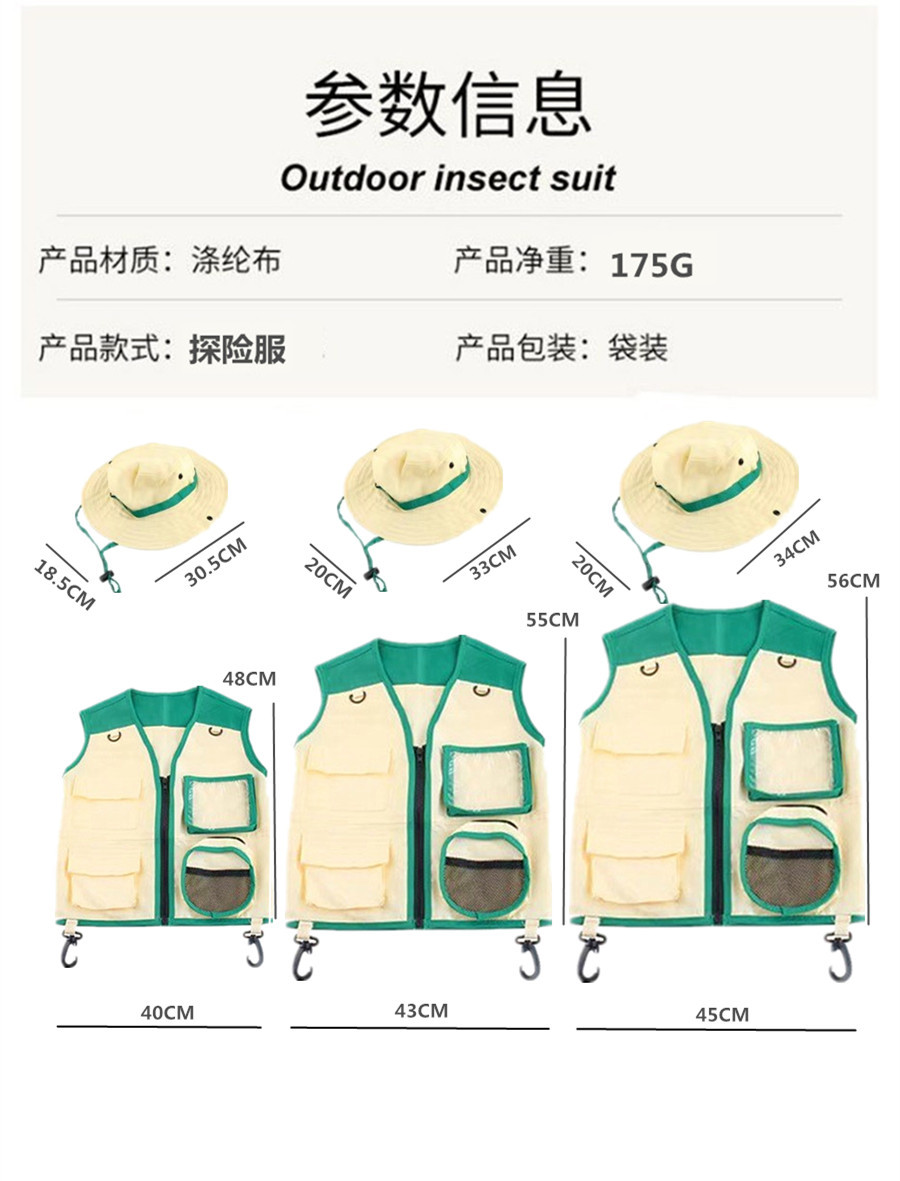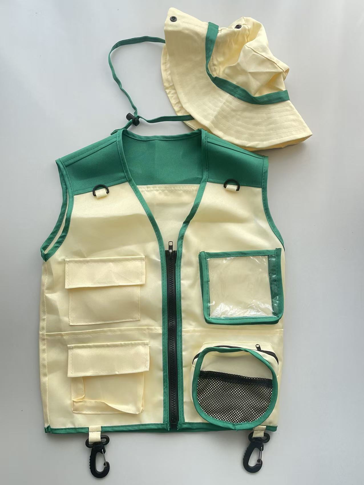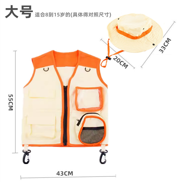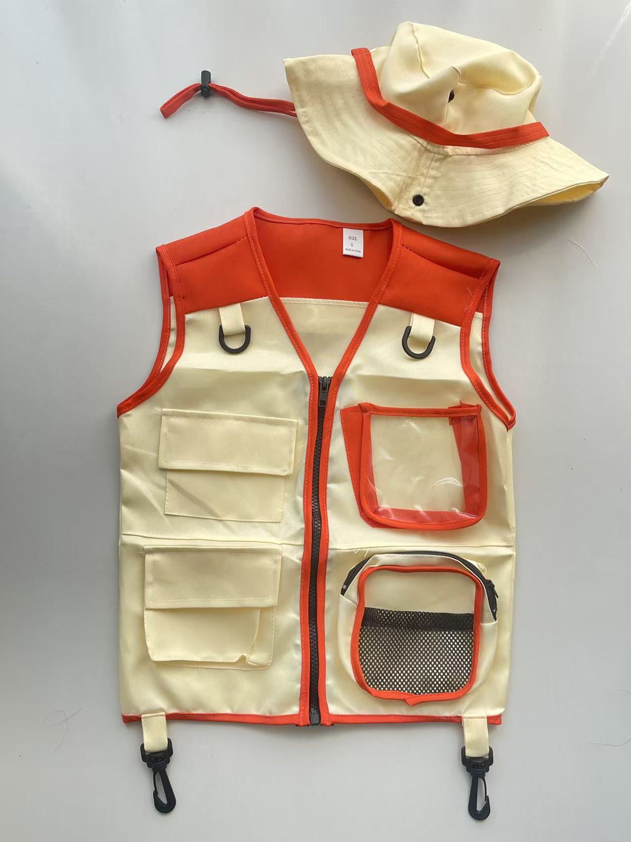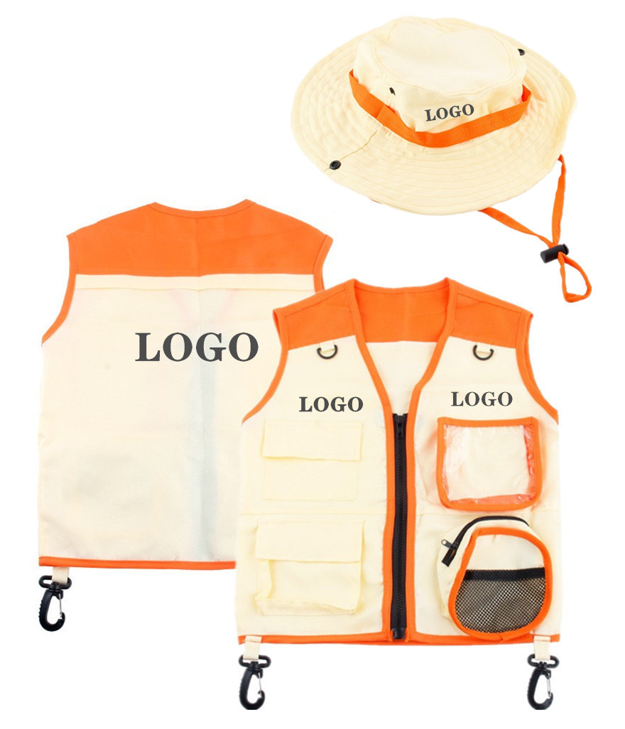 아마존 베스트셀러 어린이 야외 탐험가 의류 조끼 모자 캠핑 장비 코스프레 인쇄 로고