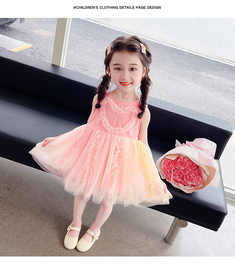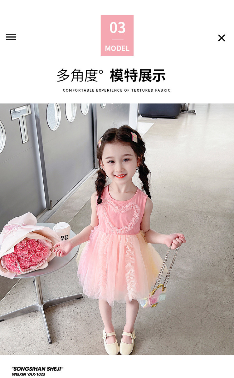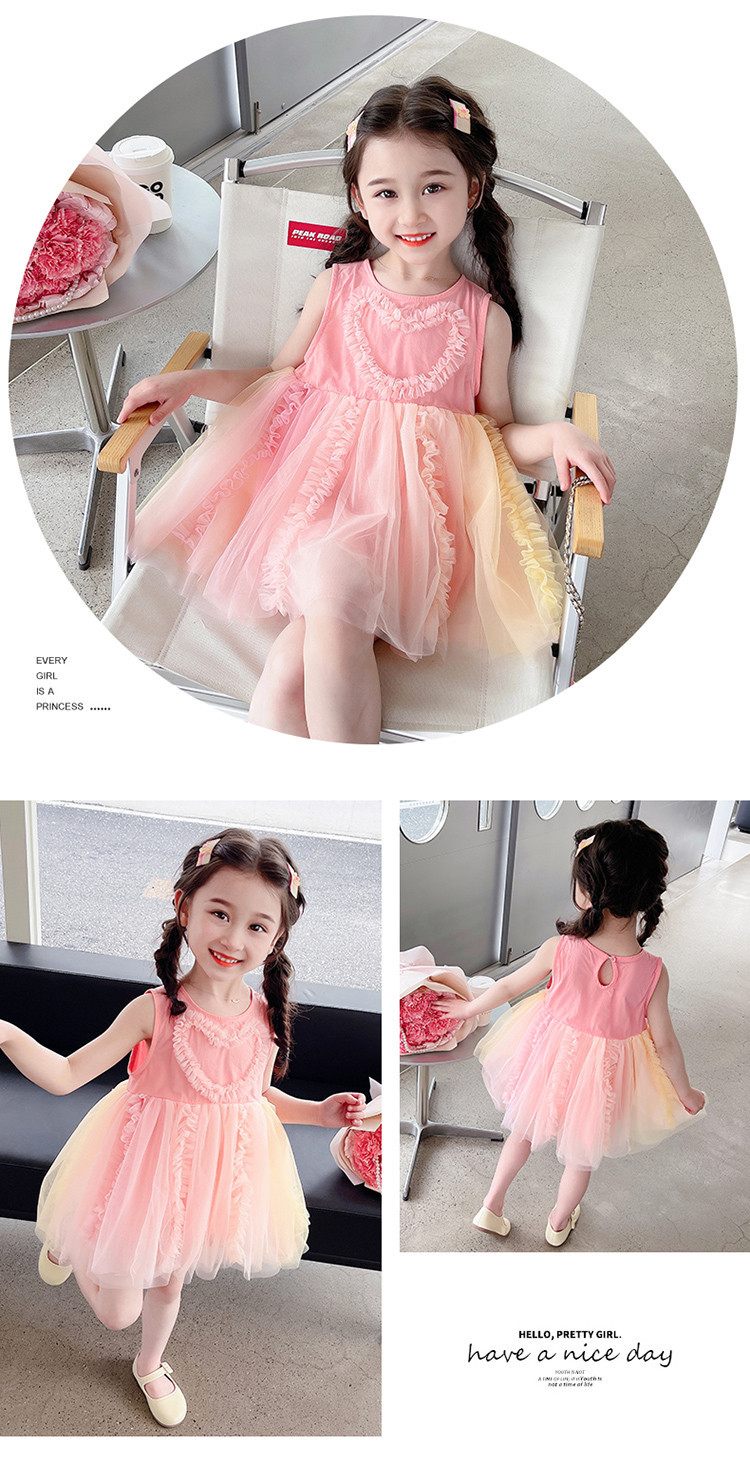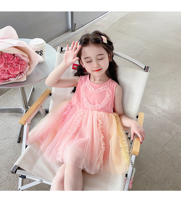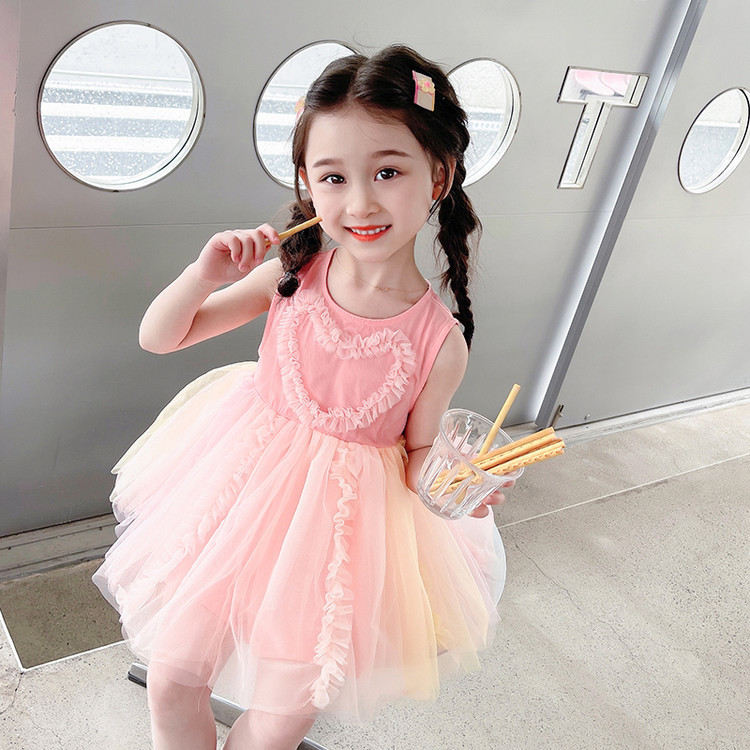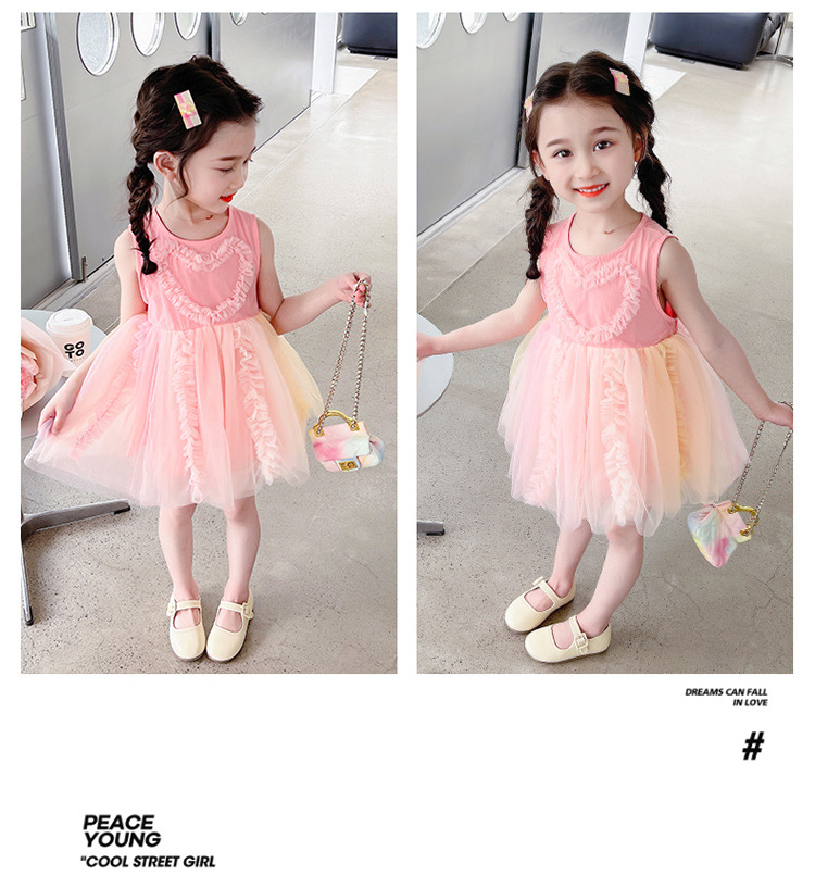 여자 여름 얇은 드레스 어린이 2025 새로운 스타일 중소 어린이 사랑 조끼 공주 퍼프 거즈 스커트