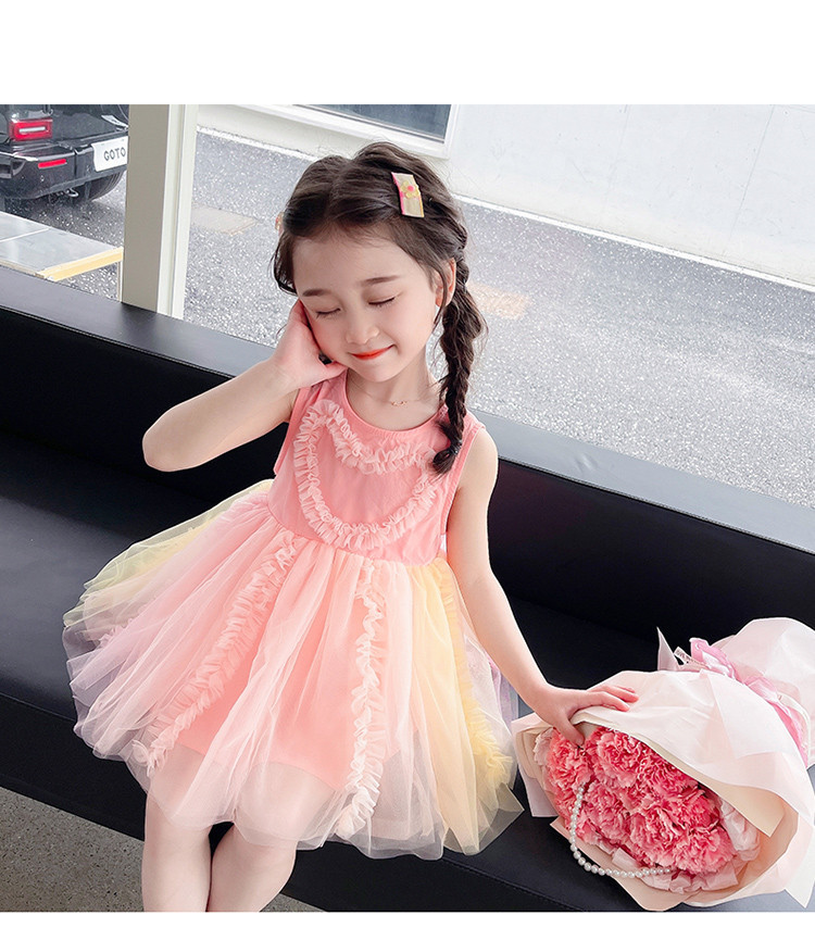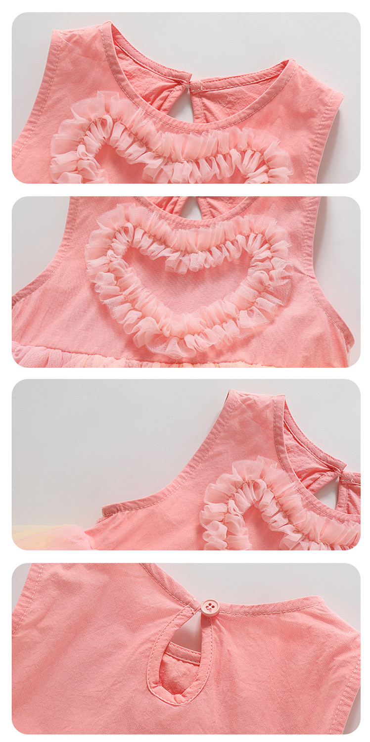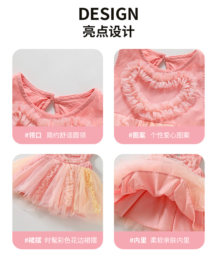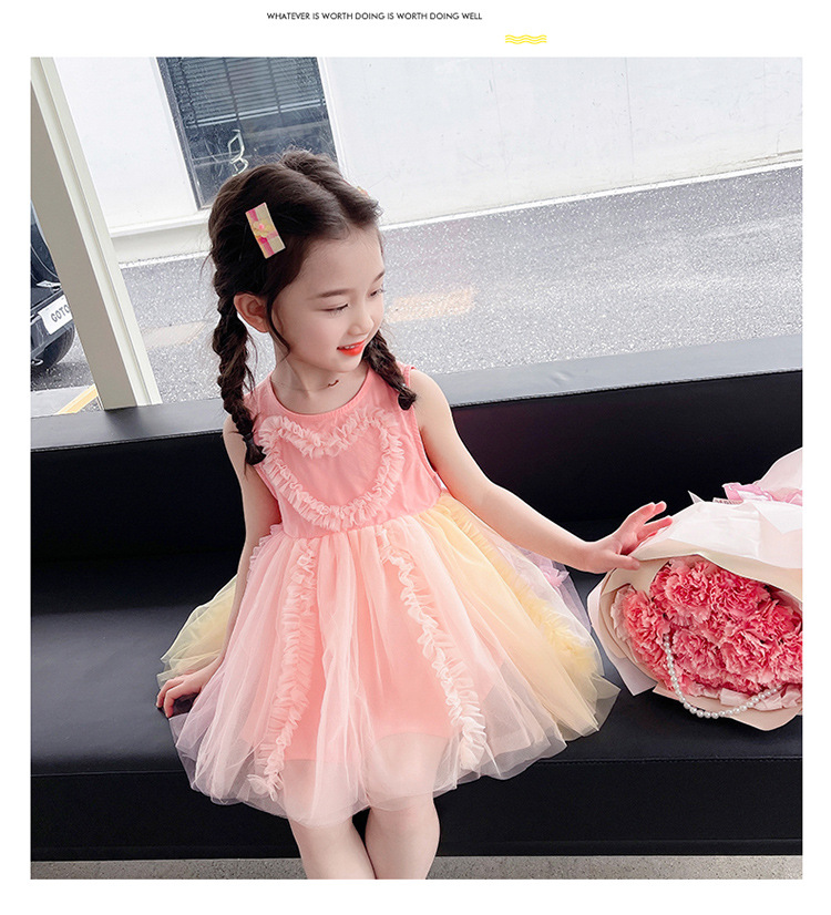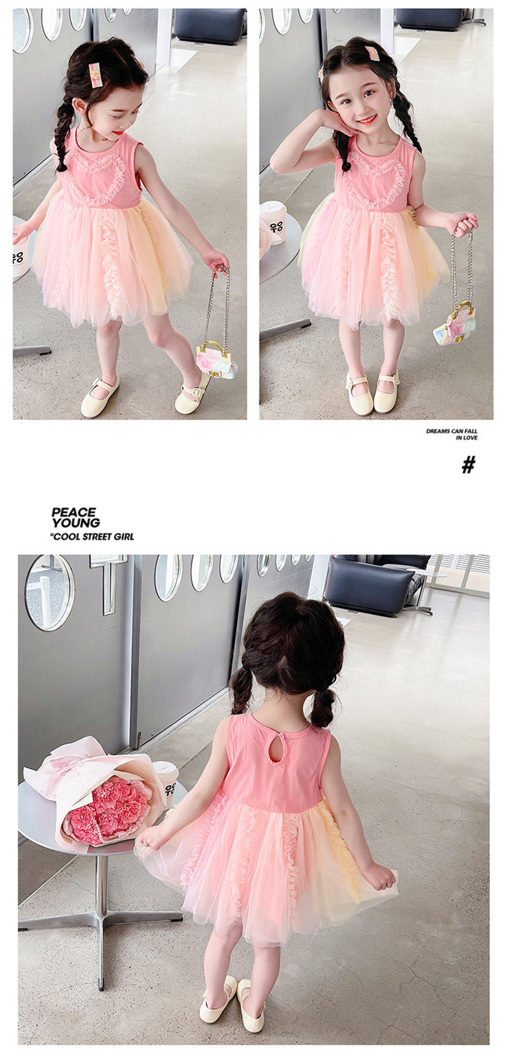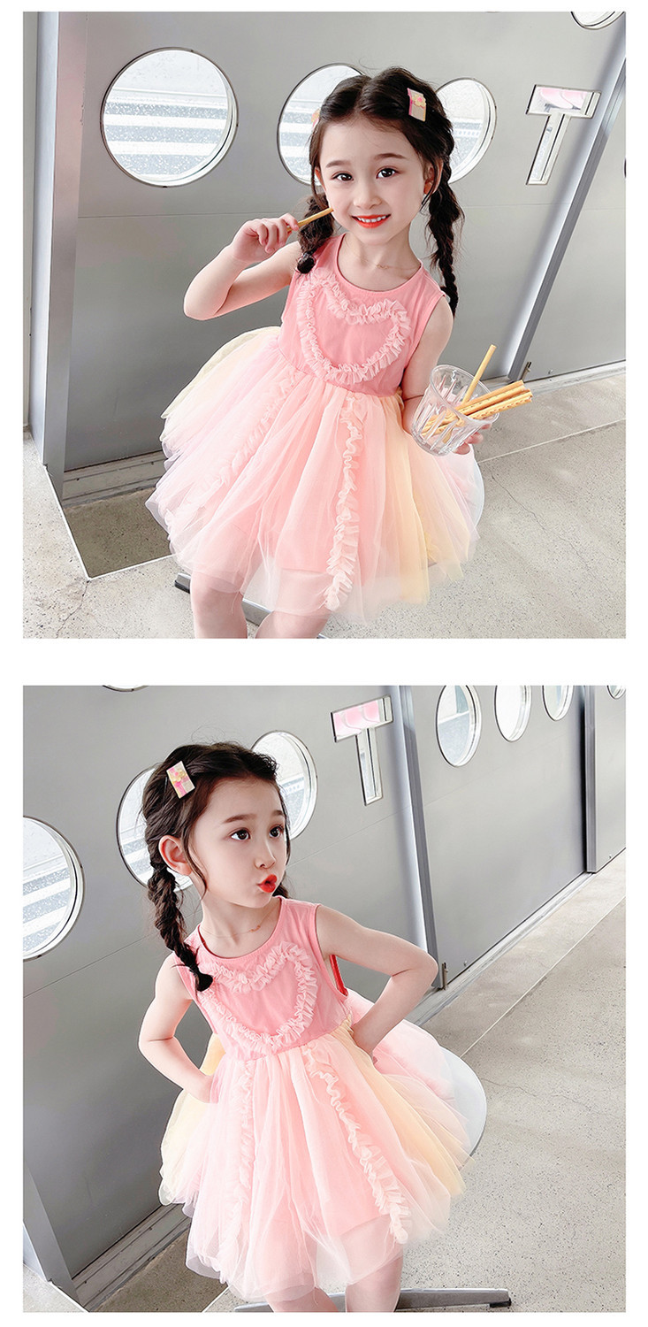여자 여름 얇은 드레스 어린이 2025 새로운 스타일 중소 어린이 사랑 조끼 공주 퍼프 거즈 스커트