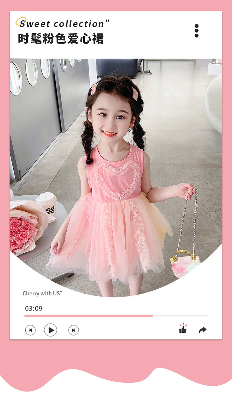 여자 여름 얇은 드레스 어린이 2025 새로운 스타일 중소 어린이 사랑 조끼 공주 퍼프 거즈 스커트스토어 가기