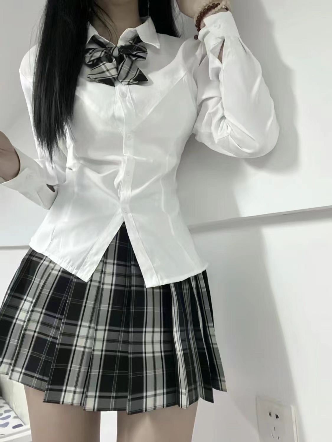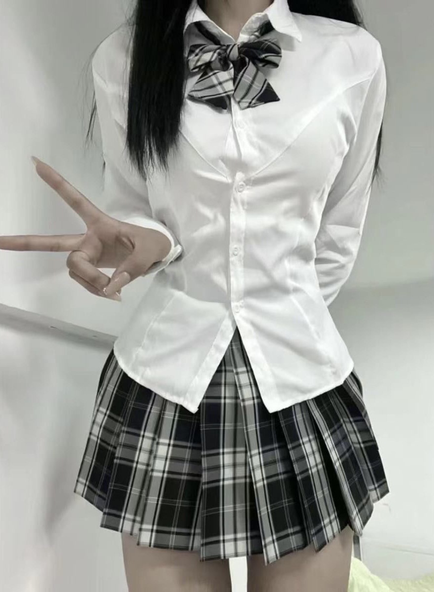 Xuejie 허리 셔츠 여성의 봄과 가을 새로운 JK 유니폼 순수한 욕망 스파이스 소녀 스타일 슬리밍 올 매치 화이트 롱 슬리브 셔츠스토어 가기