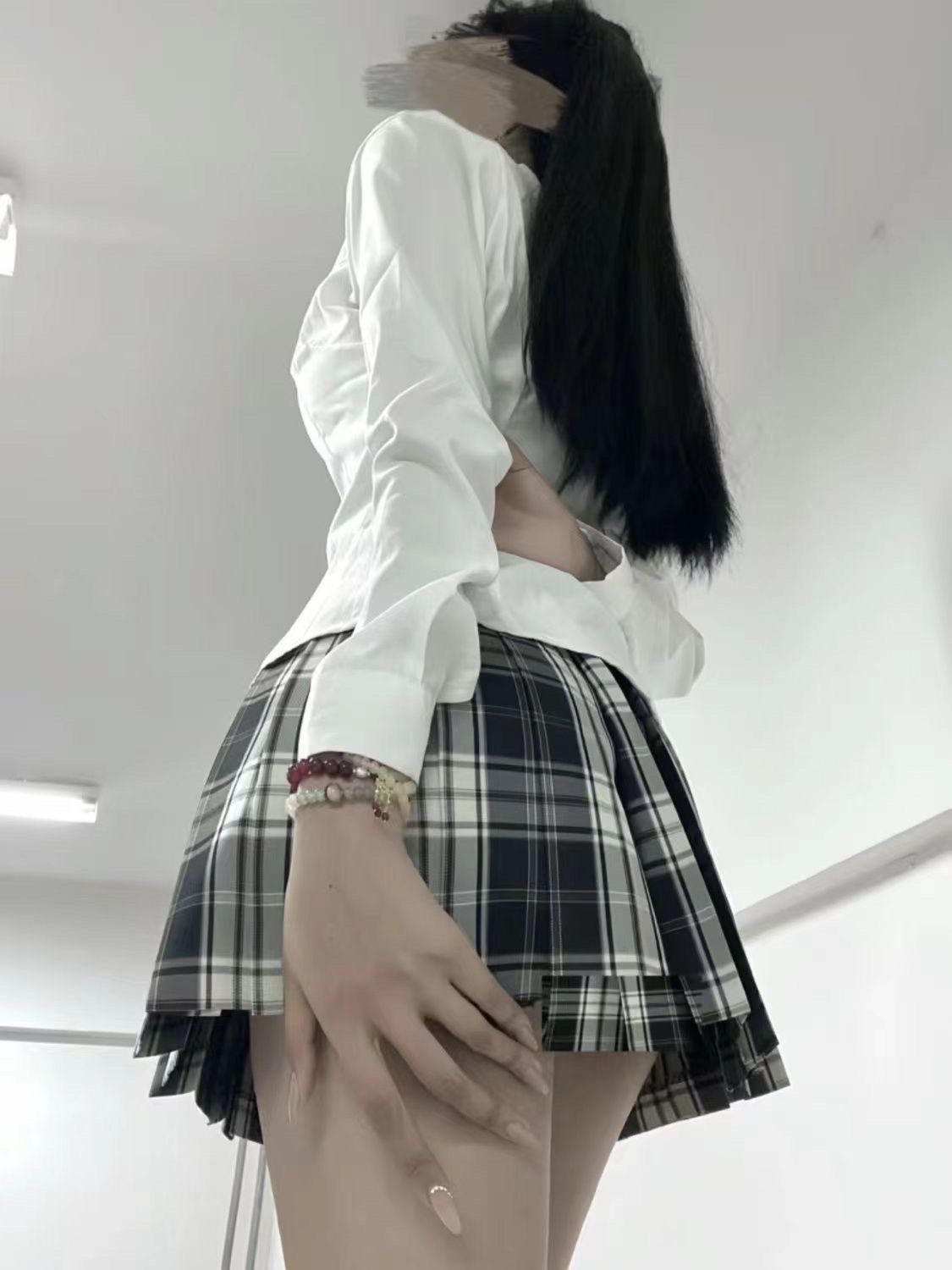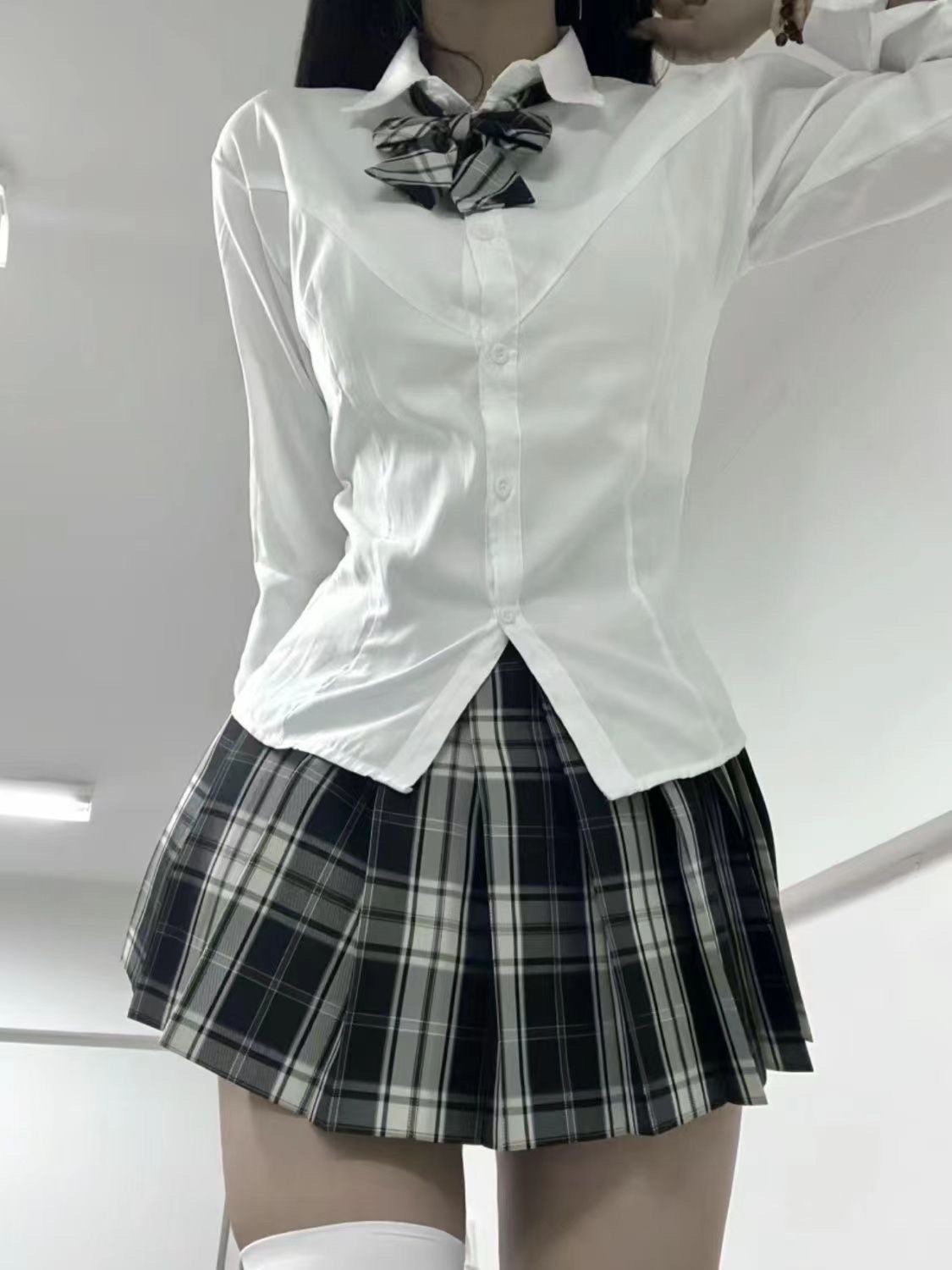 • 흰색 허리 긴팔 셔츠