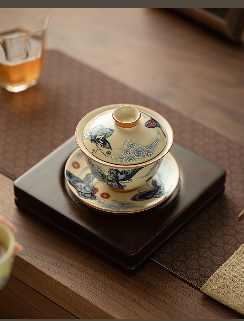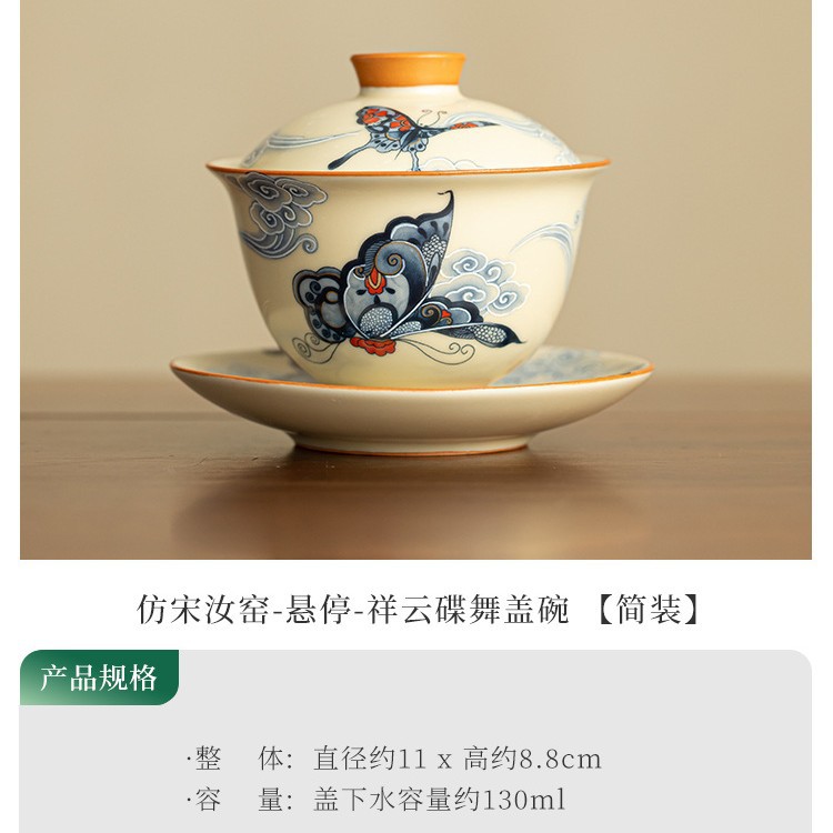 경덕진 루야오 클라우드 버터플라이 뚜껑 그릇 세라믹 차 세트 Sancai 뚜껑 그릇 두황 오픈 피스는 차 그릇 전체 세트를 유지할 수 있습니다.