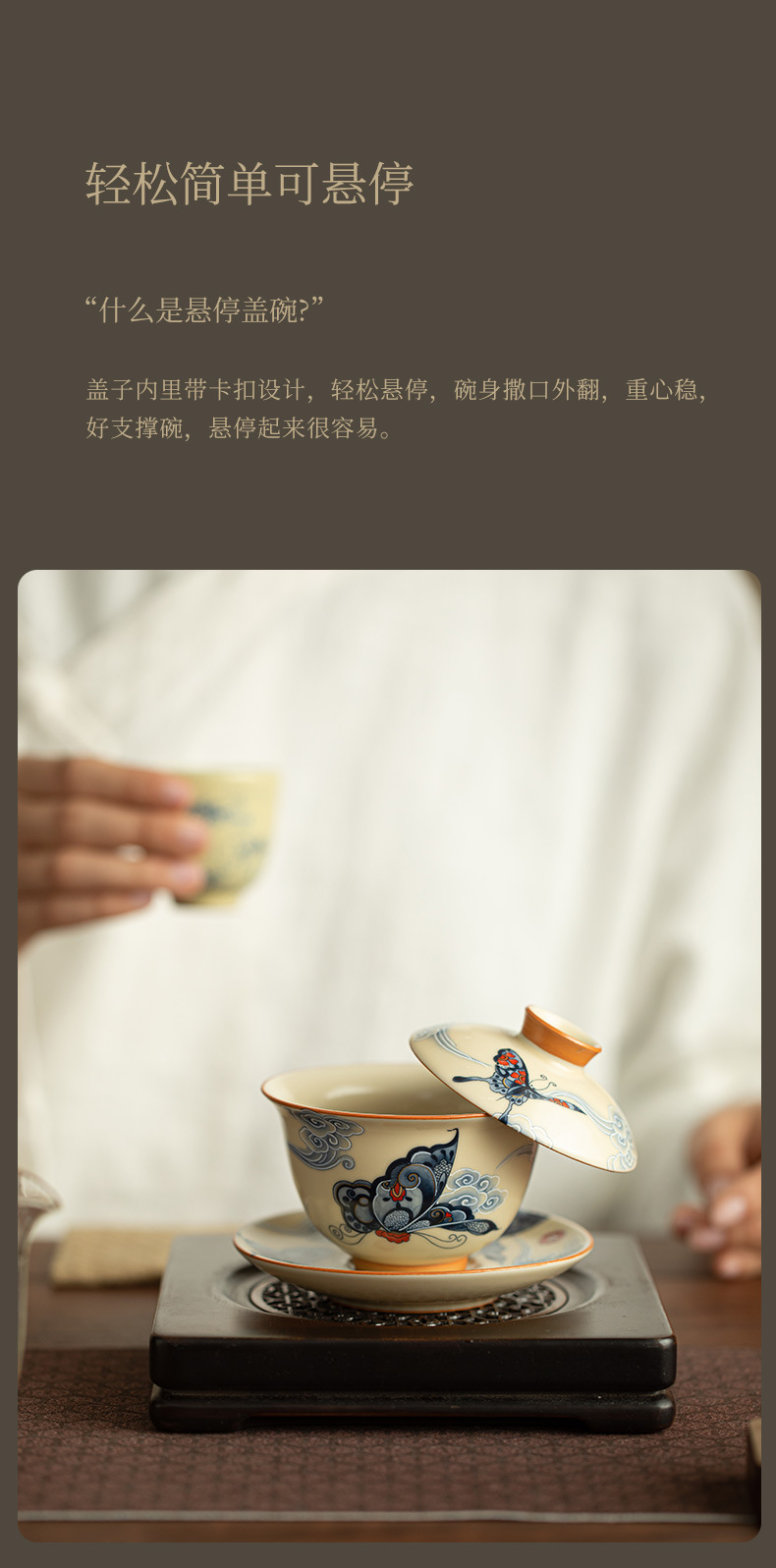 경덕진 루야오 클라우드 버터플라이 뚜껑 그릇 세라믹 차 세트 Sancai 뚜껑 그릇 두황 오픈 피스는 차 그릇 전체 세트를 유지할 수 있습니다.스토어 가기