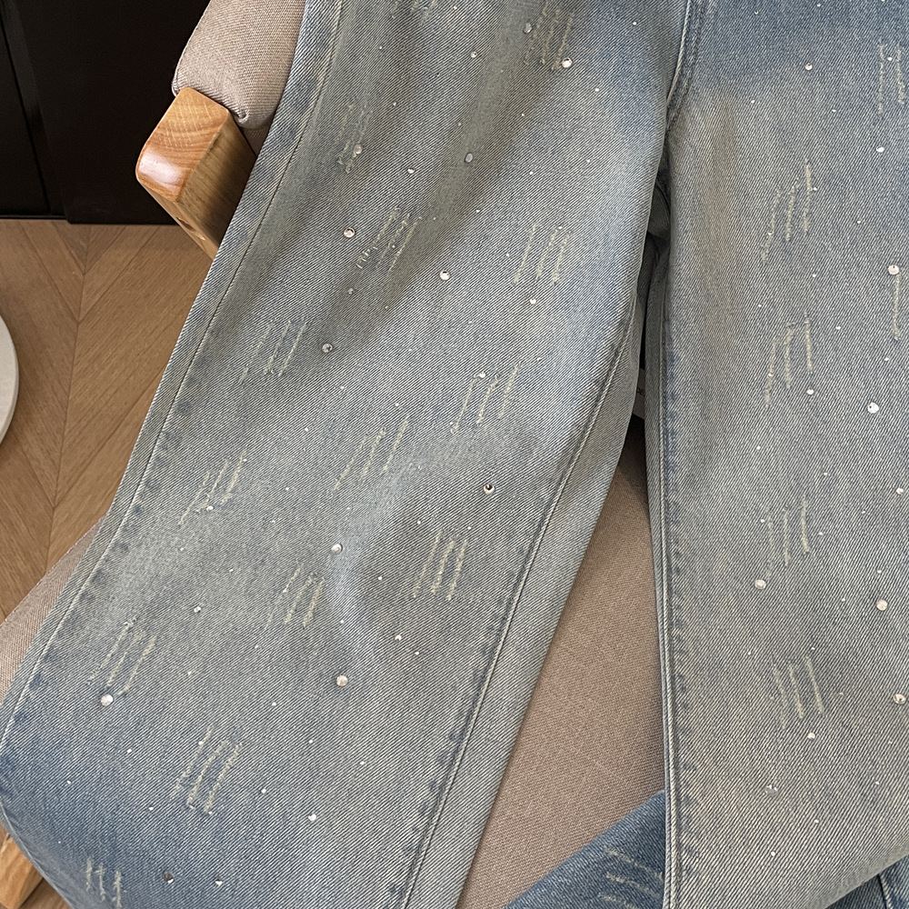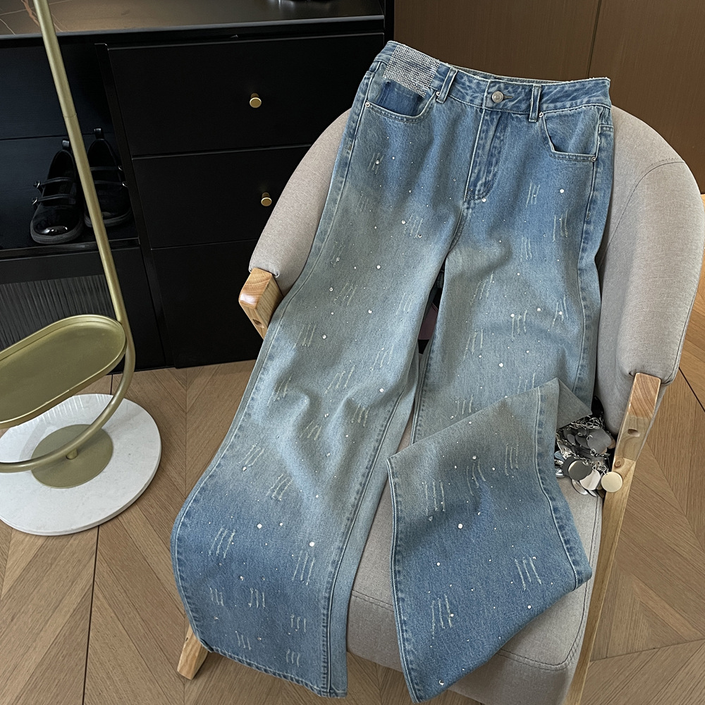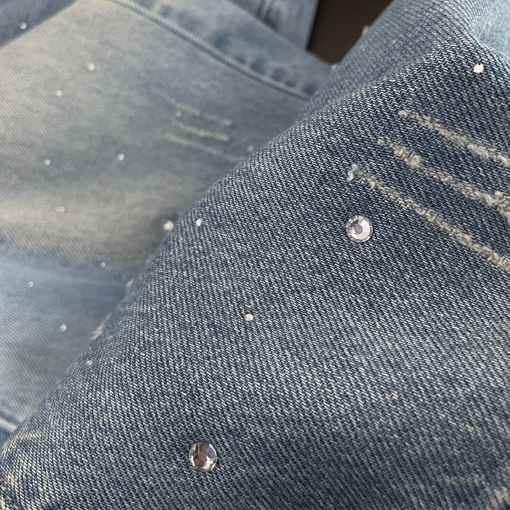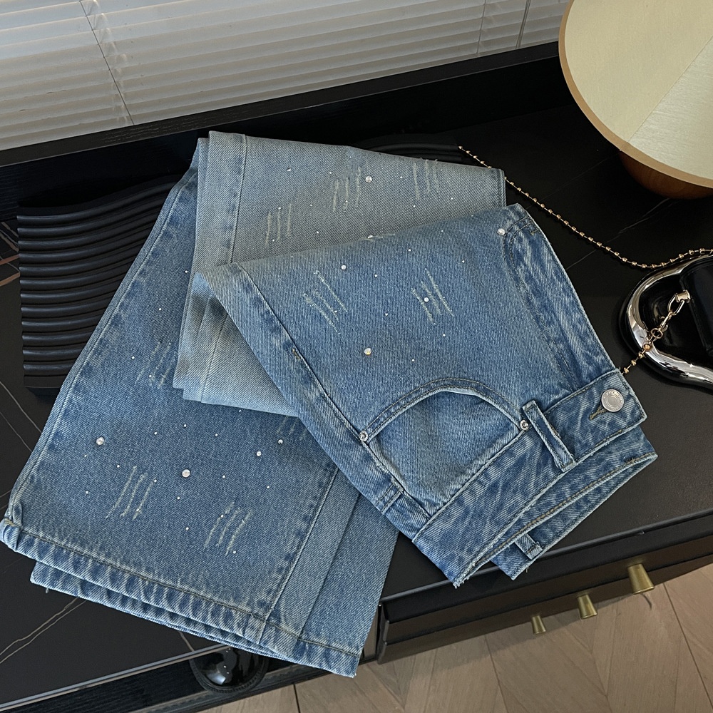 중공업 세척 물 구멍 푸른 그라디언트의 진짜 샷 한국 버전 뜨거운 드릴링 높은 허리 스트레이트 튜브 좁은 버전 슬림 데님 바지 어린이스토어 가기