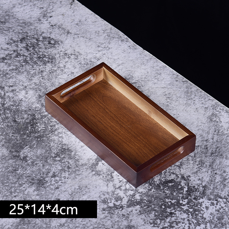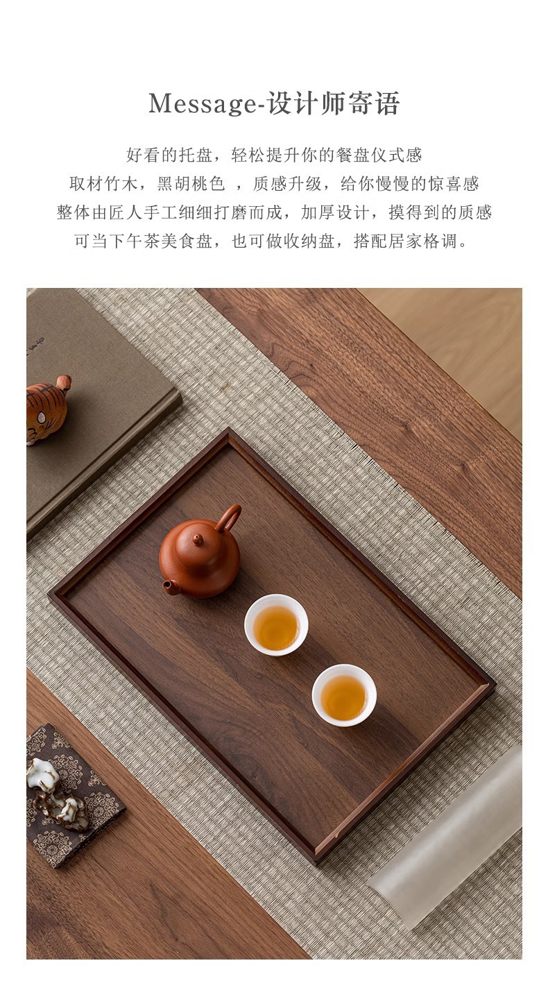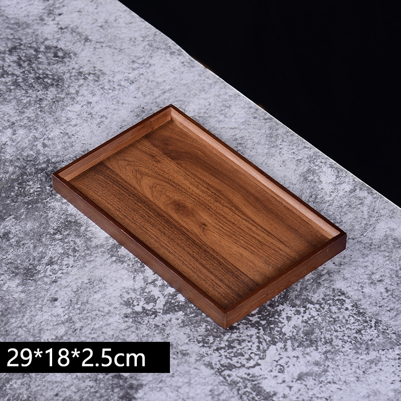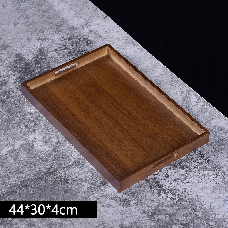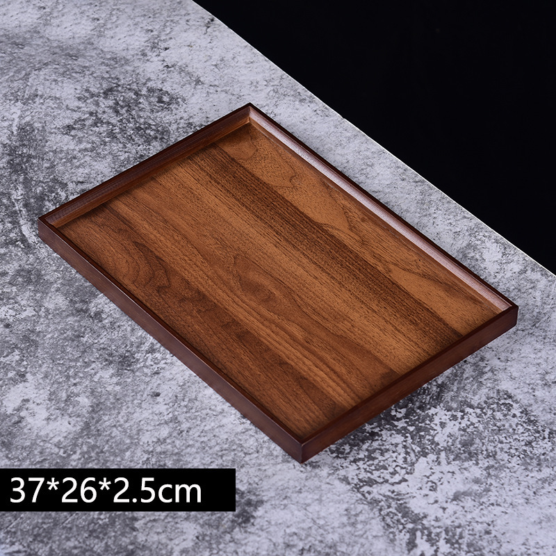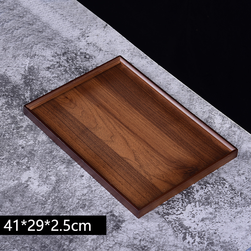 商用胡桃色功夫茶道放茶水杯盘竹木质长方形干泡茶具早餐托盘