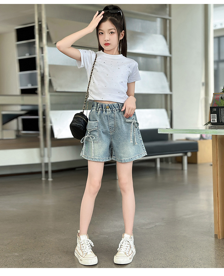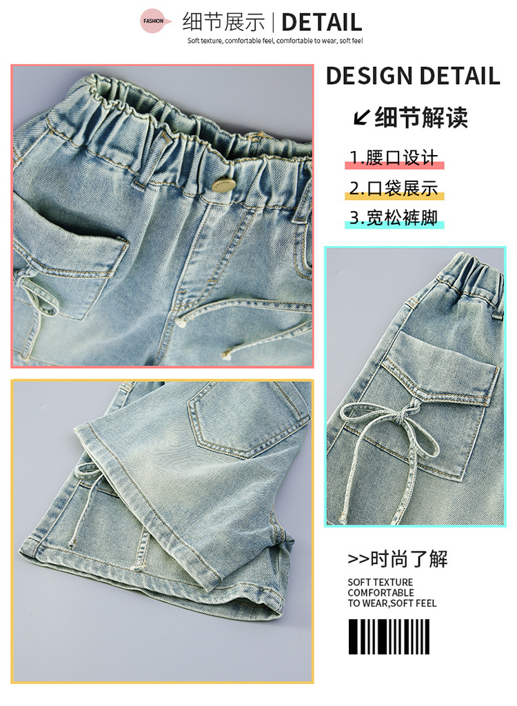 여자 반바지 봄과 여름 2025 새로운 도착 중다 어린이 얇은 캐주얼 청바지 중학생 인기 유행 바지스토어 가기