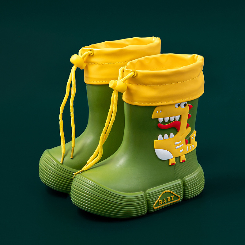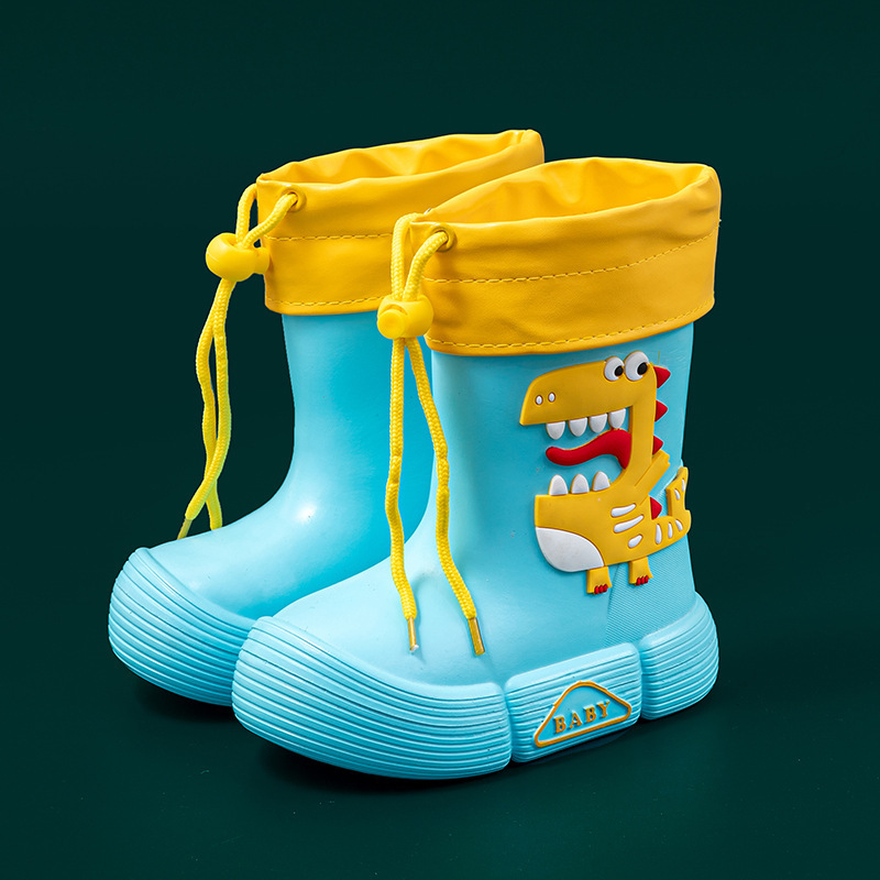 새로운 만화 공룡 어린이 비 부츠 초등학교 학생의 물 신발 귀여운 미끄럼 두꺼운 유치원 장화 방수 내마모성