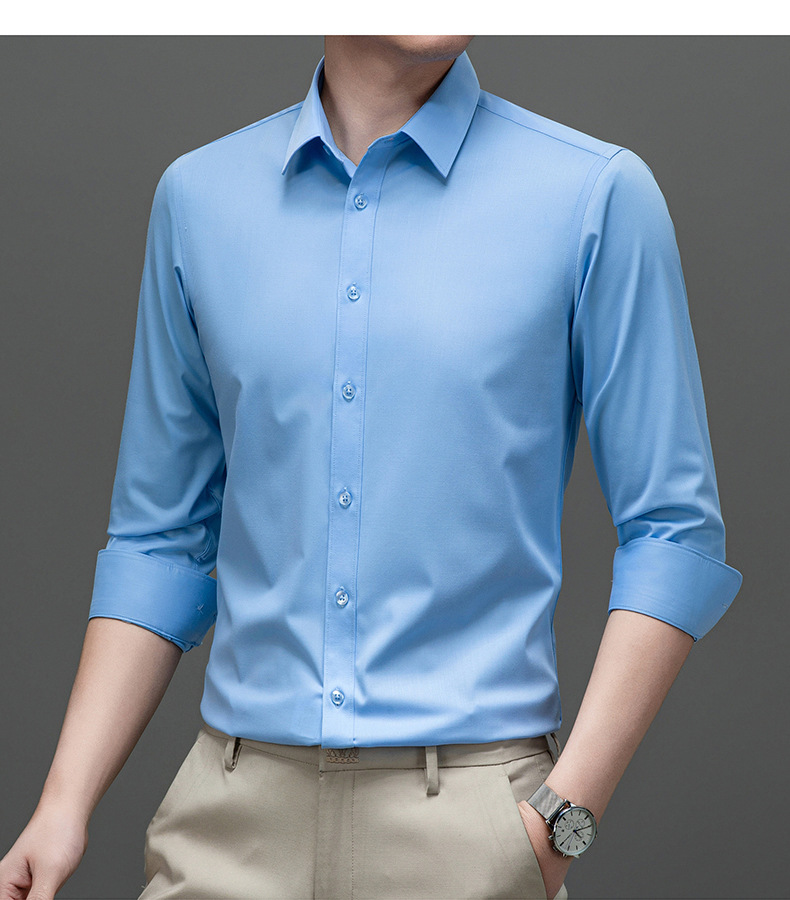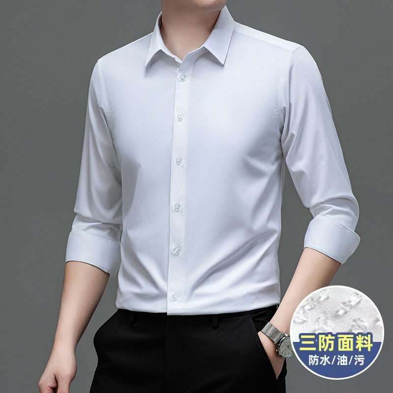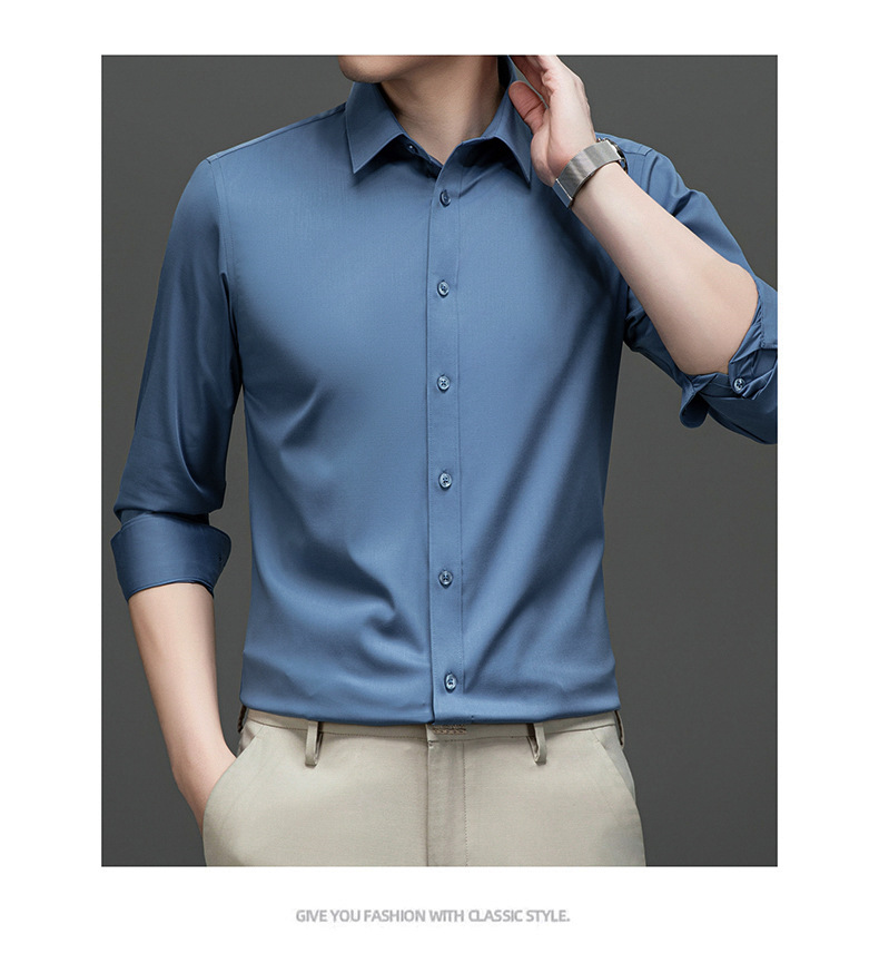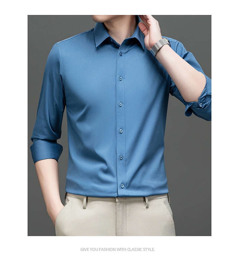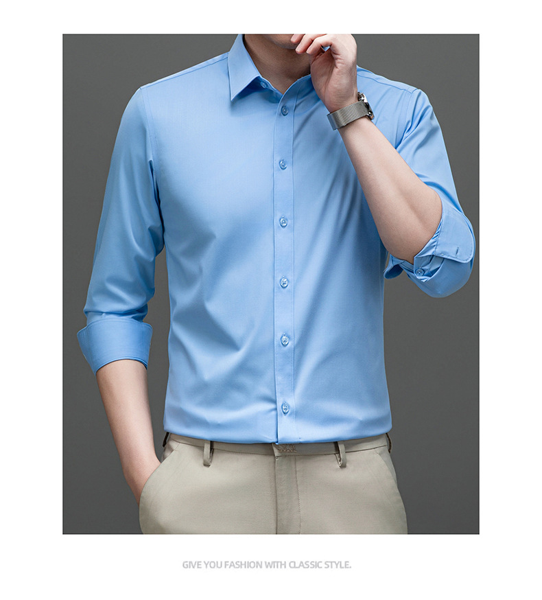 봄과 가을 가벼운 럭셔리 신사복 긴팔 셔츠 솔리드 컬러 3방수 대나무 섬유 캐주얼 다용도 중년 아빠 셔츠스토어 가기