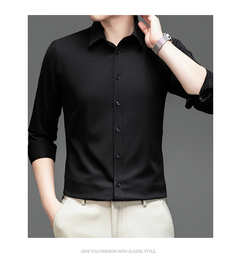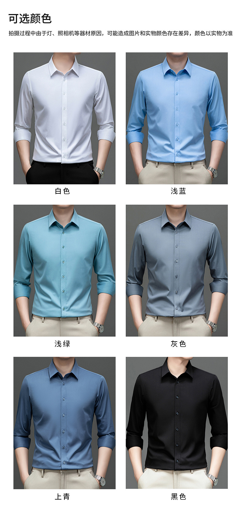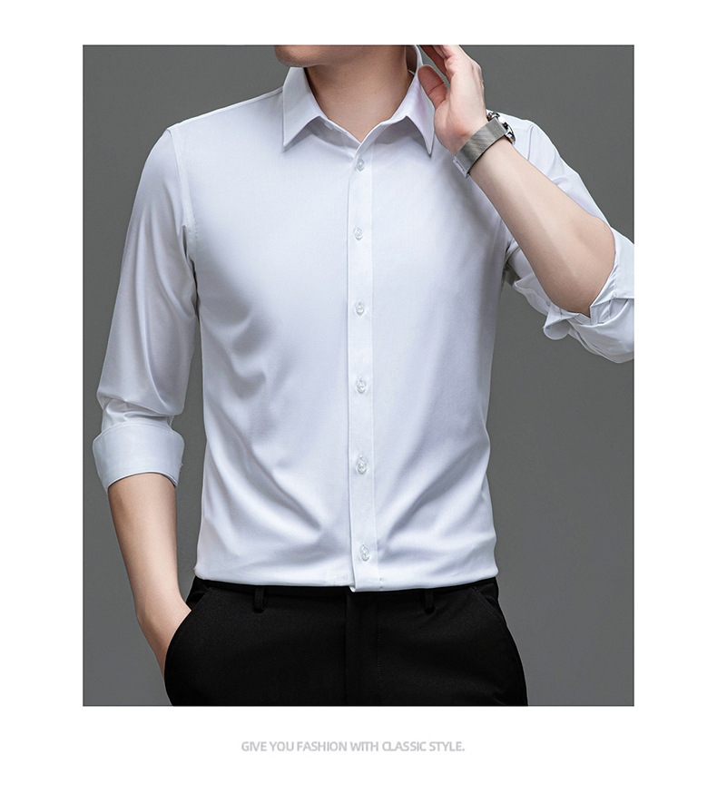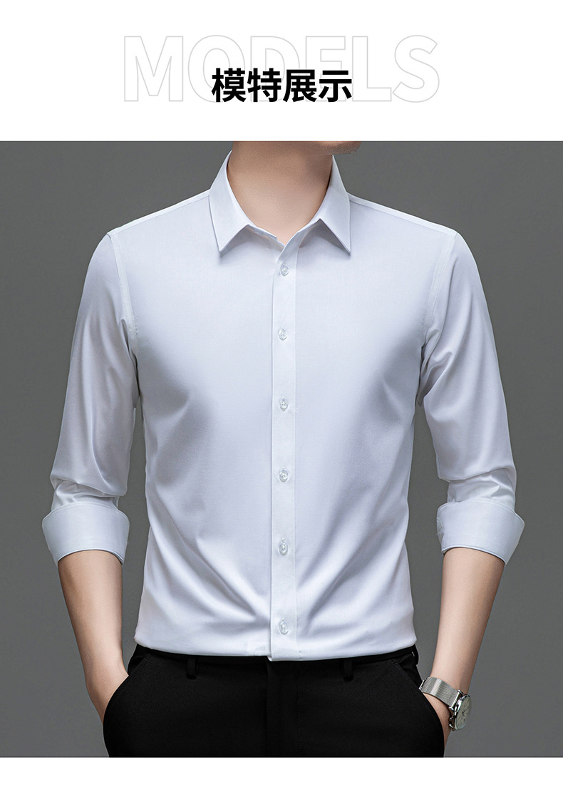 봄과 가을 가벼운 럭셔리 신사복 긴팔 셔츠 솔리드 컬러 3방수 대나무 섬유 캐주얼 다용도 중년 아빠 셔츠스토어 가기