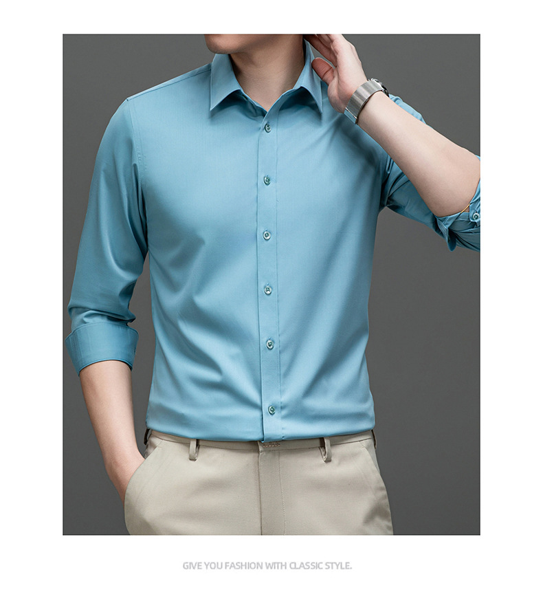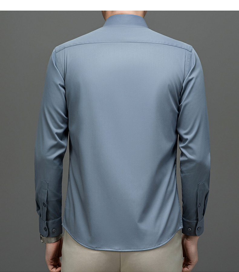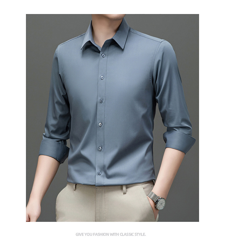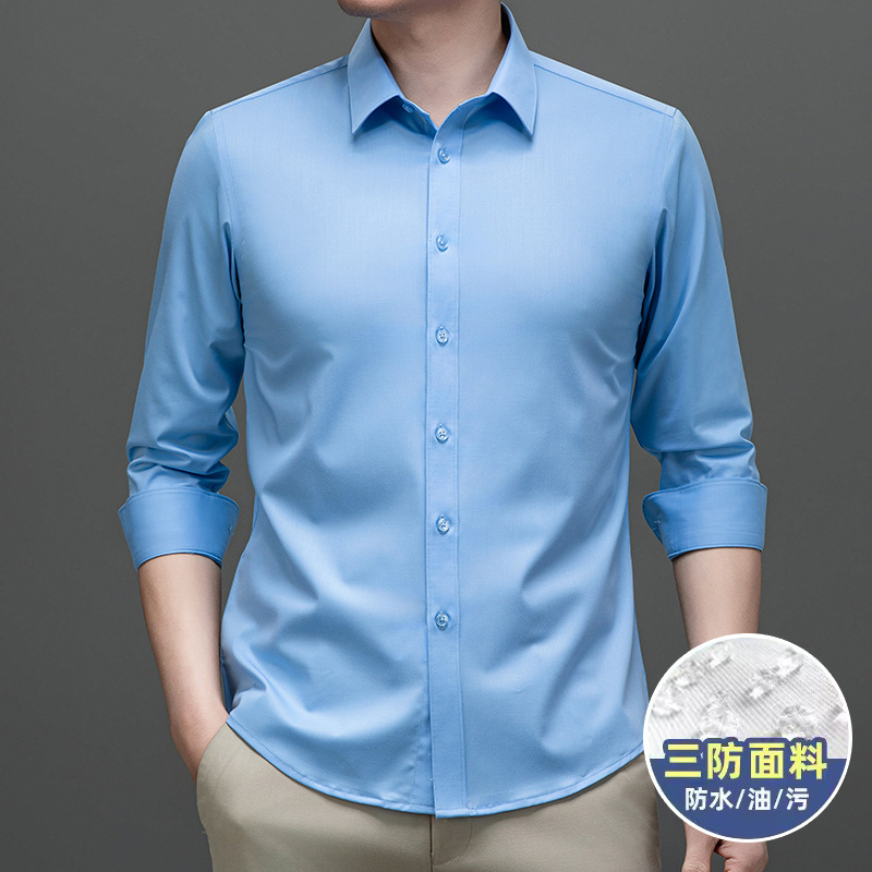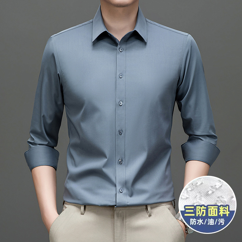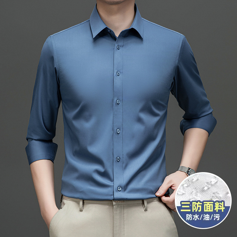 봄과 가을 가벼운 럭셔리 신사복 긴팔 셔츠 솔리드 컬러 3방수 대나무 섬유 캐주얼 다용도 중년 아빠 셔츠