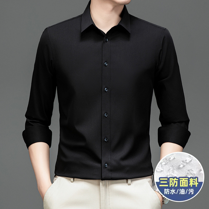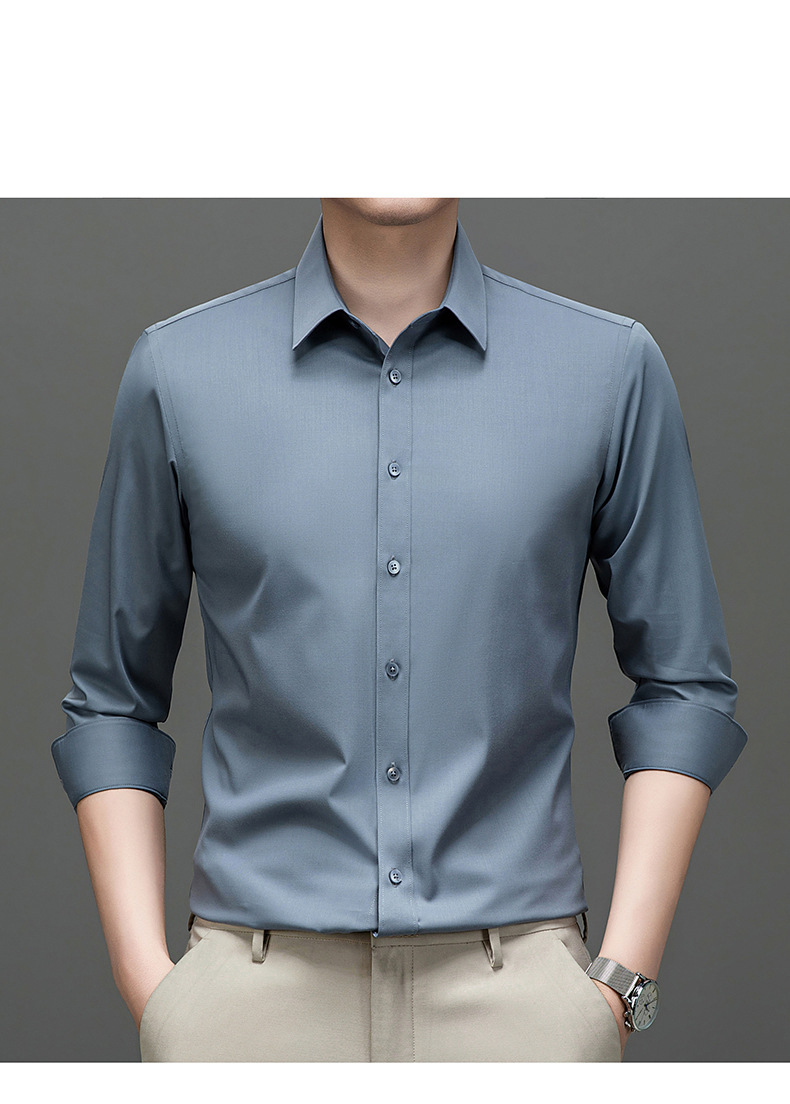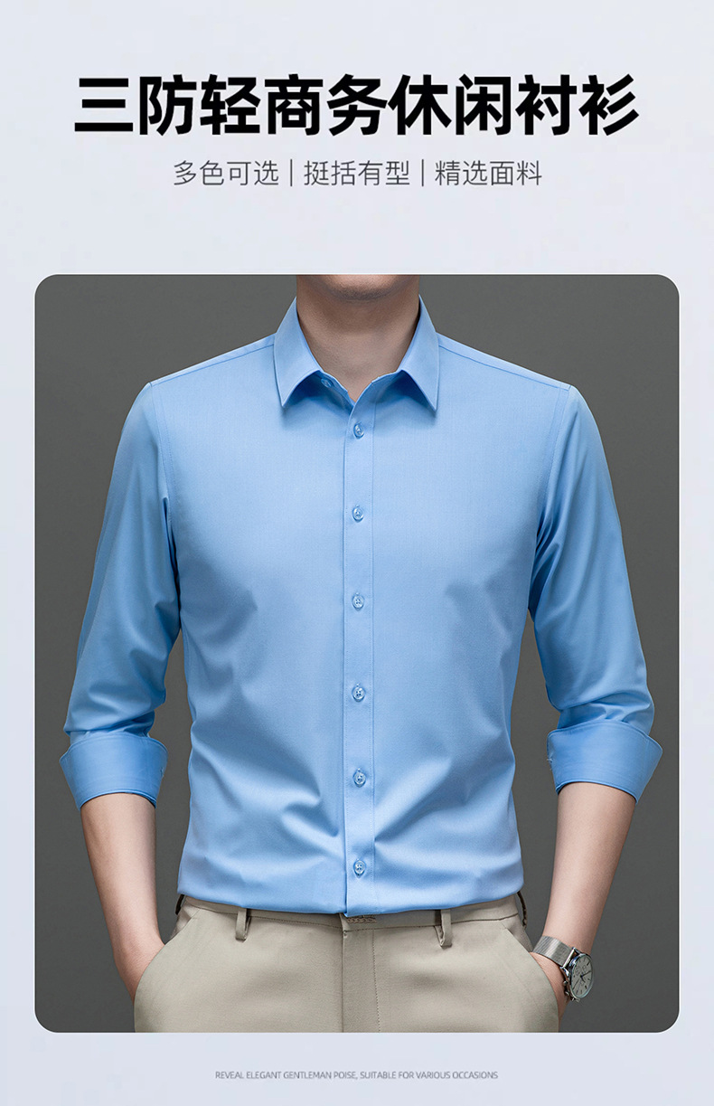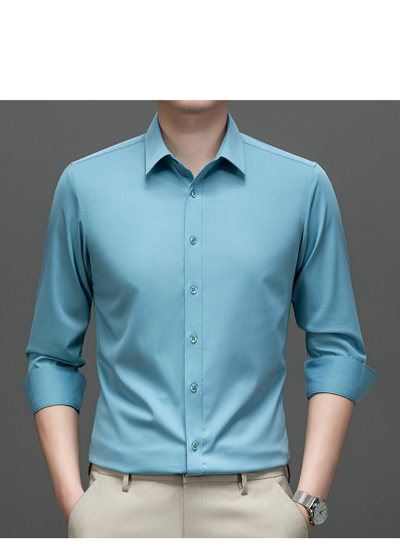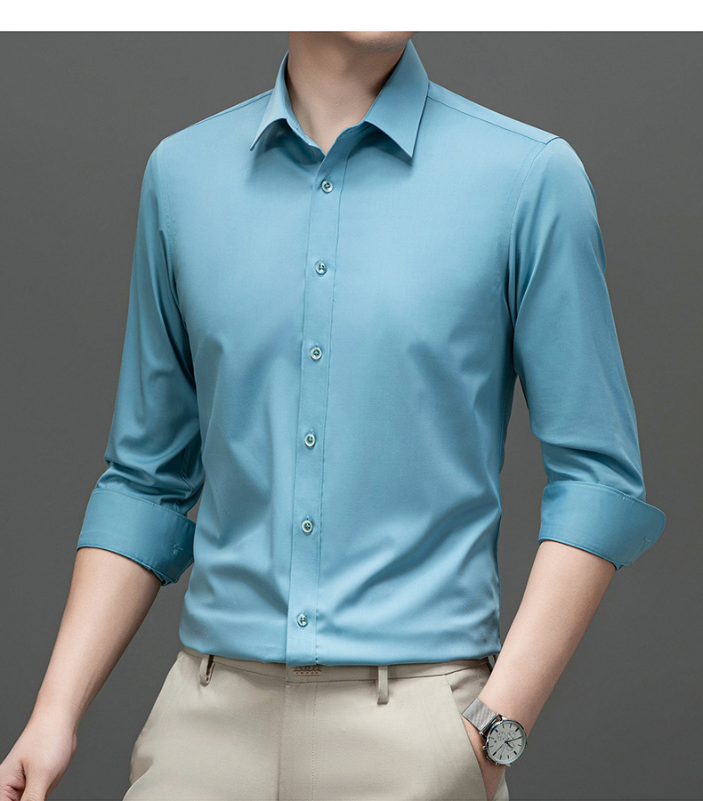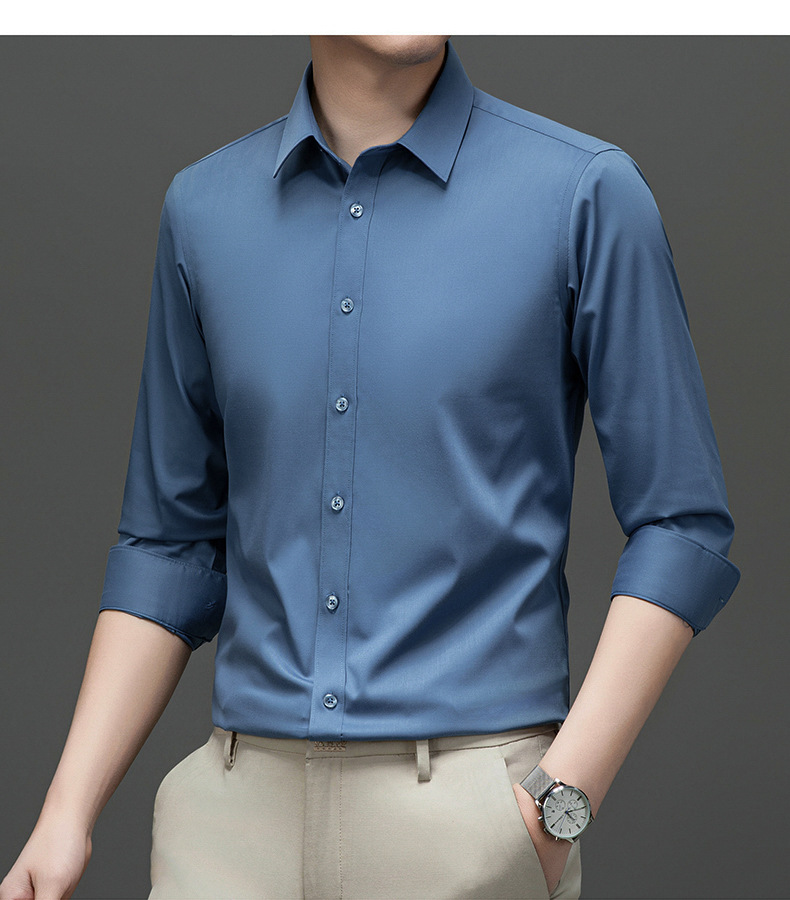 봄과 가을 가벼운 럭셔리 신사복 긴팔 셔츠 솔리드 컬러 3방수 대나무 섬유 캐주얼 다용도 중년 아빠 셔츠