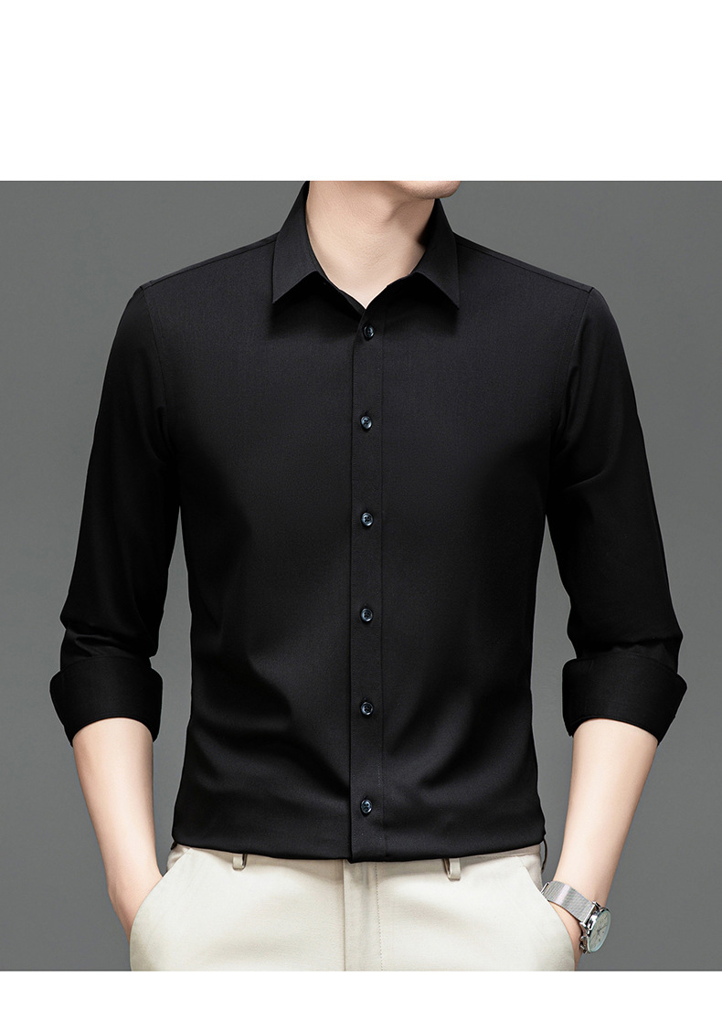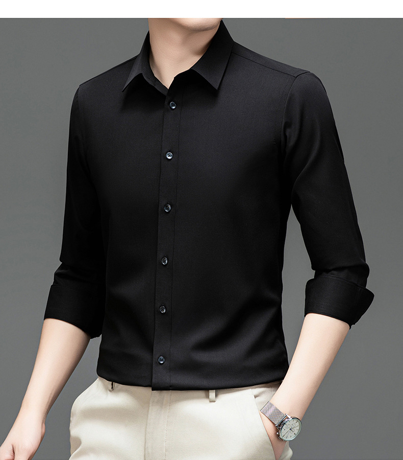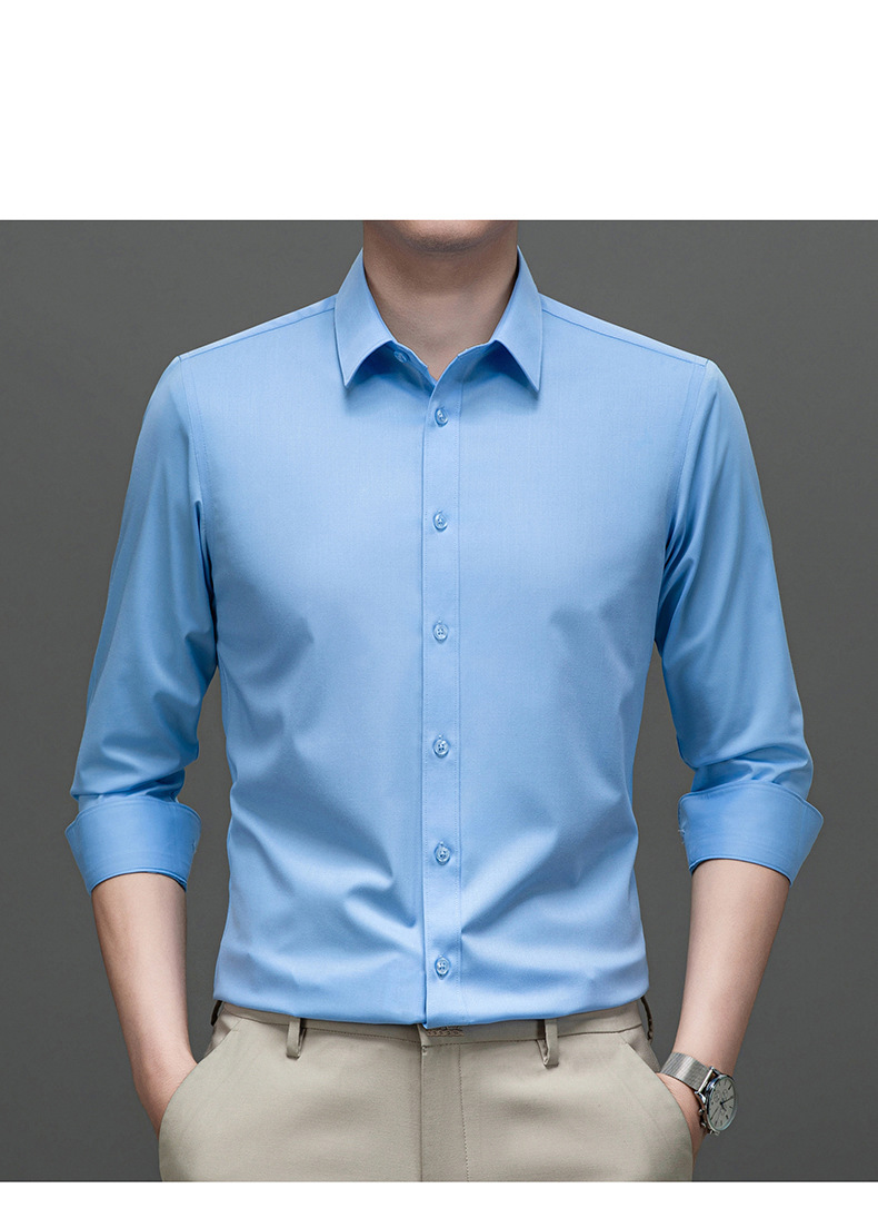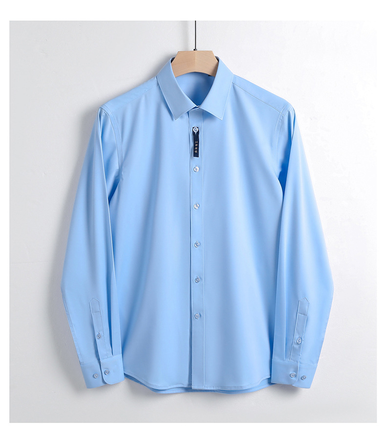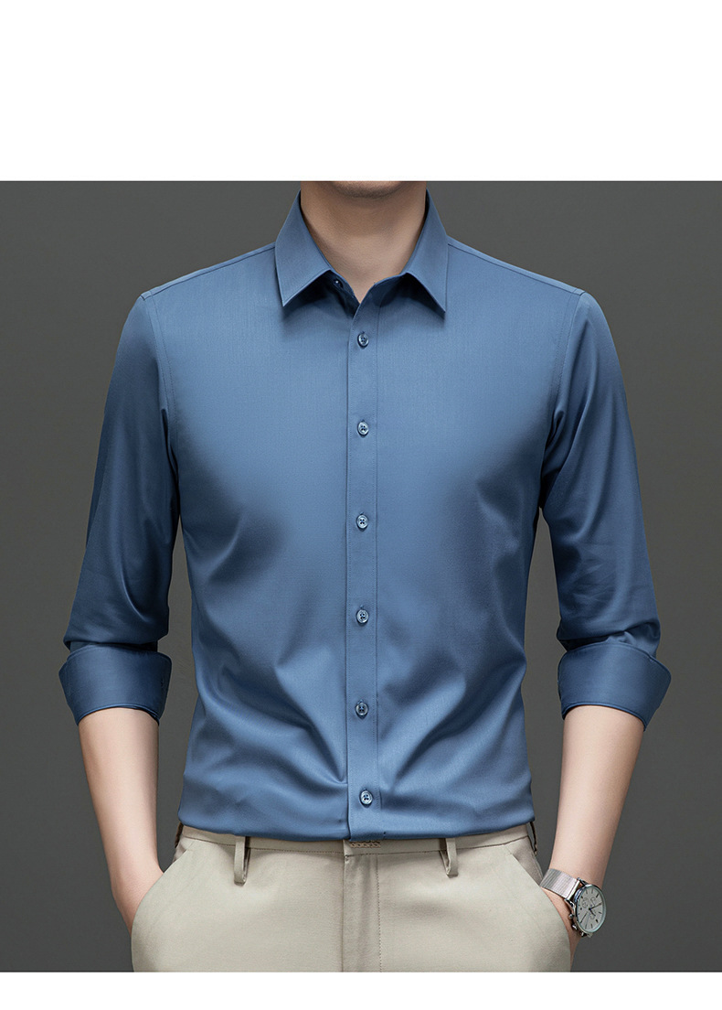 봄과 가을 가벼운 럭셔리 신사복 긴팔 셔츠 솔리드 컬러 3방수 대나무 섬유 캐주얼 다용도 중년 아빠 셔츠