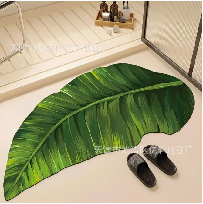 국경 간 시뮬레이션 잎 욕실 규조토 진흙 흡수성 바닥 매트 화장실 문 얼룩 방지 미끄럼 방지 간편한 관리 바닥 매트 카펫스토어 가기