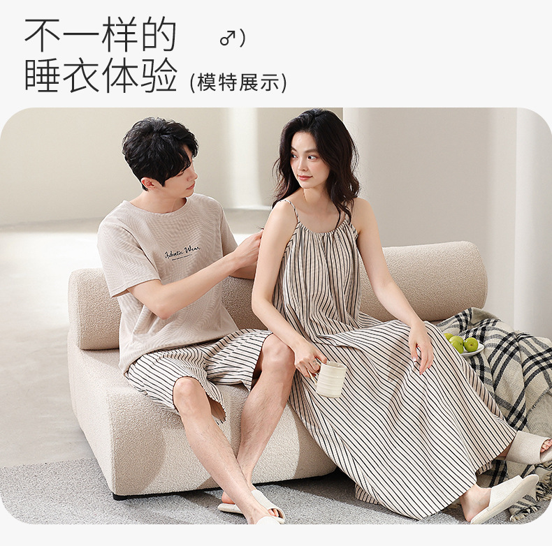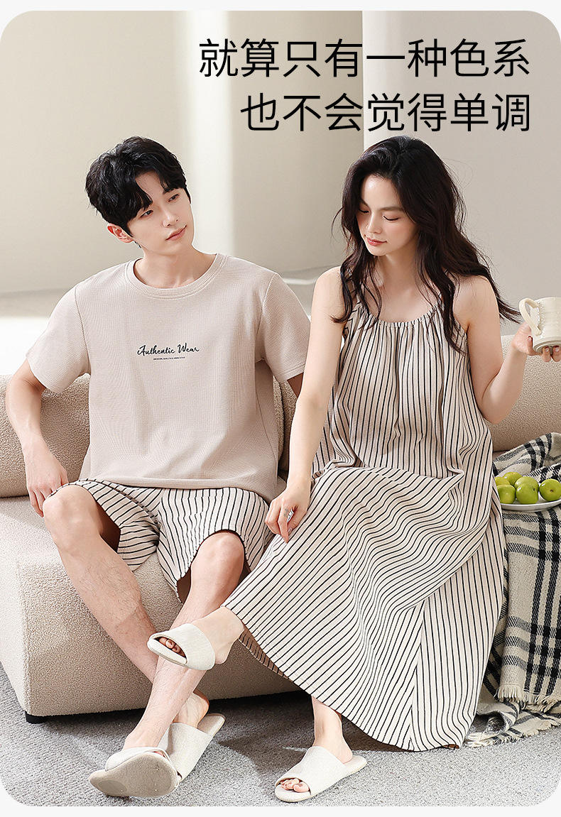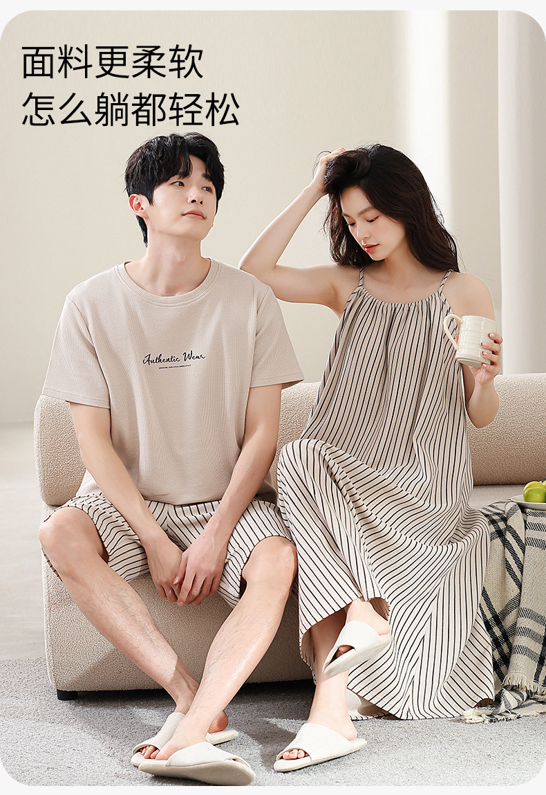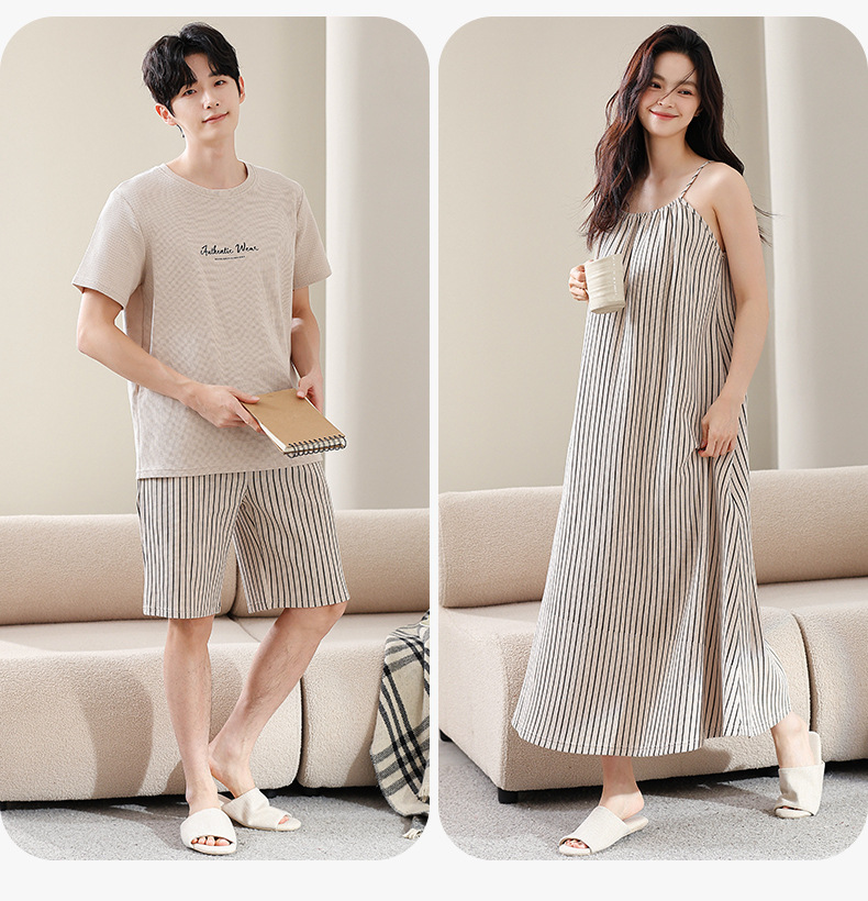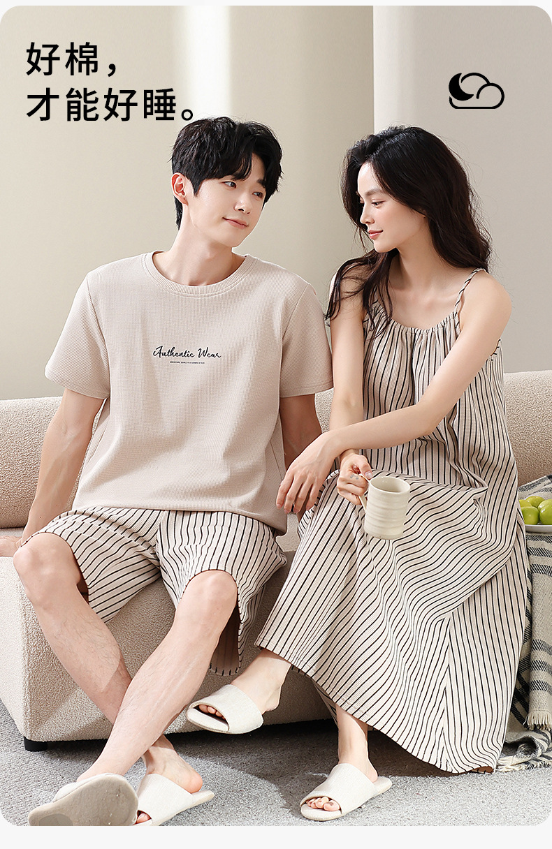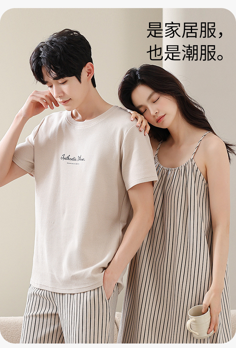 커플 잠옷 여름 와플 순수 코튼 여성 서스펜더 잠옷 남성 패션 반팔 반바지 홈웨어 세트스토어 가기